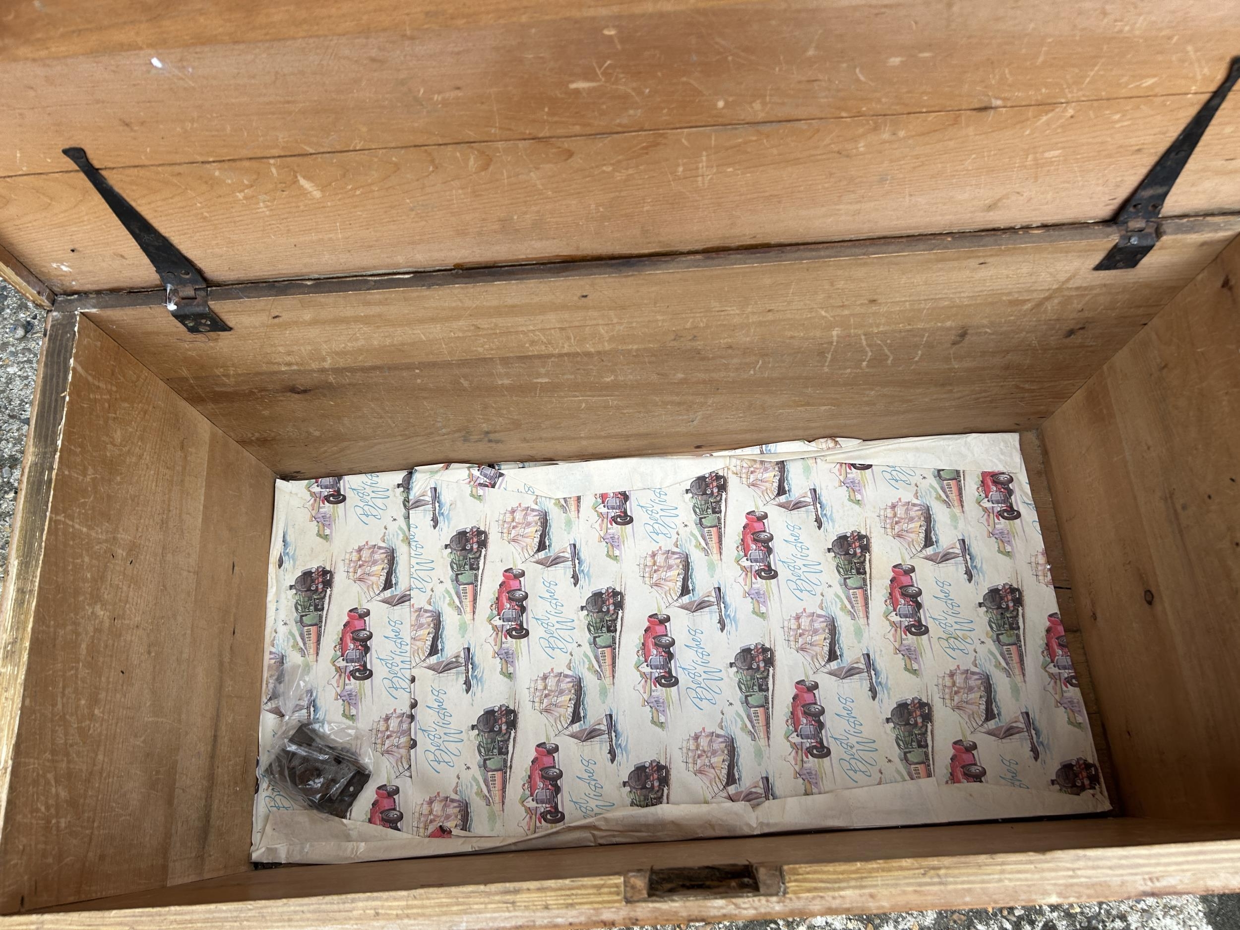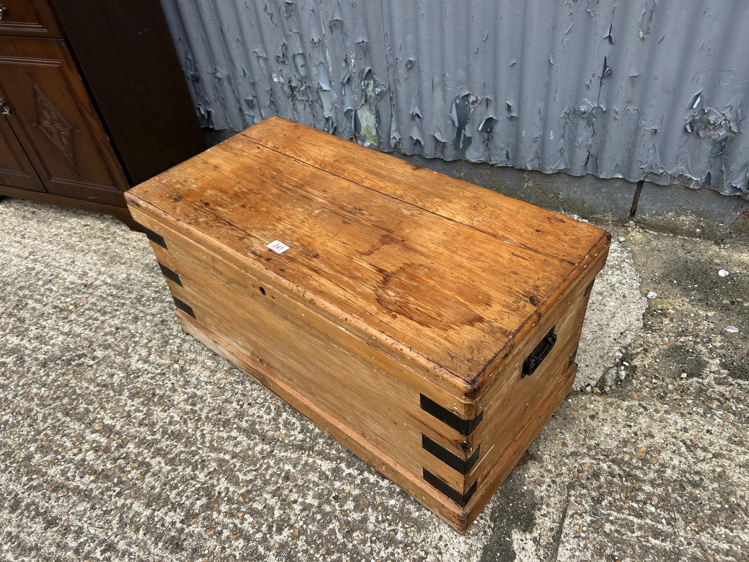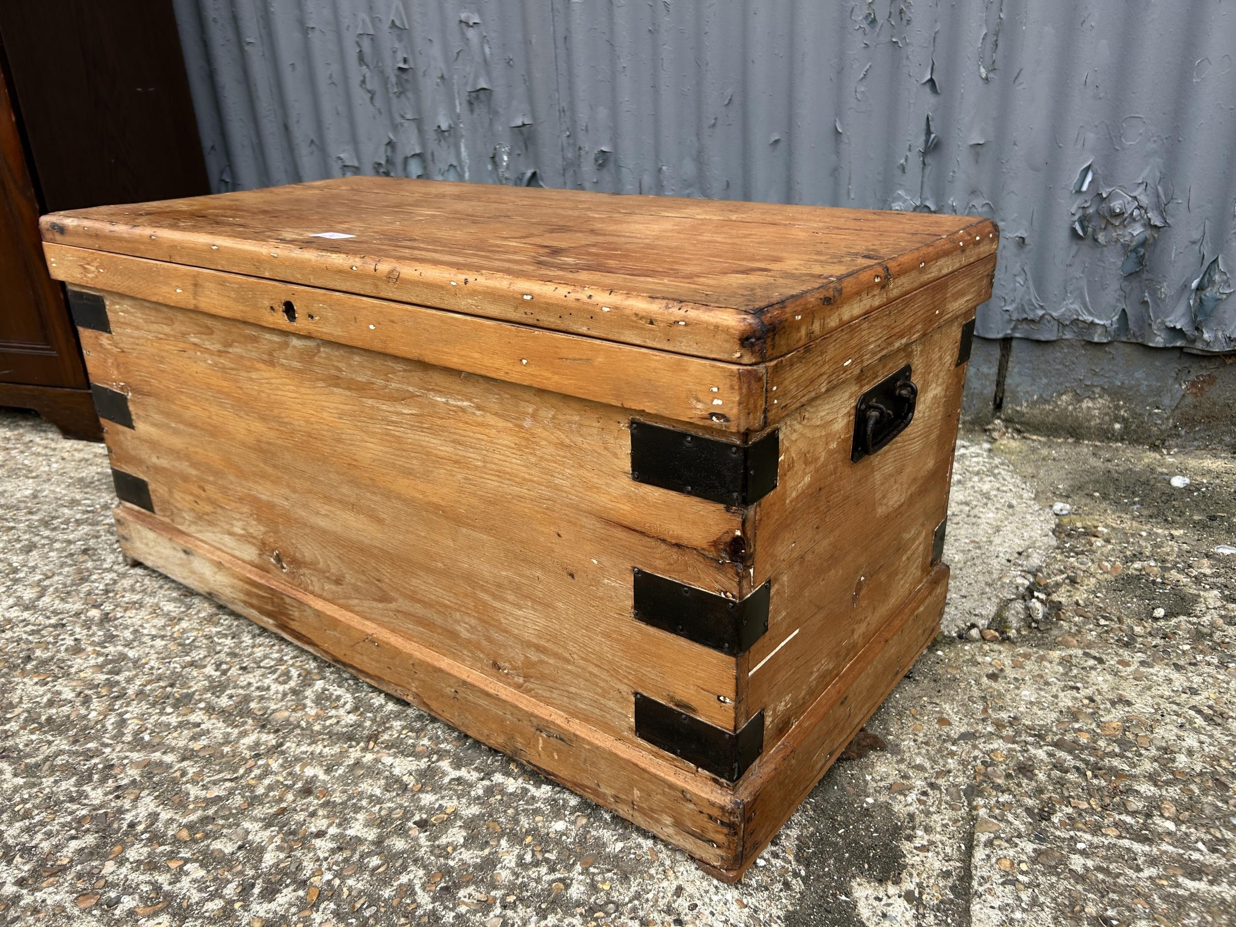 A iron bound pine trunk 90x 44 x44