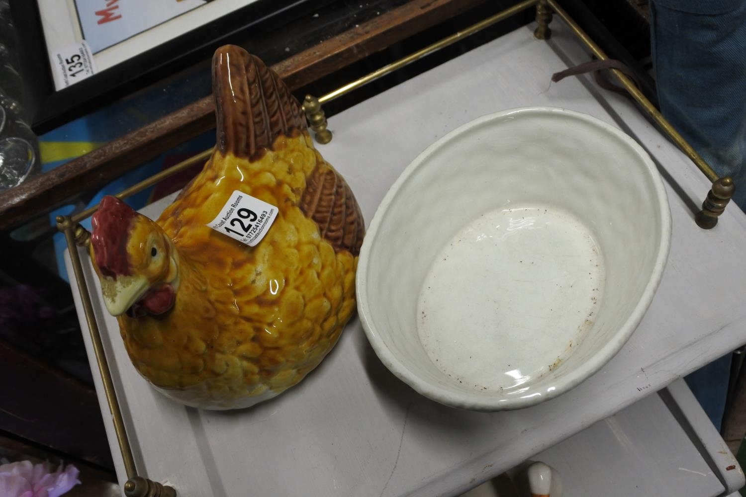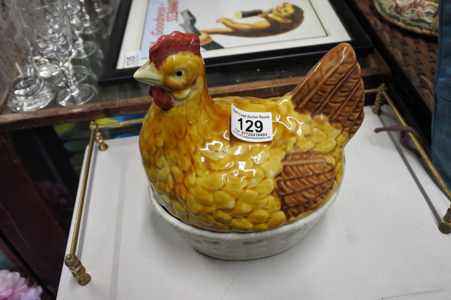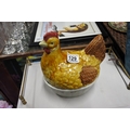 A ceramic egg holder in the shape of a hen.