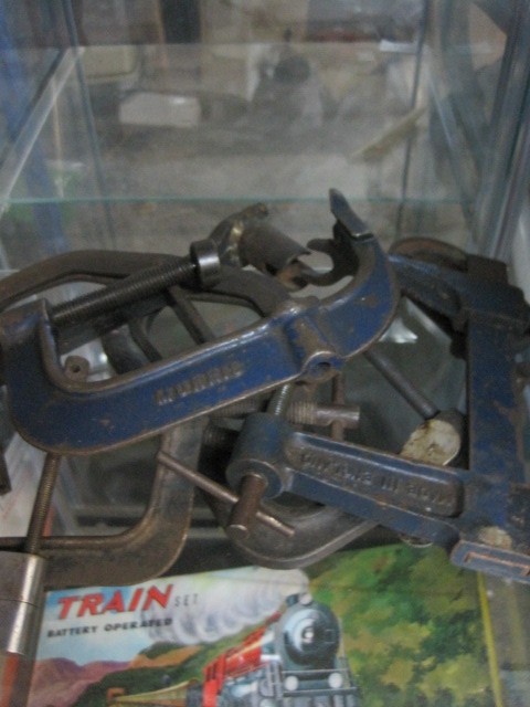 A selection of vintage pullers and nut splitters, one marked 'Morris'