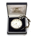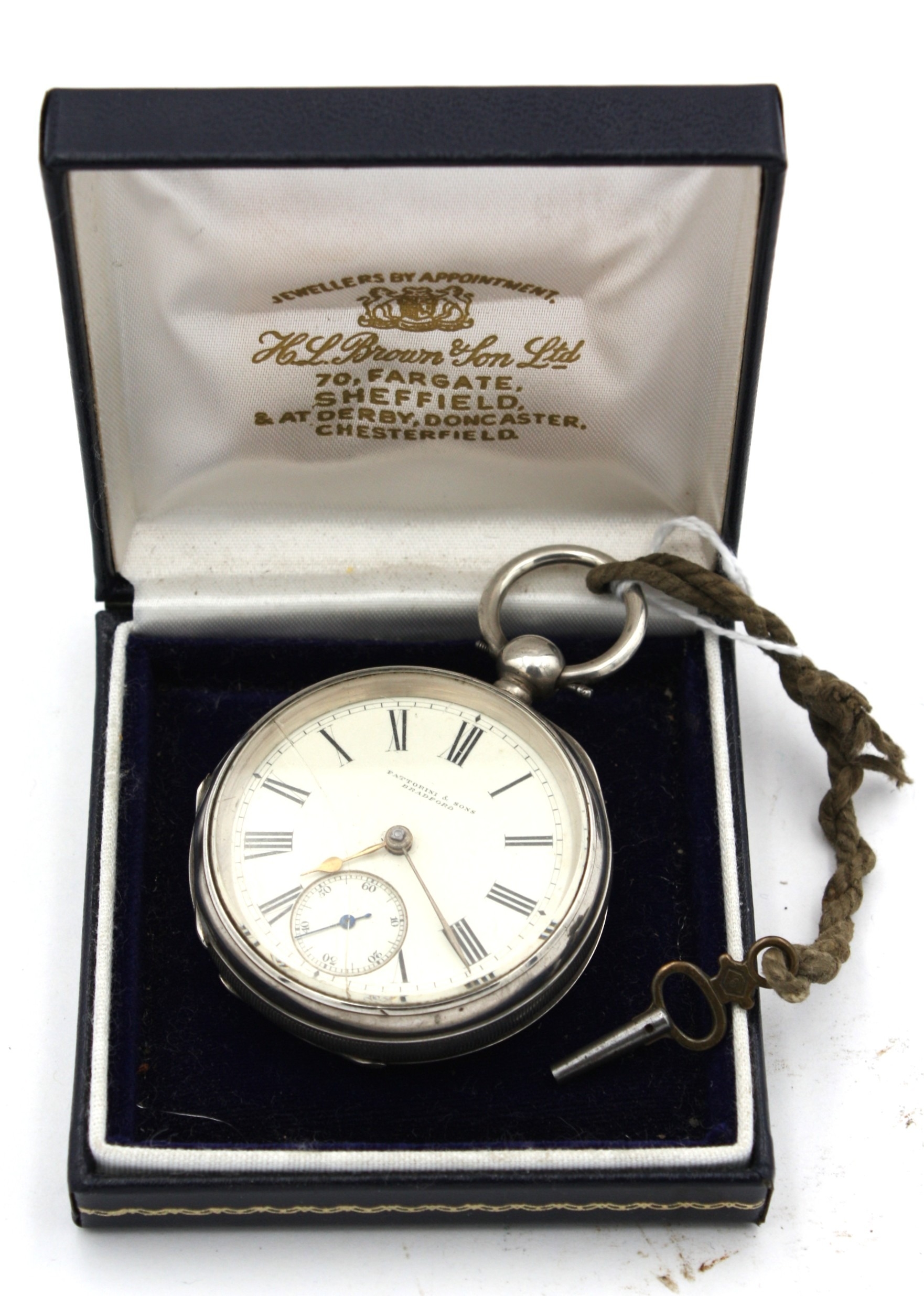 A Silver Key Wind Pocket Watch, hallmarked Birmingham 1871, stamped ('Waltham Mass.') retailed by Fattorini & Sons Bradford', crack to glass, with key.