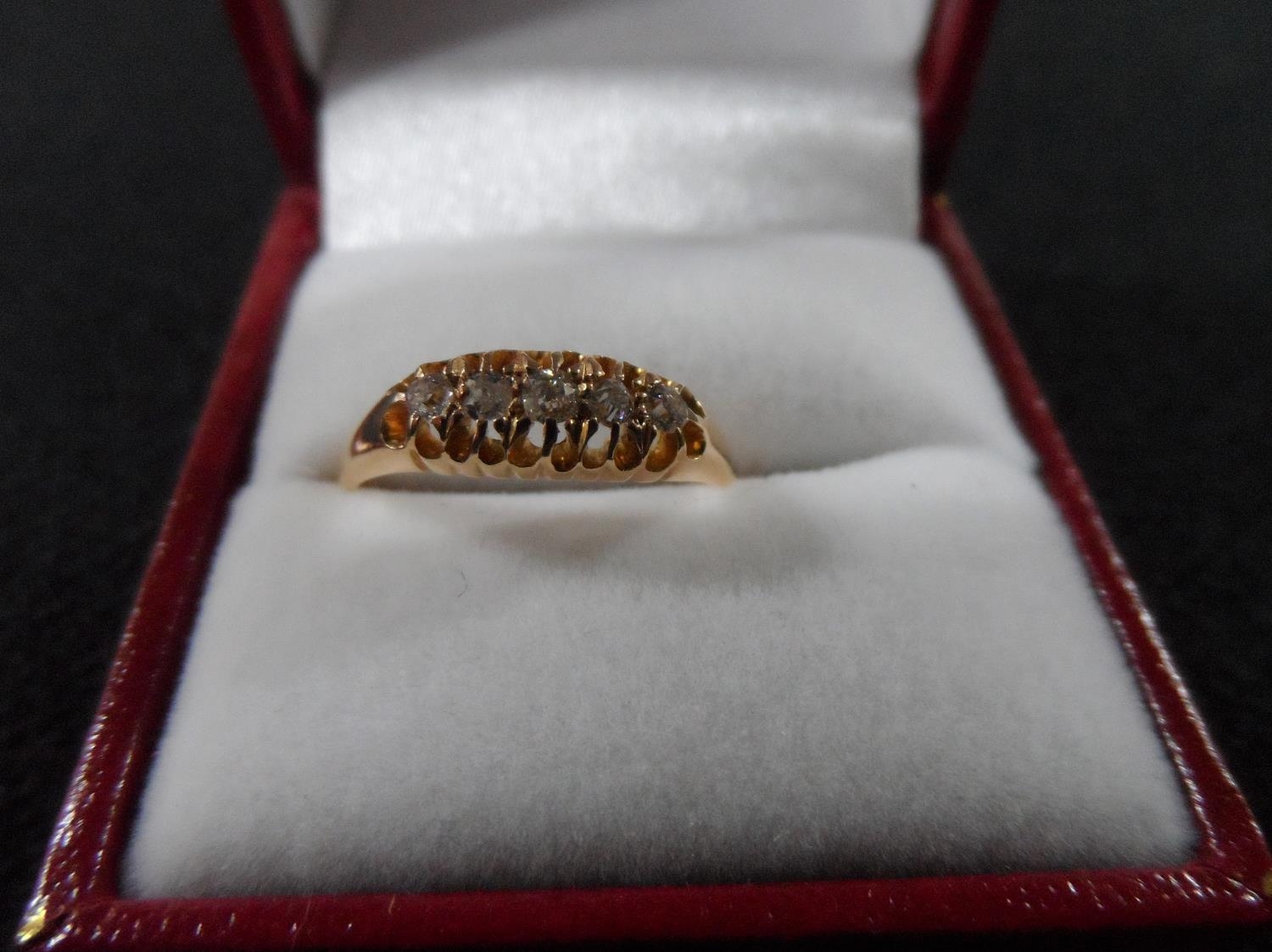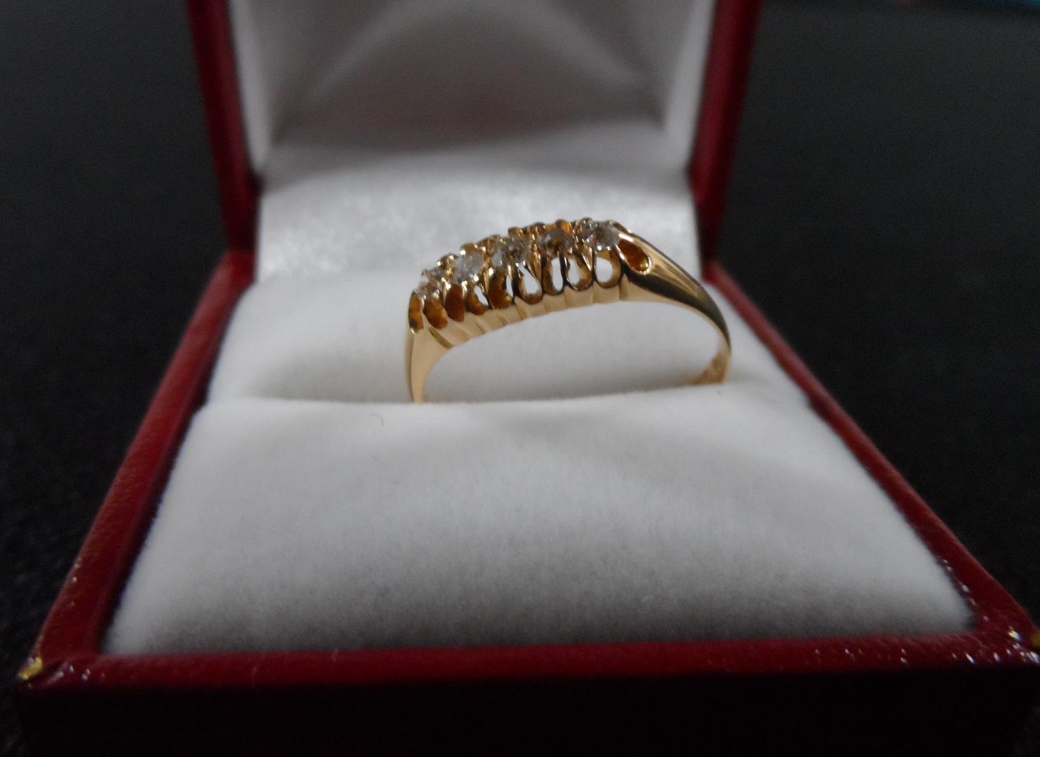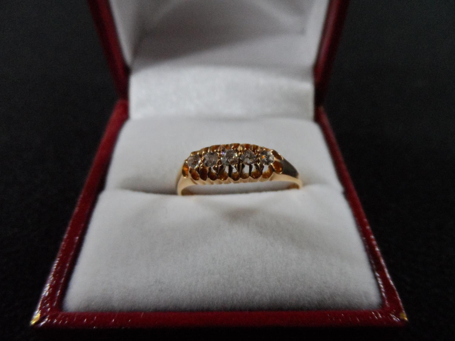 18ct yellow gold 5 diamond ring in presentation box,approx 2.6 grams gross size Q
