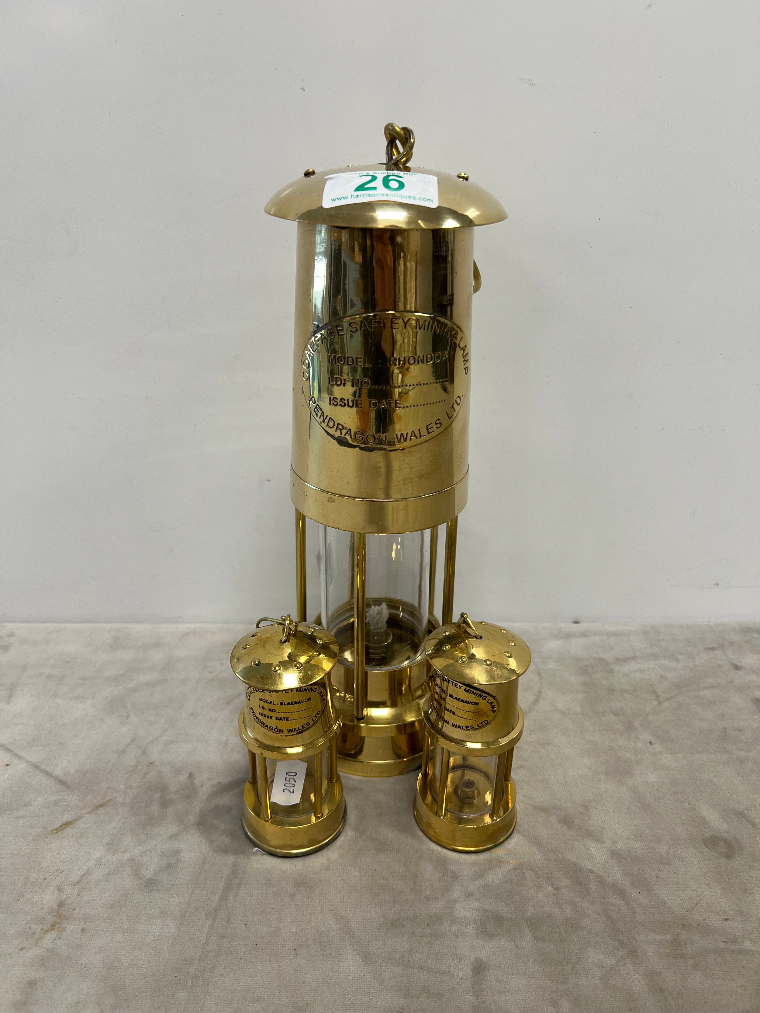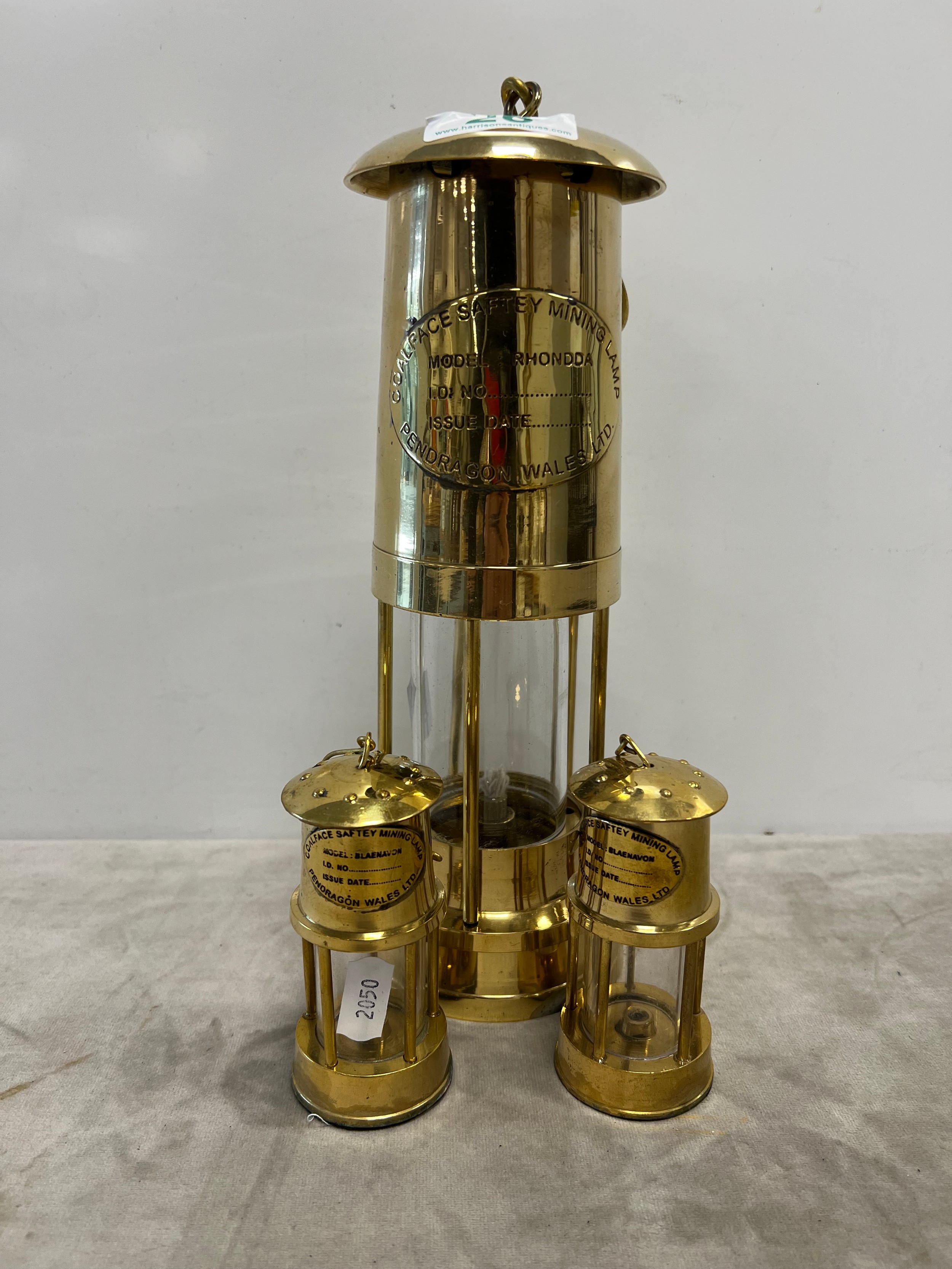 1 Large & 2 miniature brass miners lamps