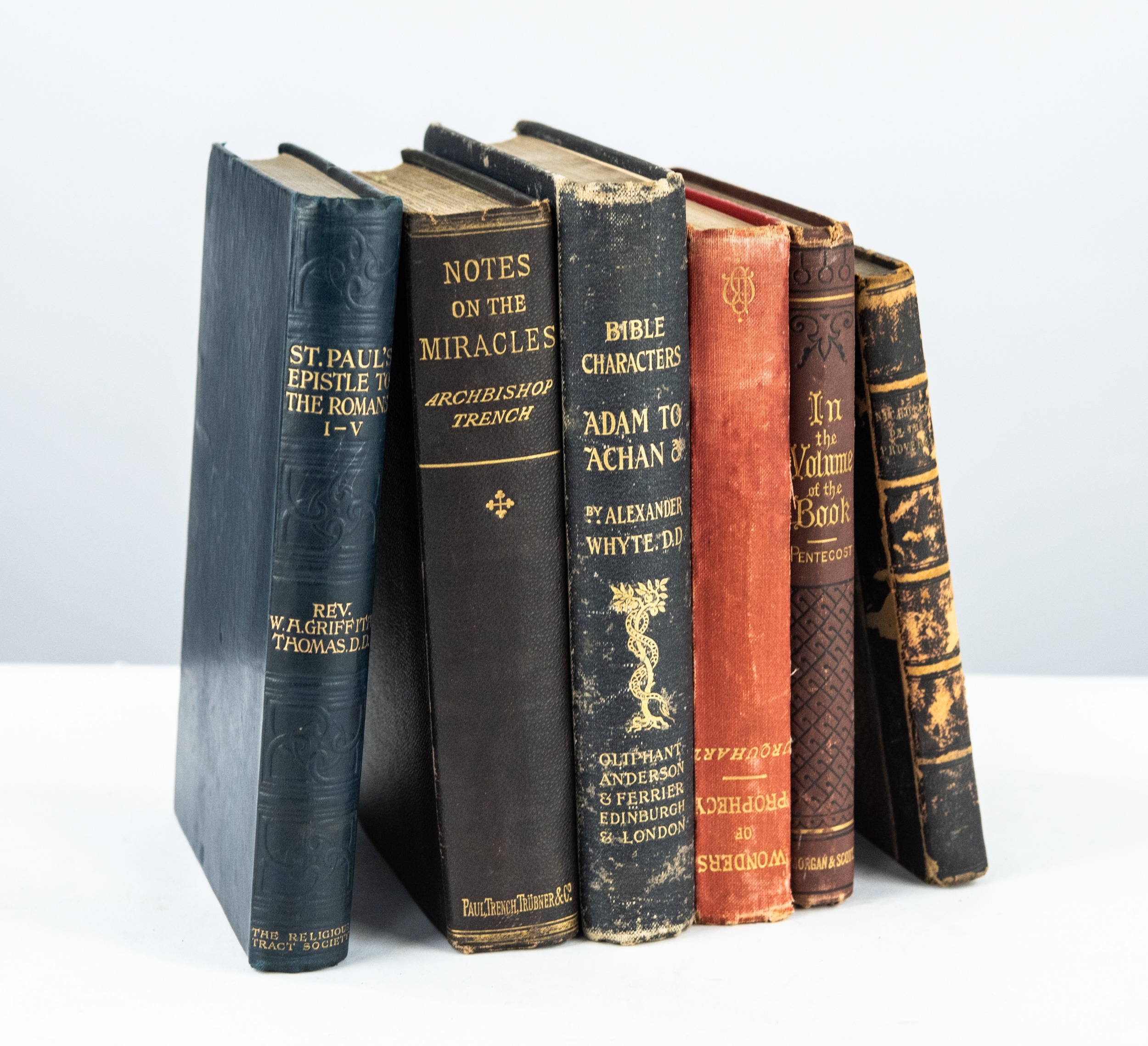 George Lord Bishop of Norwich - A Commentary on the Book of Psalms, ninth edition, 2 vol, printed 1811, bound in full leather gilt tooling to the spine area. Frederic Farrar - The Early Days of Christianity, 2 vol, pub Cassell, Petter, Galpin & Co, 1882. Together with a group of further scholarly, THEOLOGICAL titles mainly relating to Christian learning and teaching. Contents of one large box