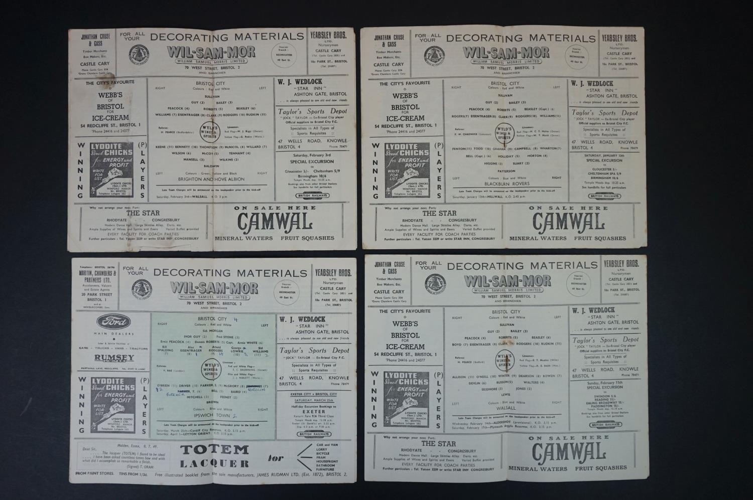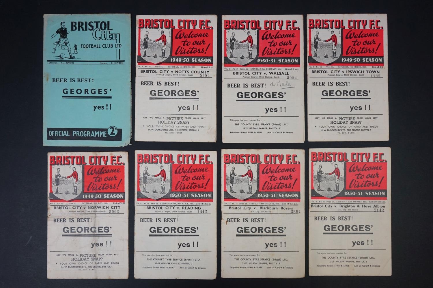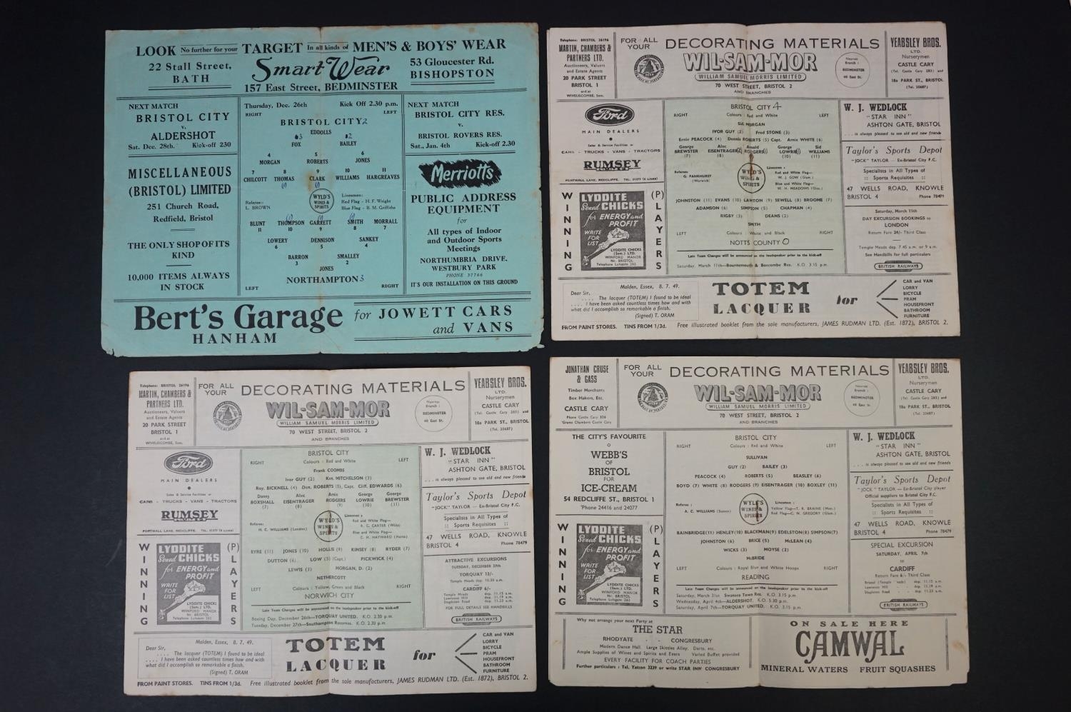Eight 1940/50s Bristol City home football programmes to include v Northampton 26th Deec 1946 (edge wear, marks, pen), 3 x 1949/50 & 4 x 1950/51, fair overall with marks and wear