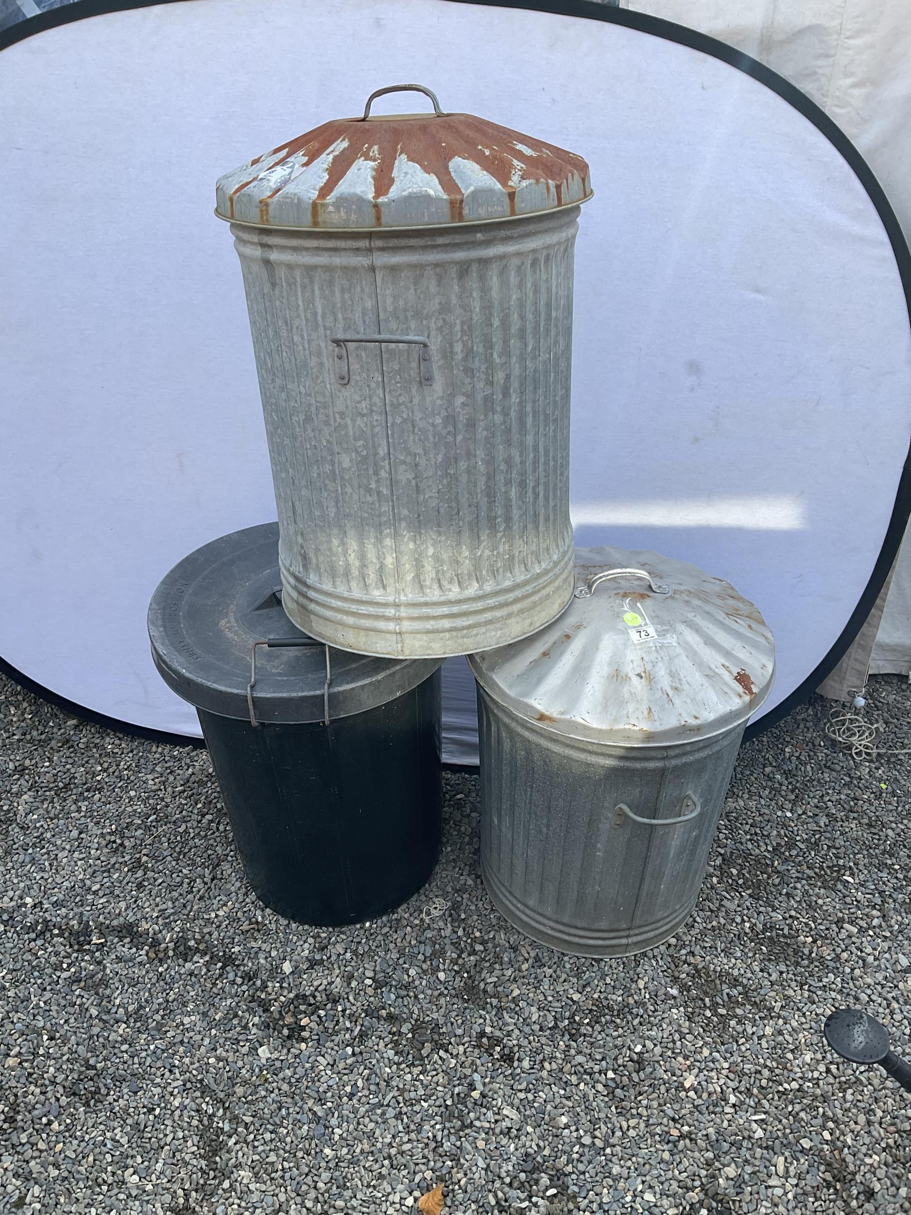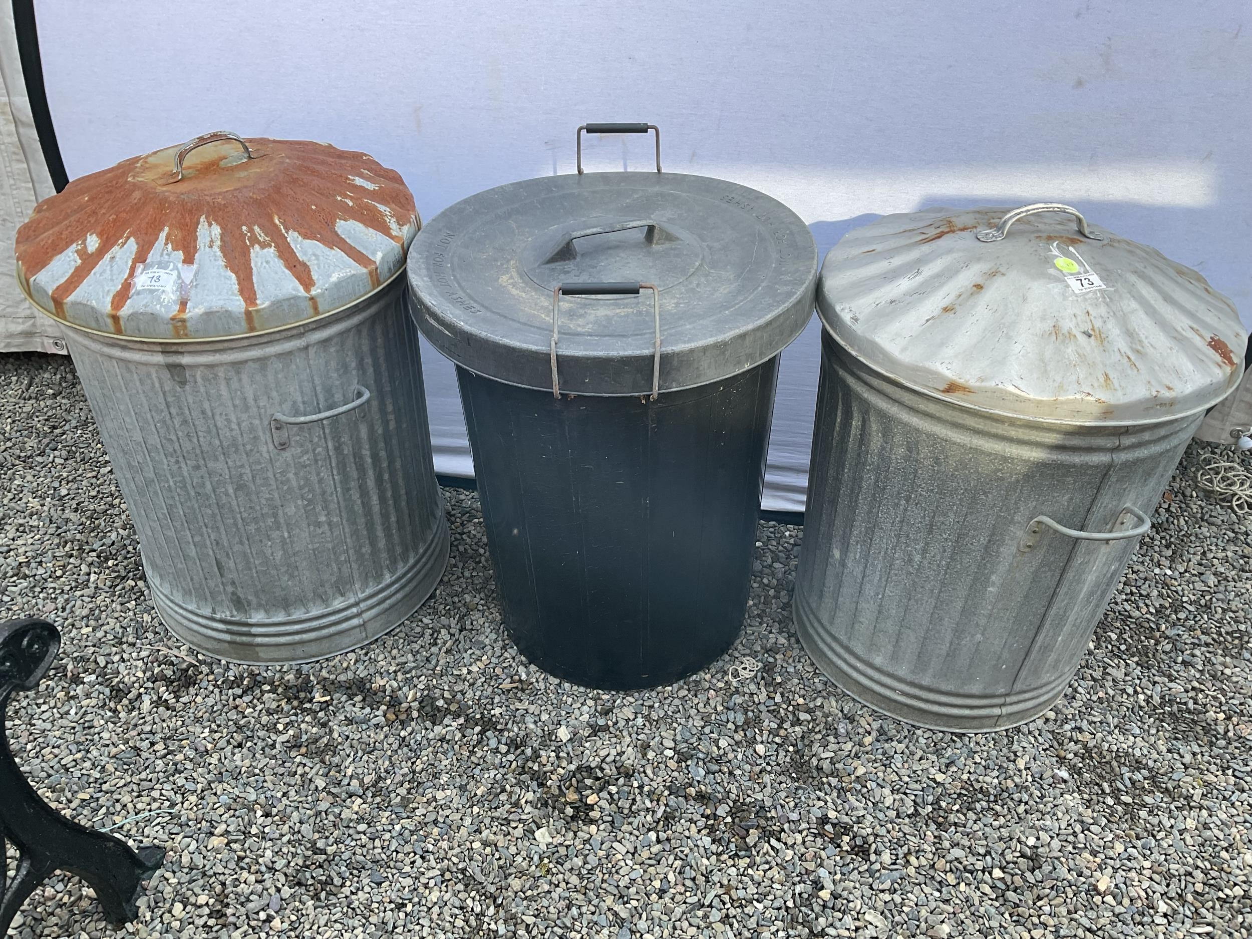 2 GALVANISED DUSTBINS AND A PLASTIC DUSTBIN