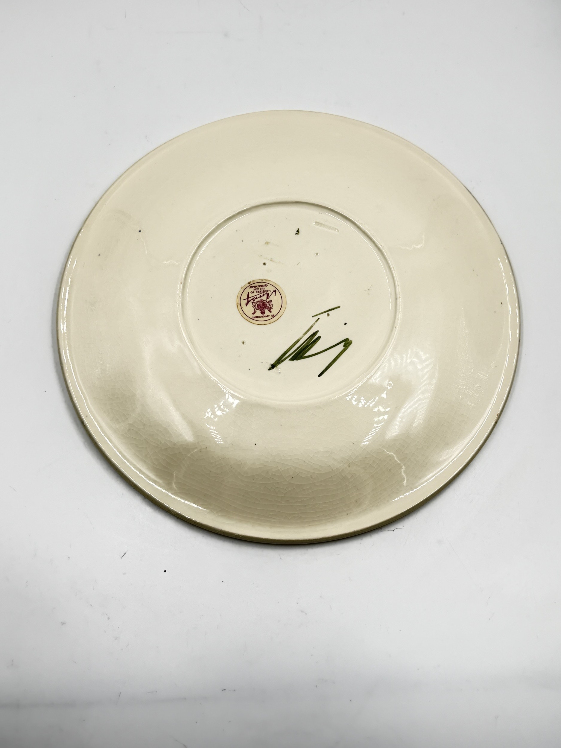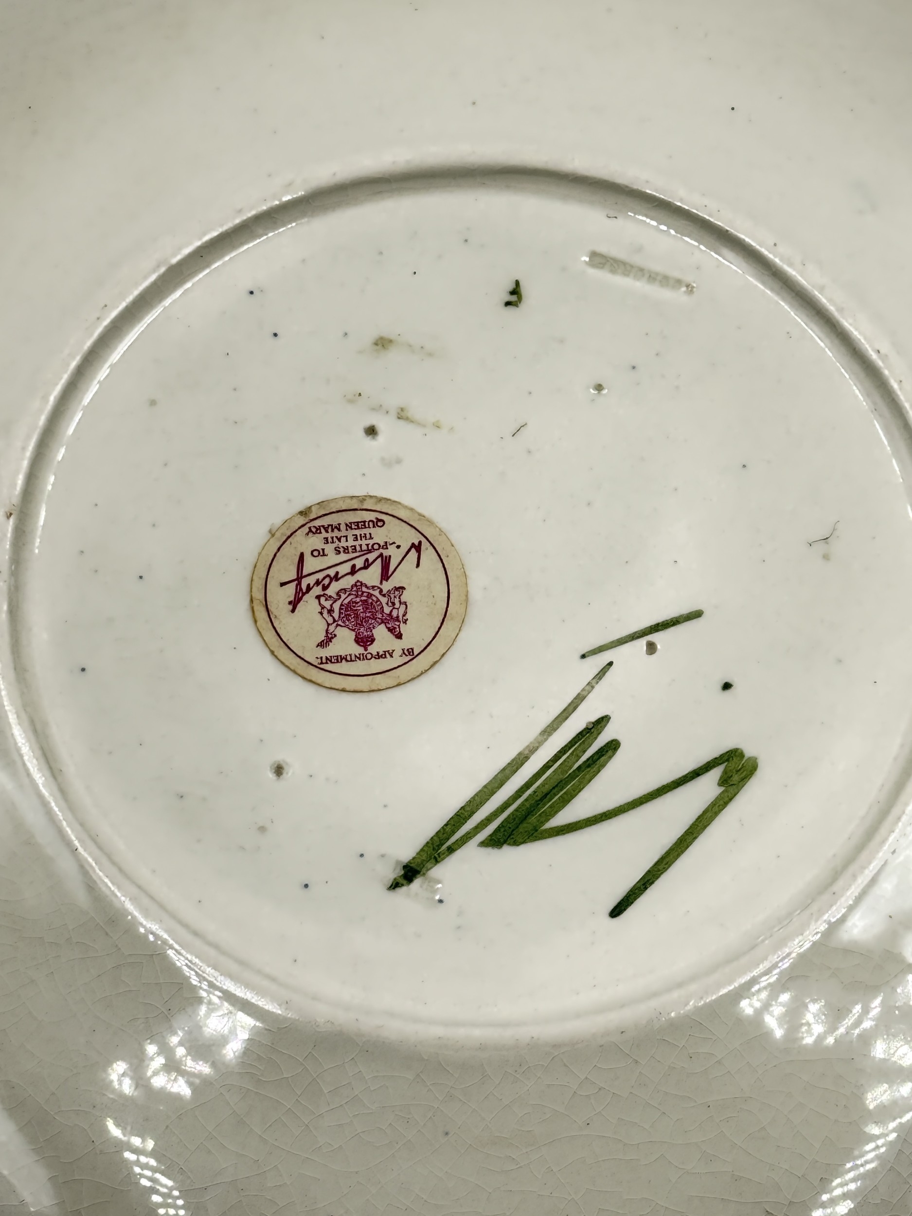 Signs of crazing throughout and one flower has chip/crack to glaze.