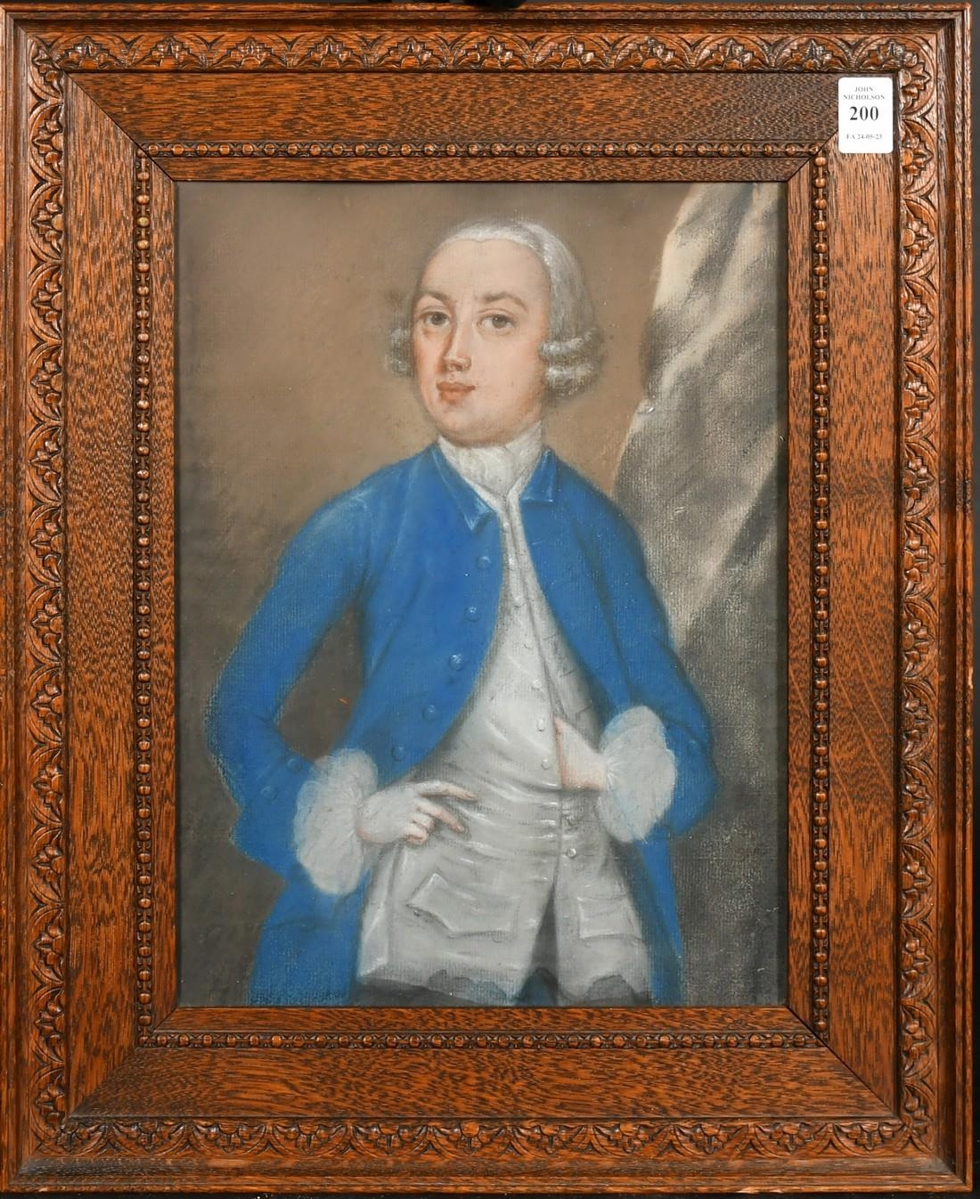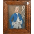 18th Century, A three quarter length portrait of a gentleman wearing a blue coat, pastel, 13.25" x 9.75", (34x25cm).