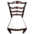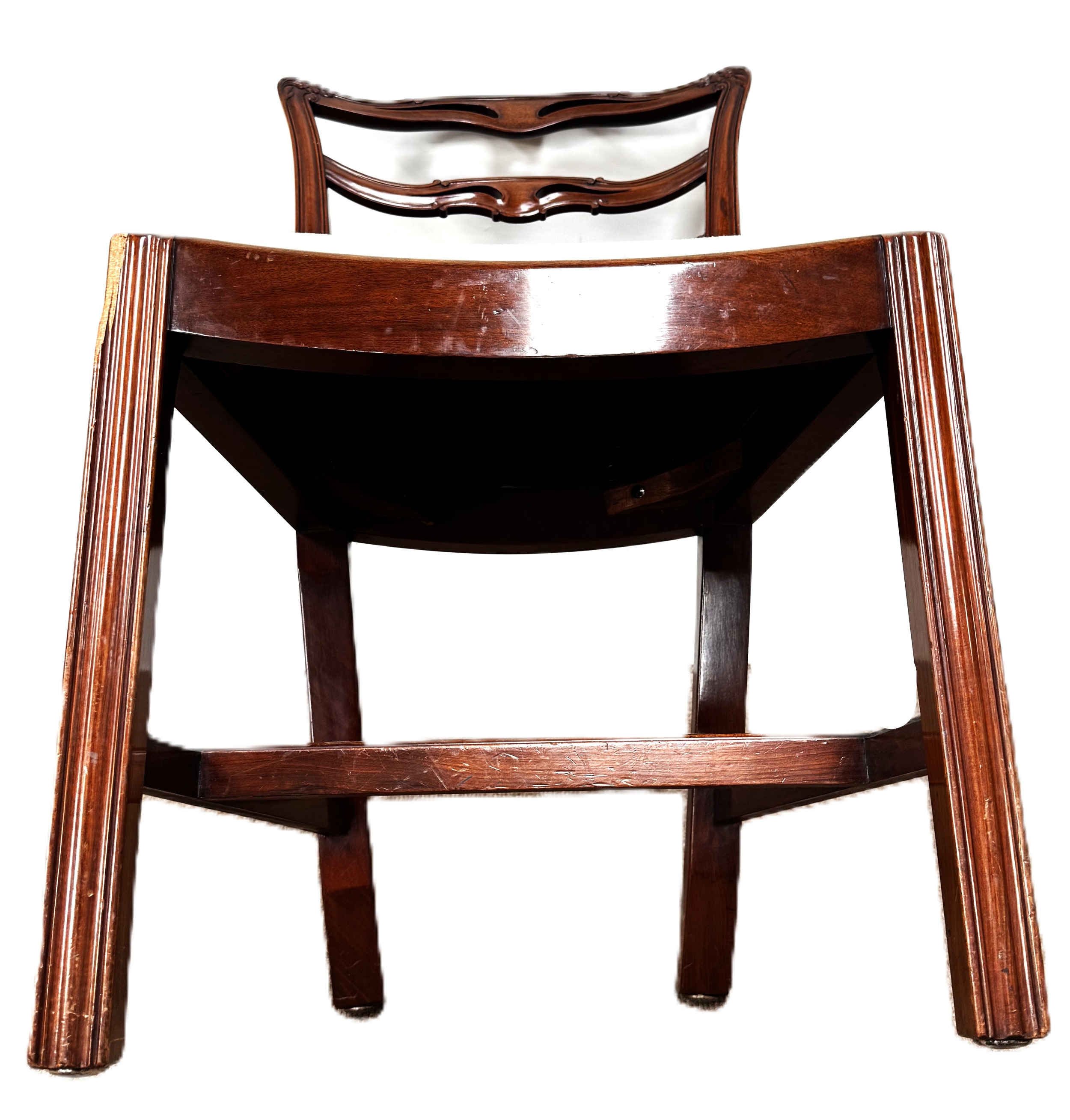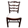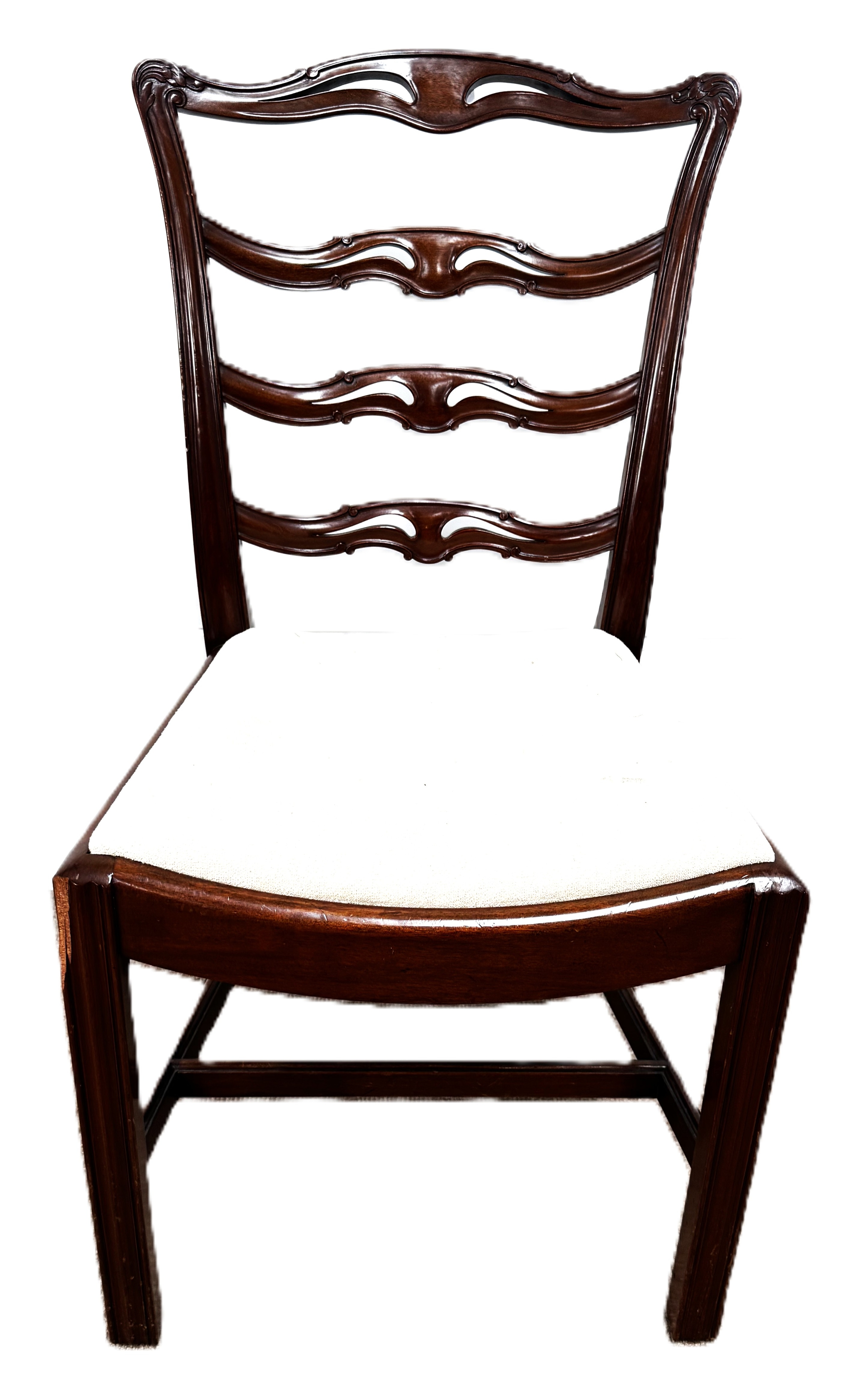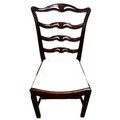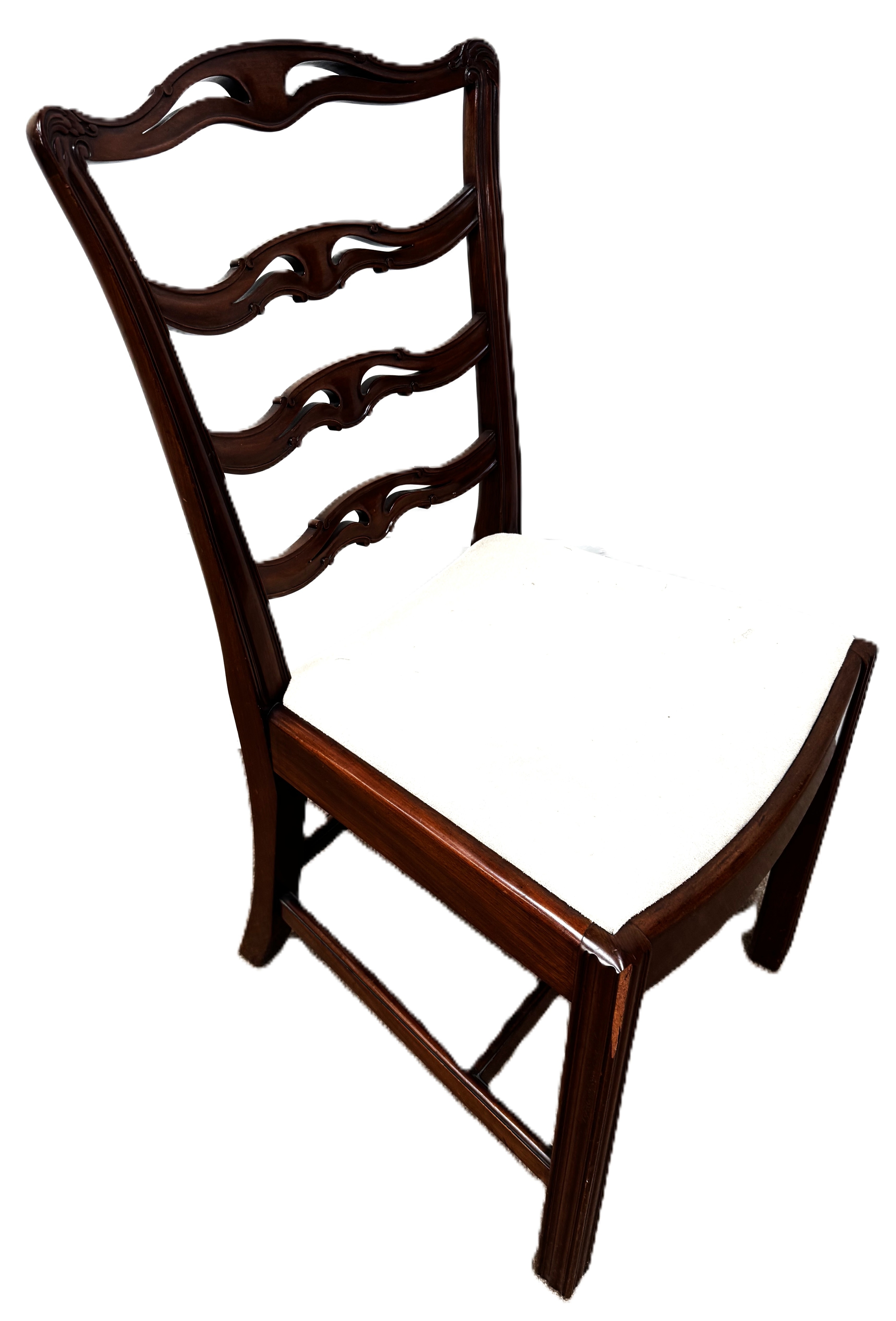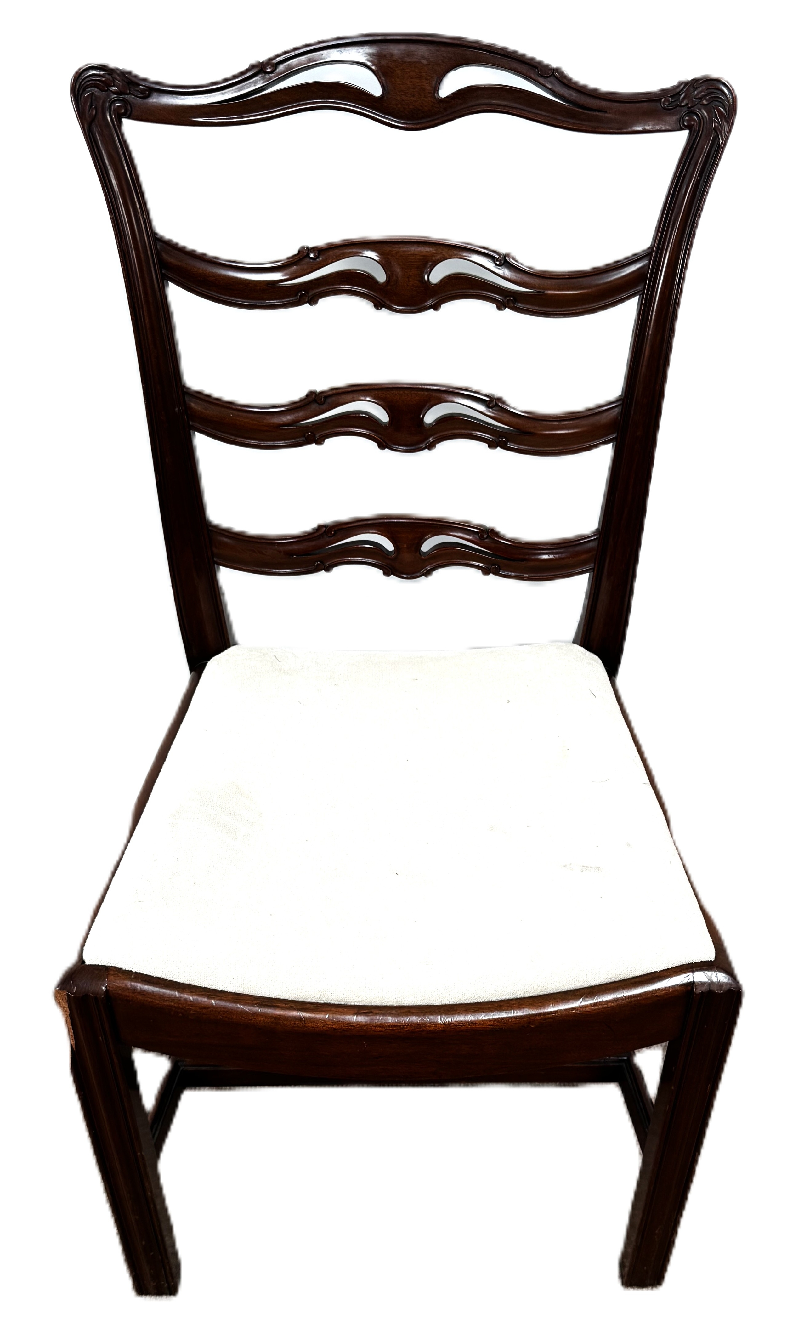 A contemporary cantilever dining chair in faux leather upholstery; also a dining chair with cream fabric (97cm high) and a footstool (48cm high) (3)