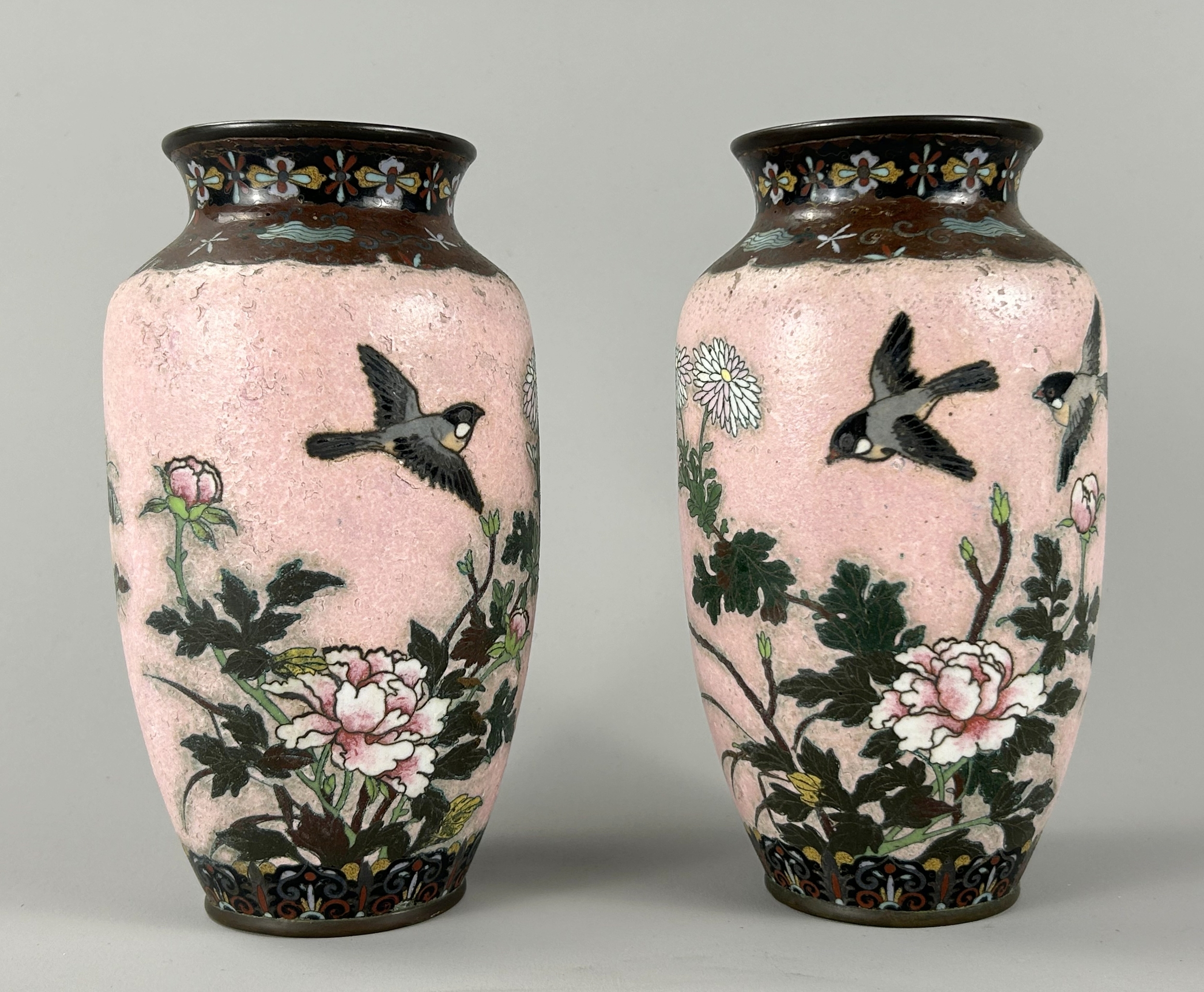 A pair of Japanese Cloisonne vases.