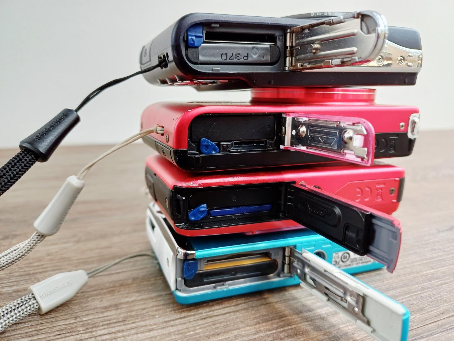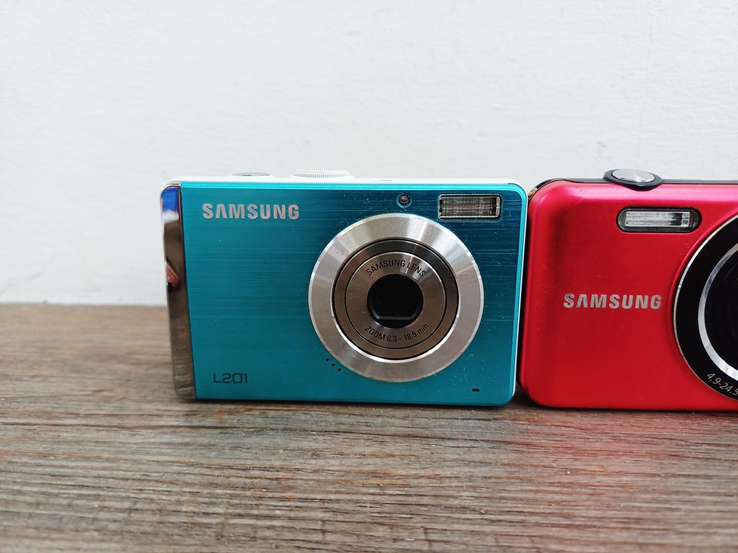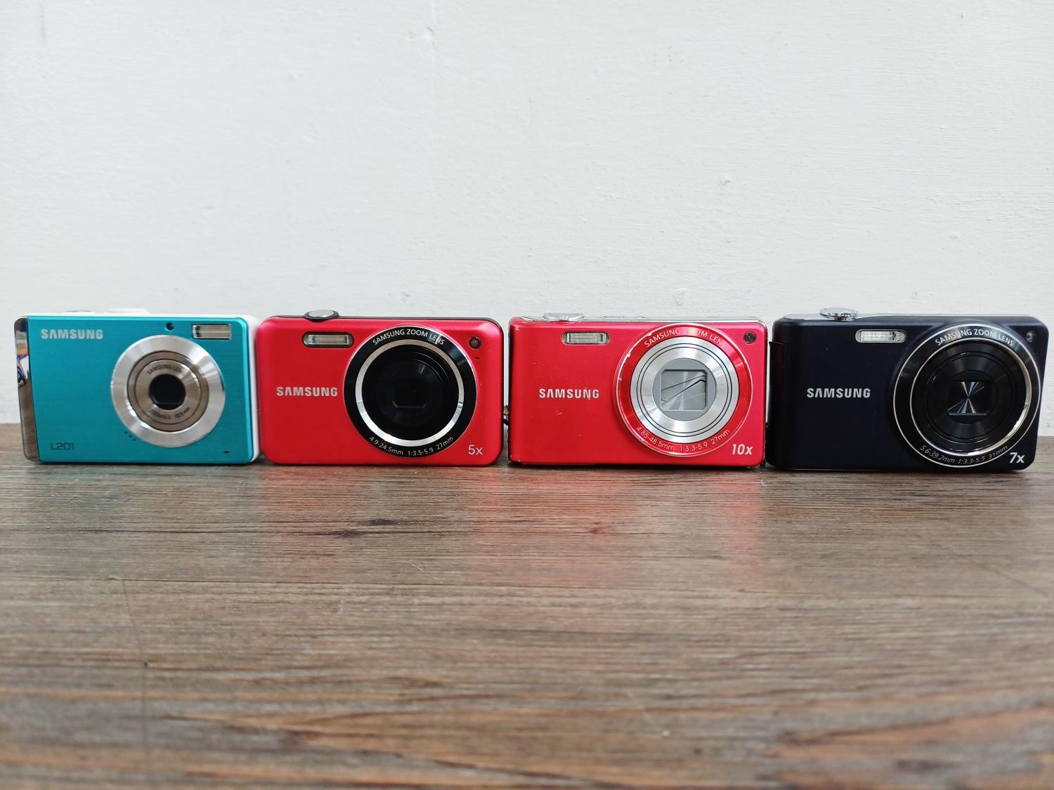 Four Samsung compact digital cameras, one ES73 12.2mp, one PL211 14.2mp, one L201 10.2mp and one PL201 14.2mp