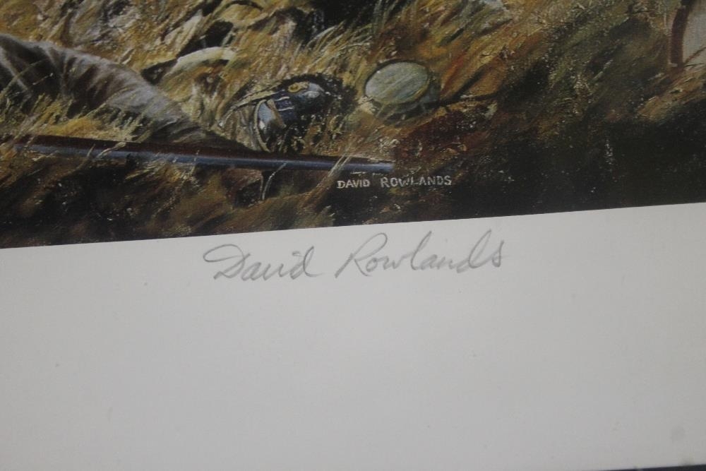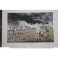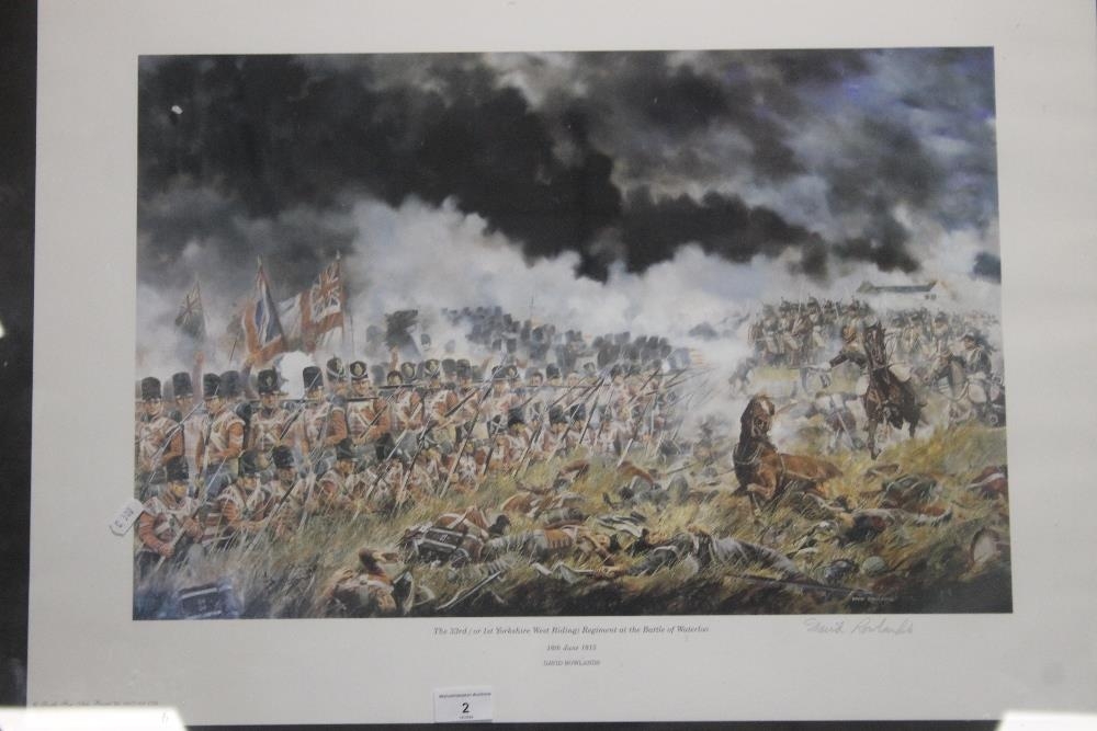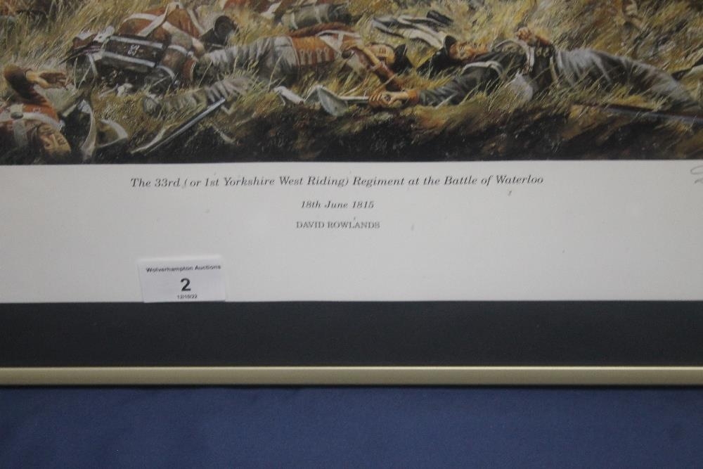 A FRAMED AND GLAZED DAVID ROWLANDS PRINT TITLED "THE 33RD OR 1ST WEST RIDING REGIMENT AT THE BATTLE OF WATERLOO
