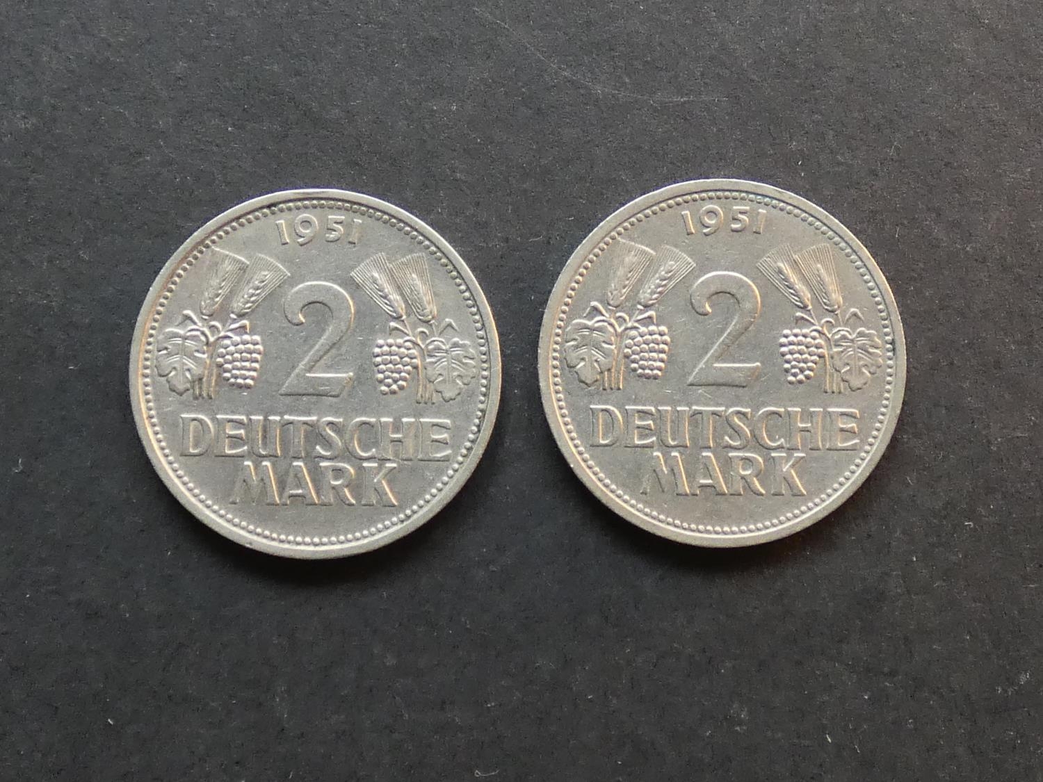 GERMANY. Federal Republic (West Germany). 2 Deutschmark, 1951D & 1951F, KM111, VF to GVF (2)