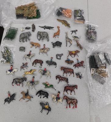 Lead figure soldiers, animals and fencing