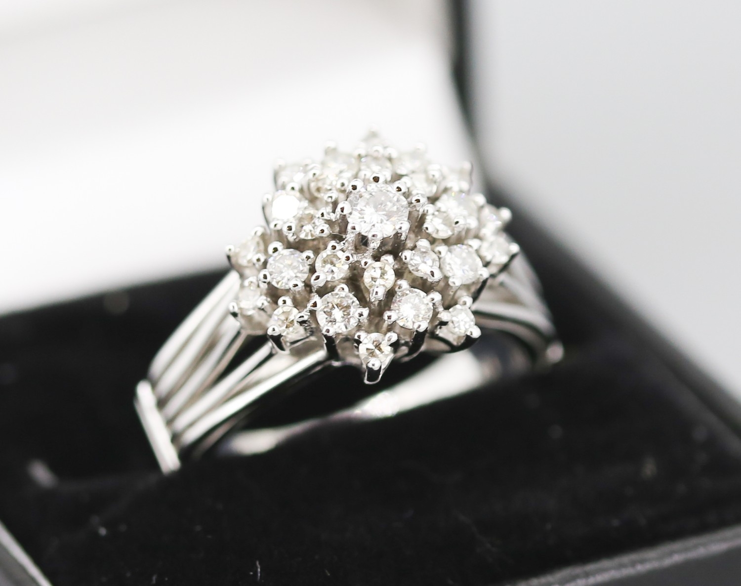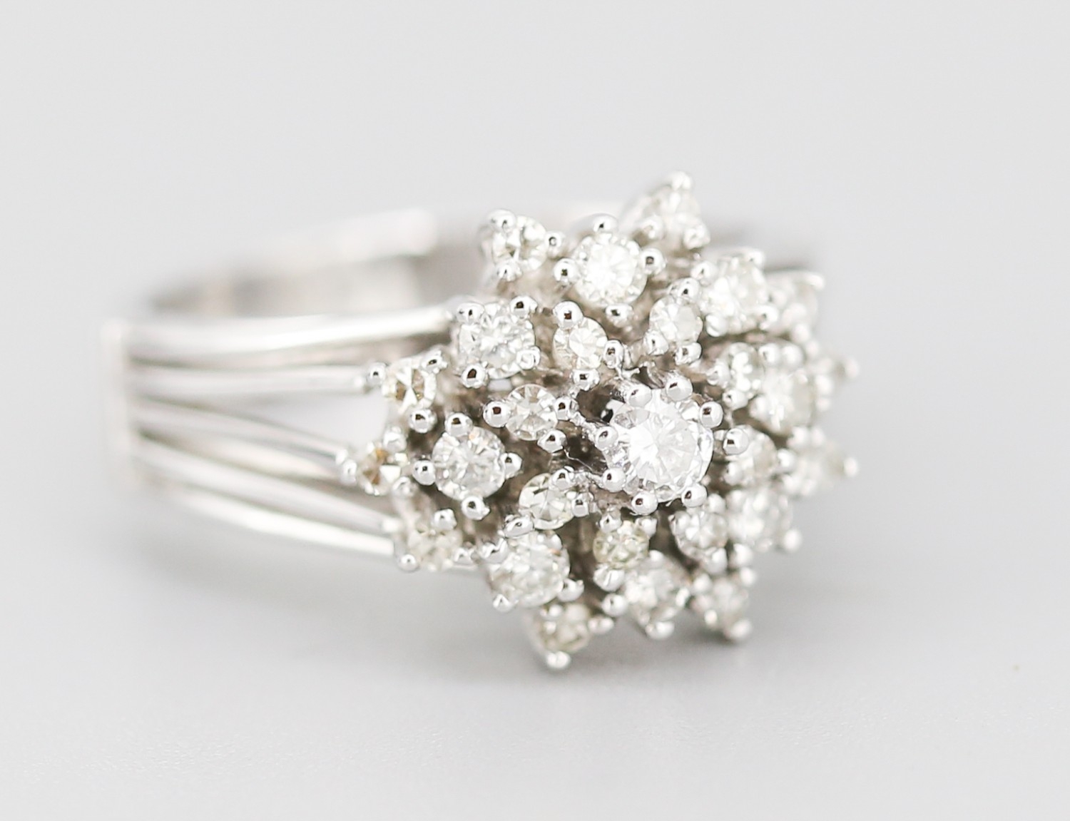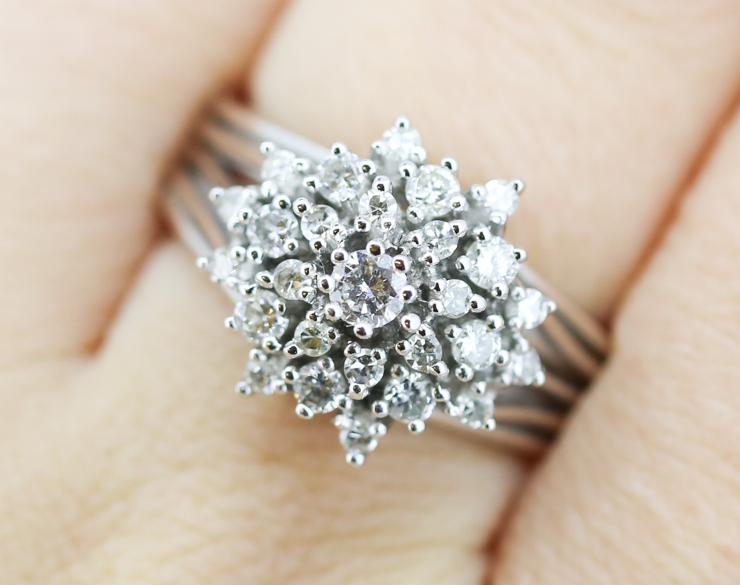 Finely Detailed Diamond Cluster Set Ring Mounted in 18 Carat White Gold Ring Size R