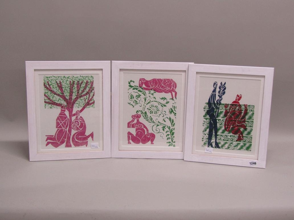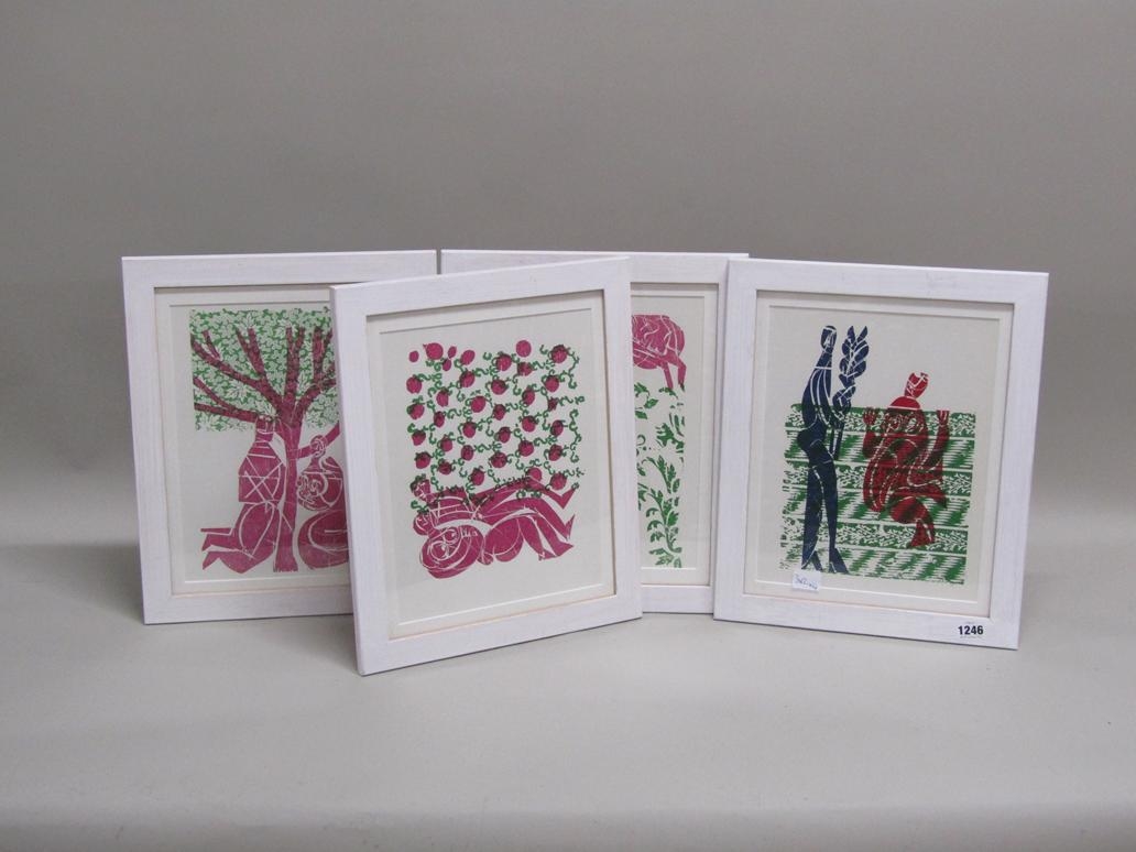SERIES OF FOUR HAP GRIESHABER CONTEMPORARY COLOURED WOODCUT PRINTS