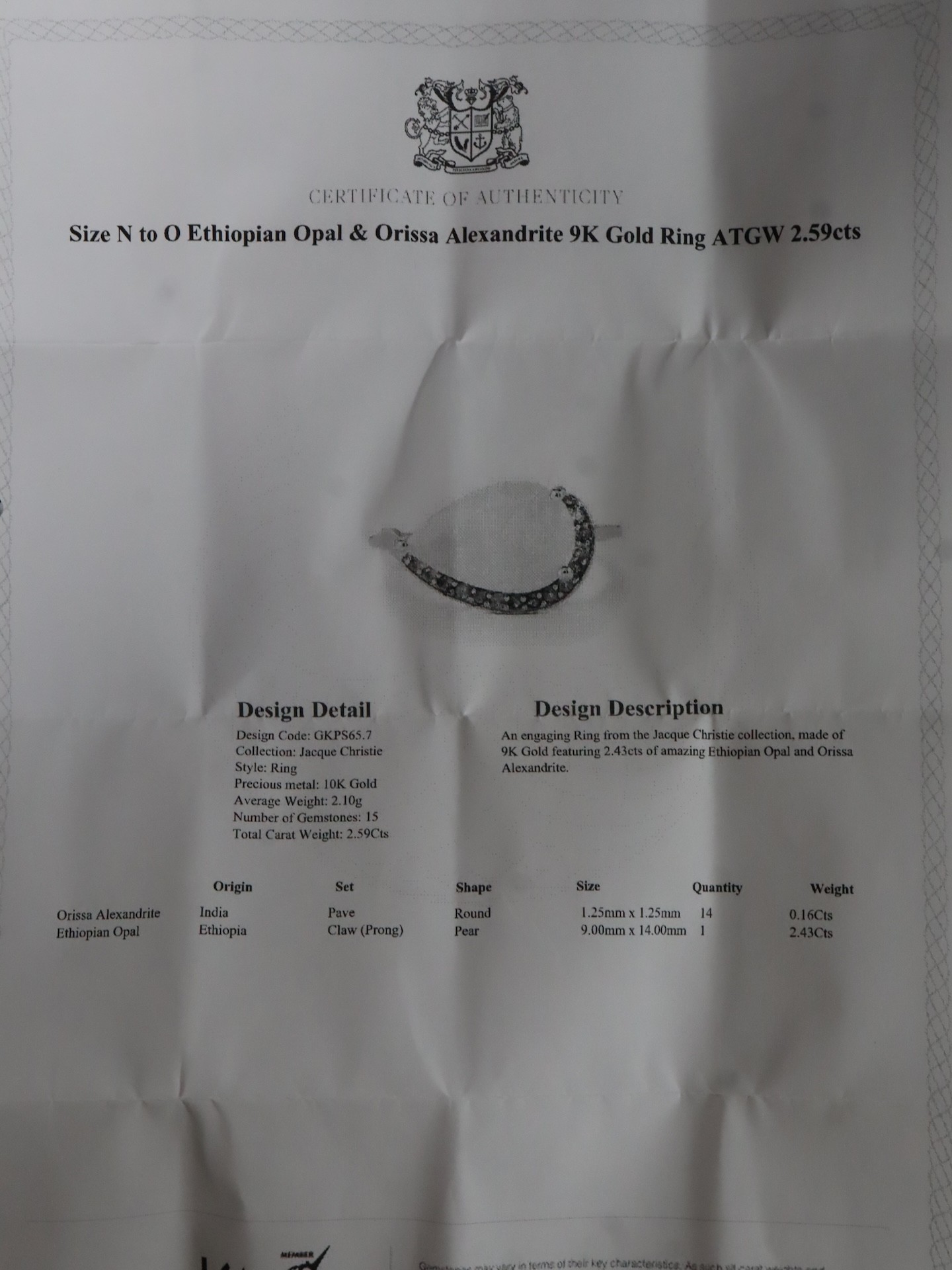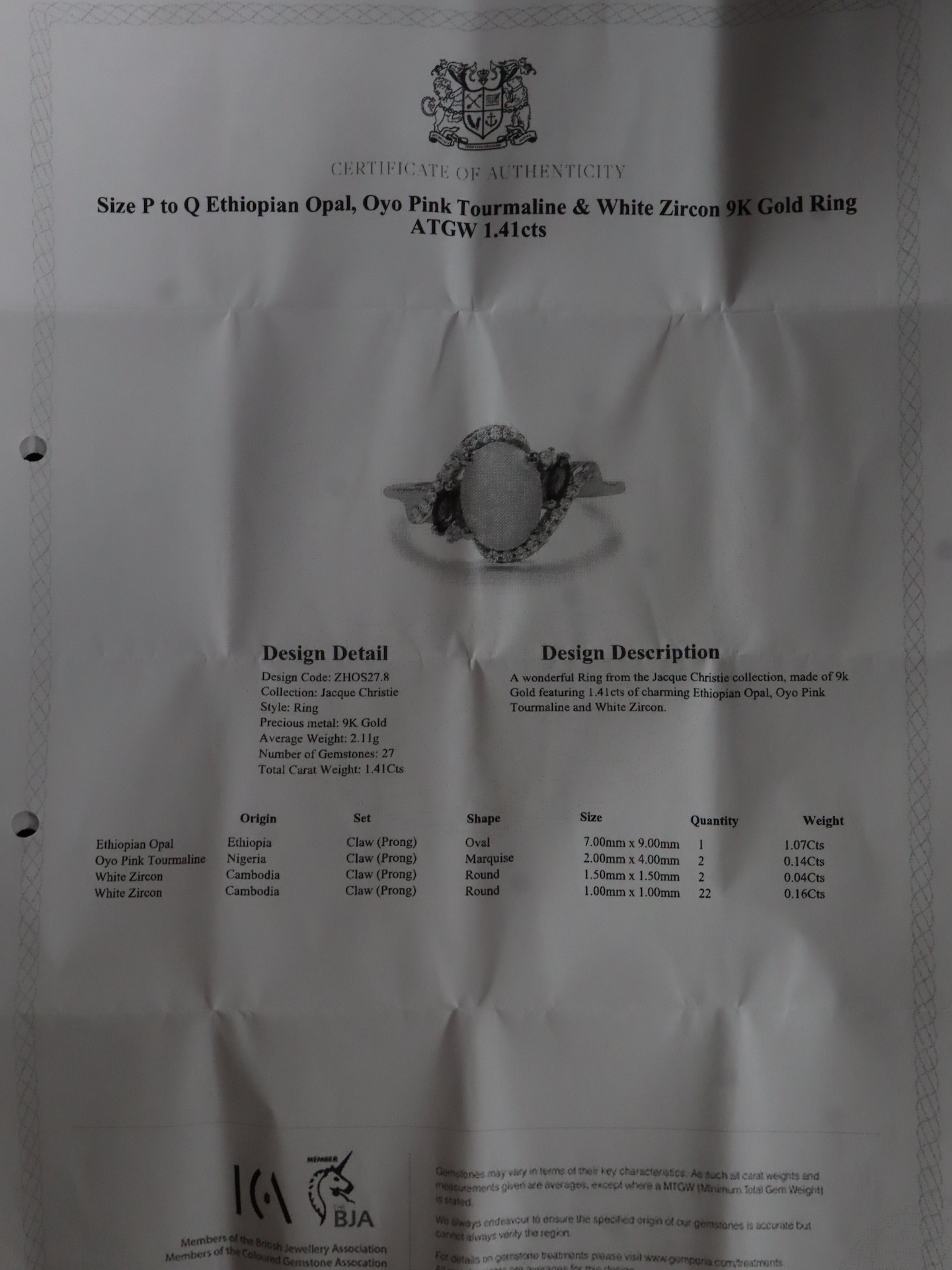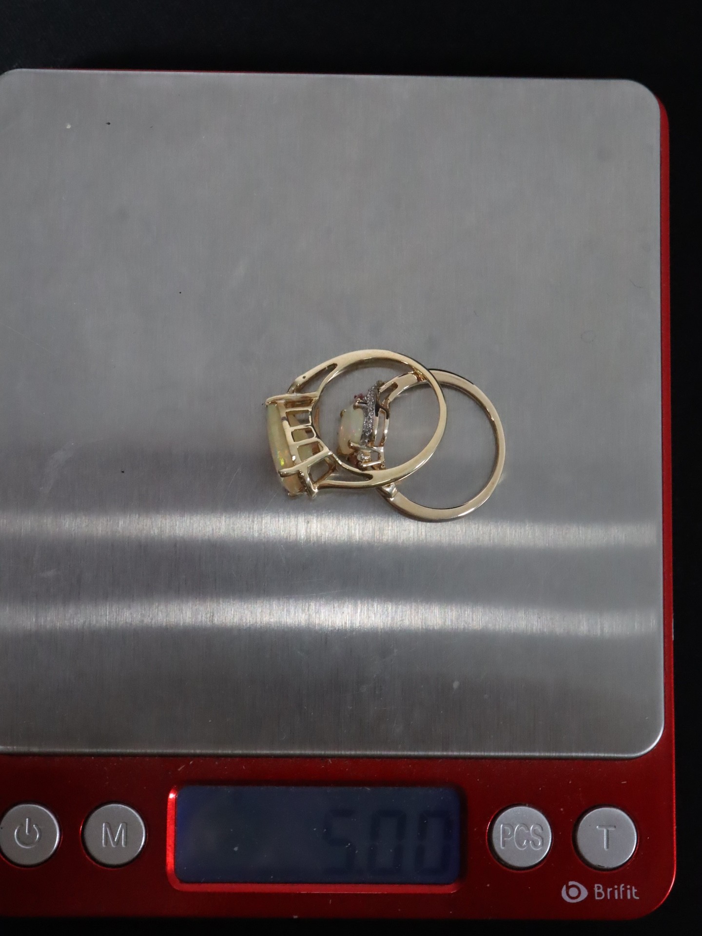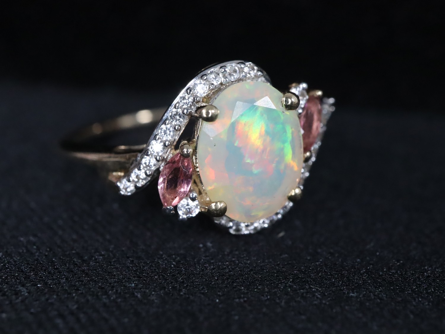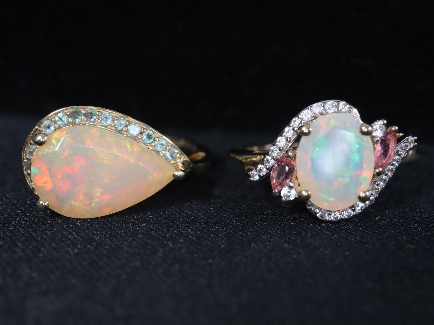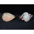 Ethiopian Opal, Oyo Pink Tourmaline & White Zircon 9K Gold Ring Atgw 1.41cts Size P to Q, Ethiopian Opal & Orissa Alexandrite 9K Gold Ring Atgw 2.59cts Size N to O -5g