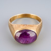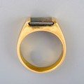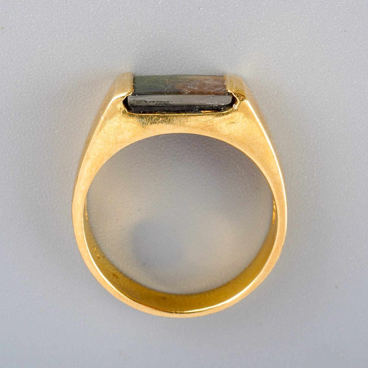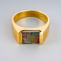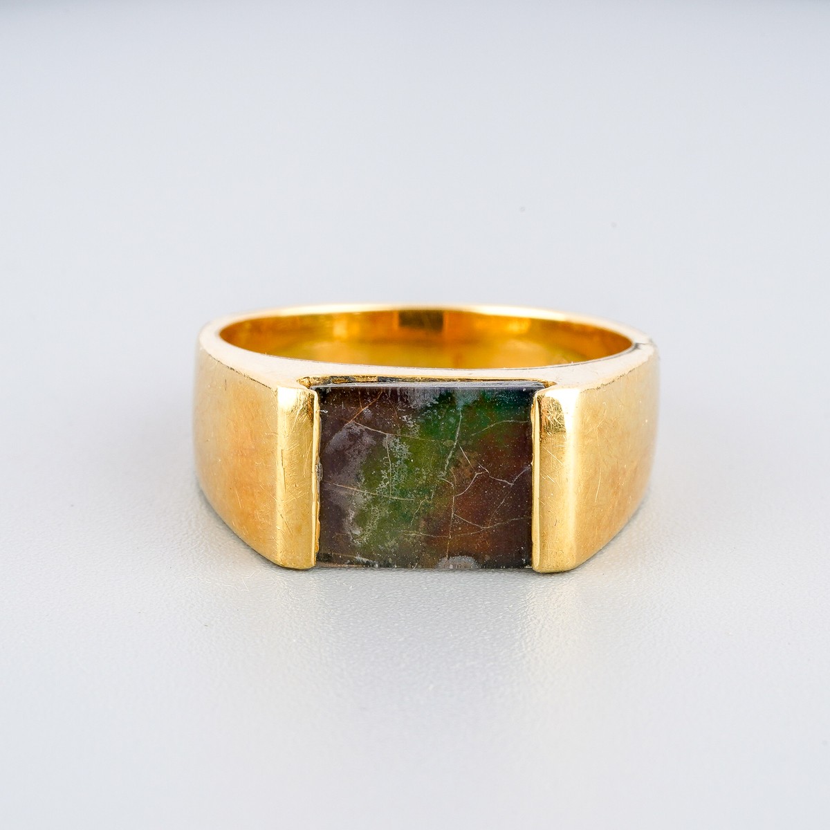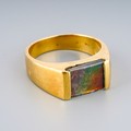 Yellow metal ( marked 18k) ring set with ammolite, UK size S, gross weight approx. 8.8g