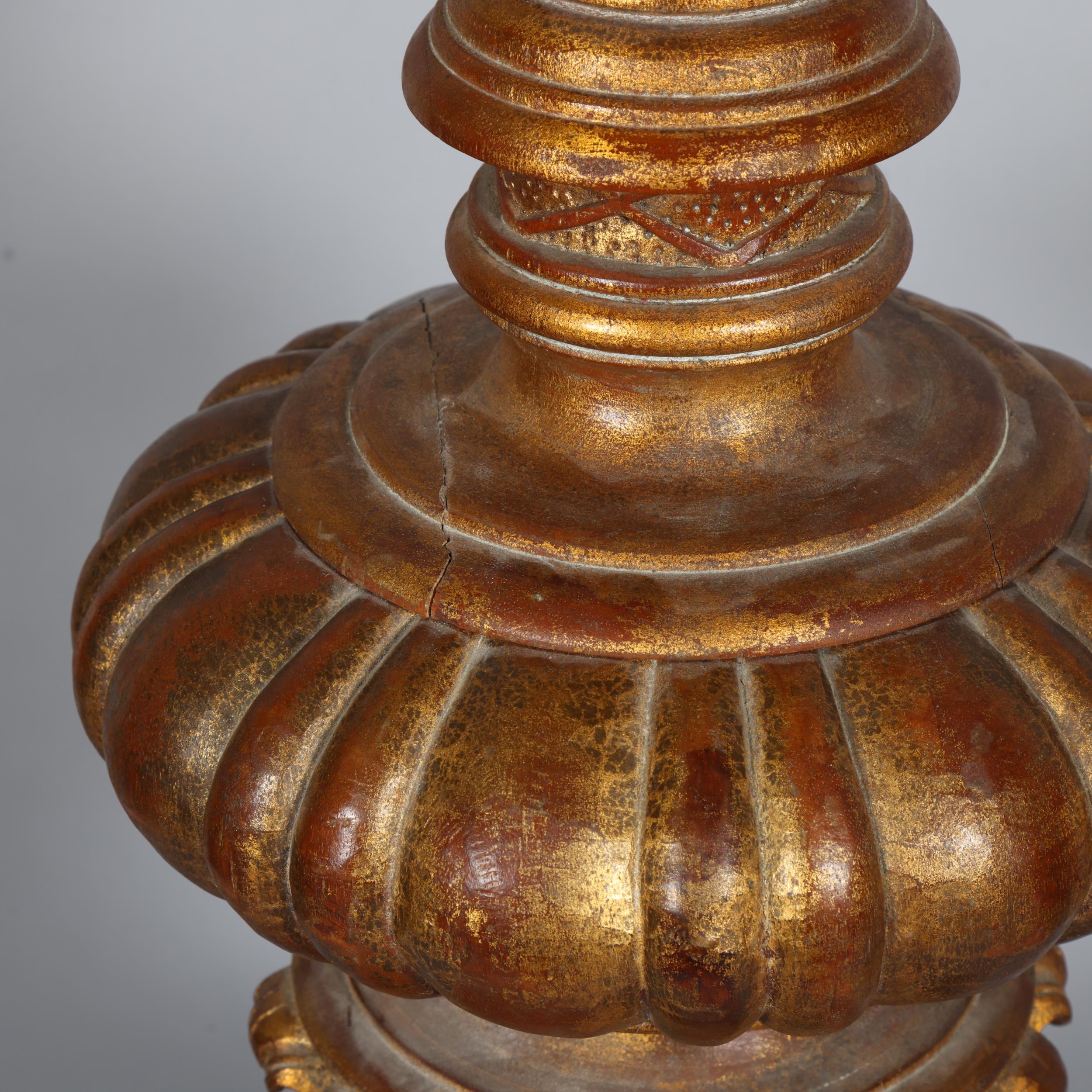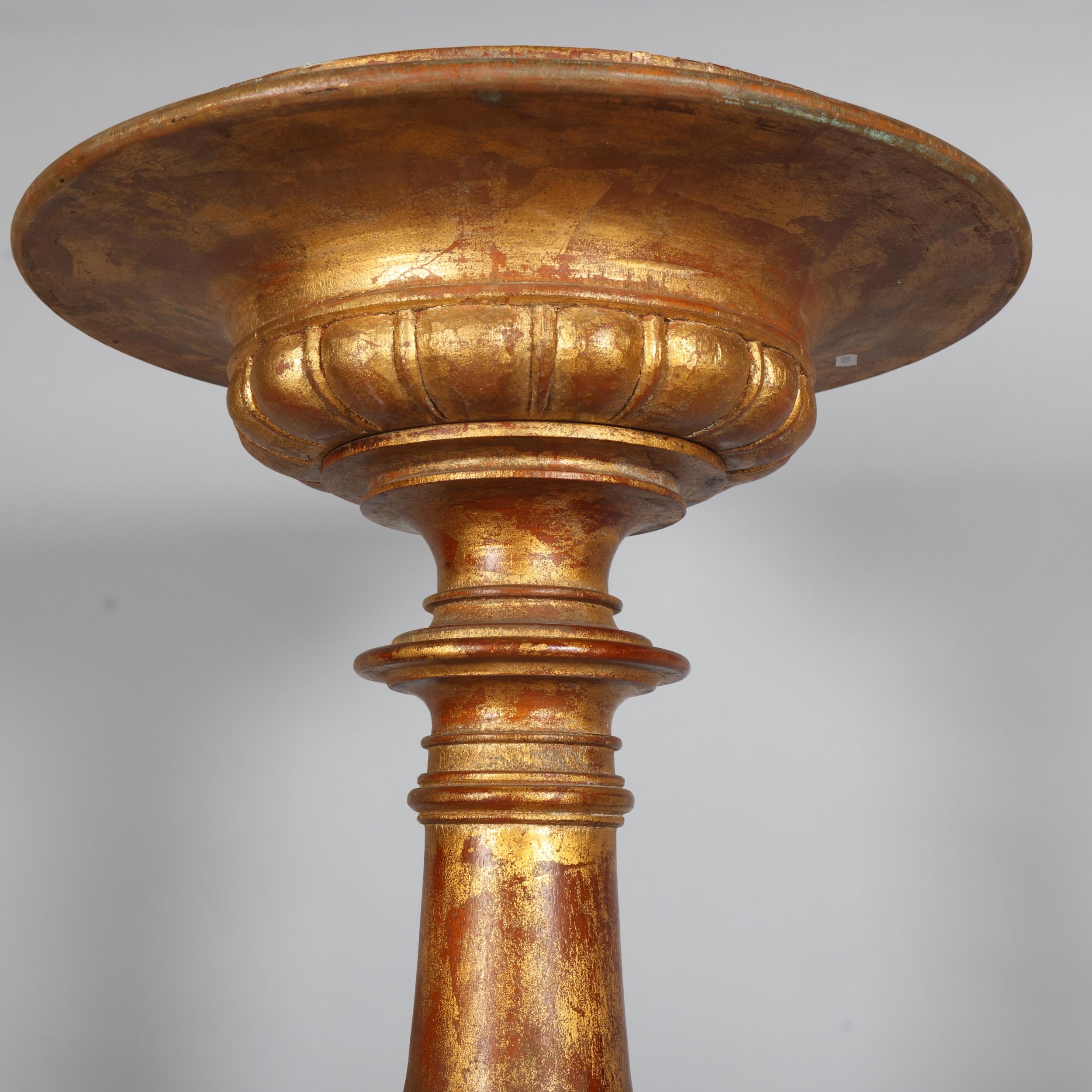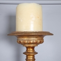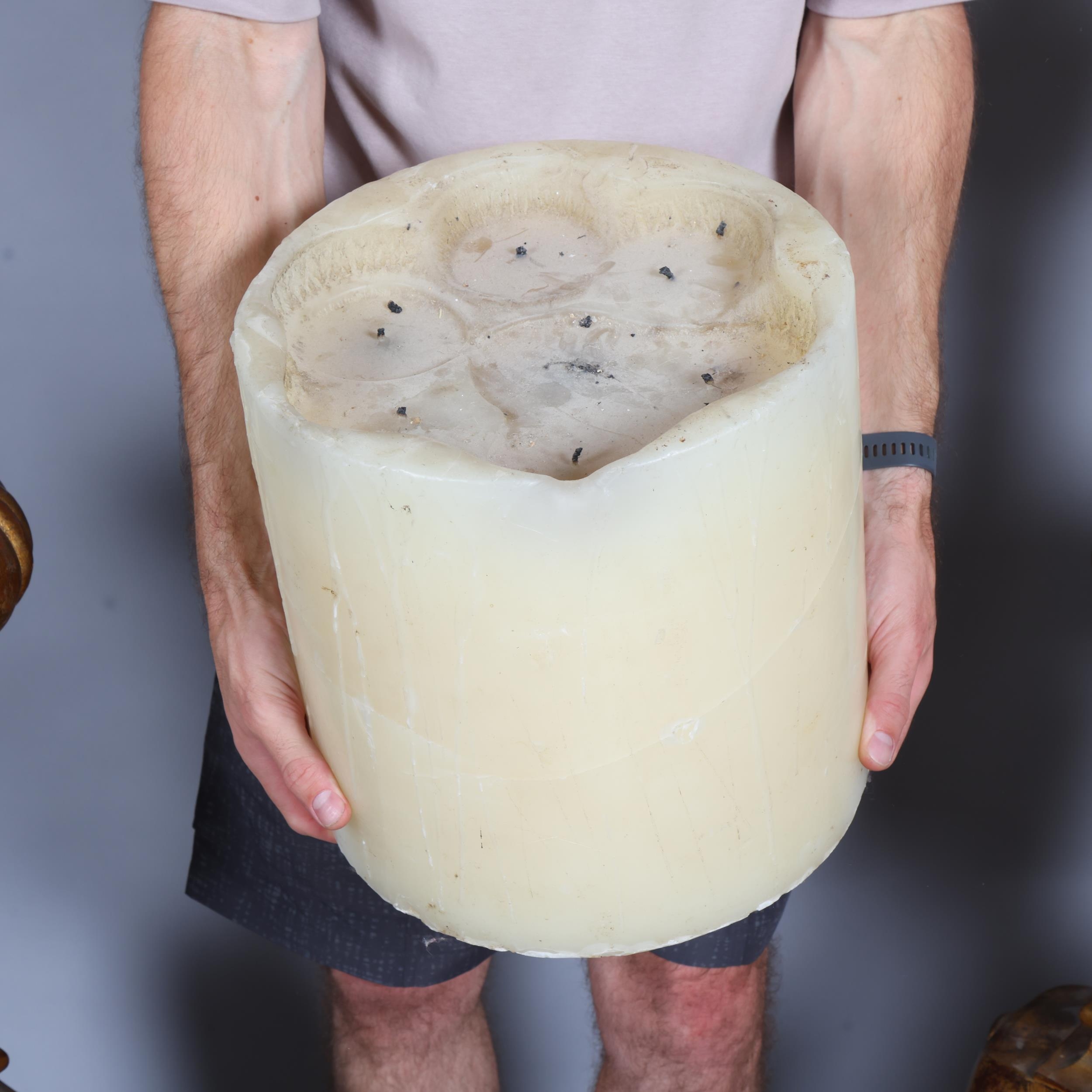 A massive pair of Christopher Guy Lumiere floor-standing candlesticks, in renaissance gold leaf finish, current UK RRP £4,180 per stand, diameter (widest point) 69cm, height 170cm, together with a pair of Christopher Guy candles, current RRP approx £500 per candle, diameter 30cm, height 31cm, overall height including candles 200cm