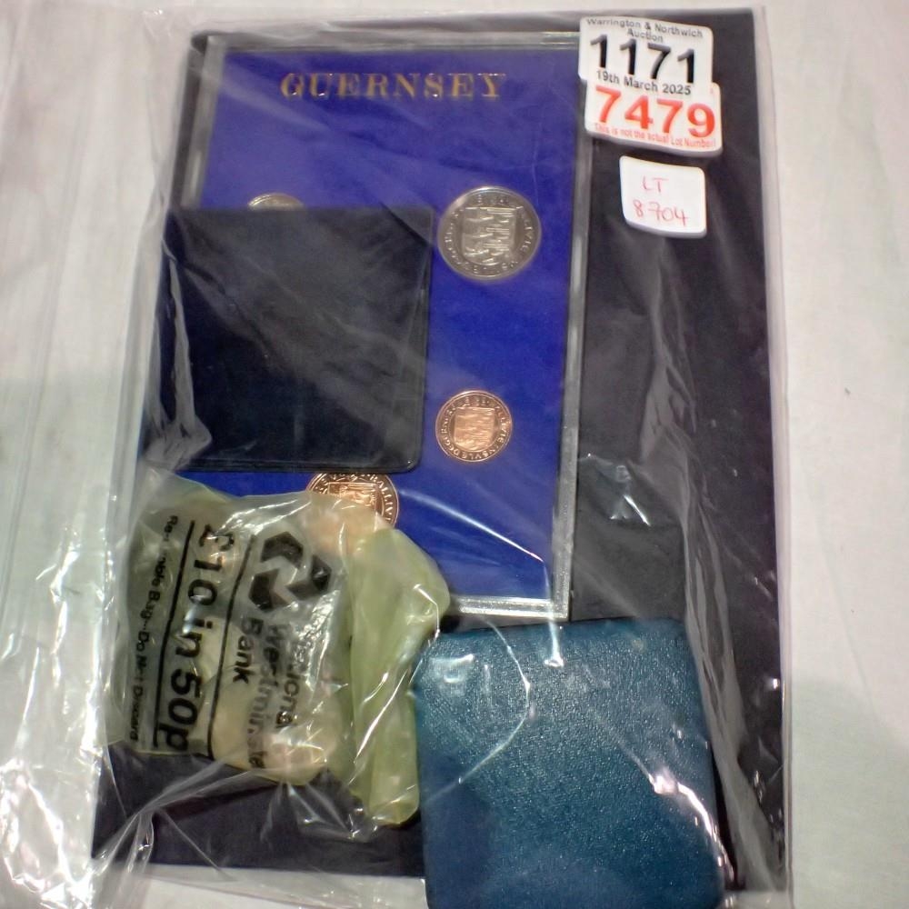 Guernsey 1981 proof set of coins, with further commemoratives and world coins. UK P&P Group 1 (£16+VAT for the first lot and £2+VAT for subsequent lots)