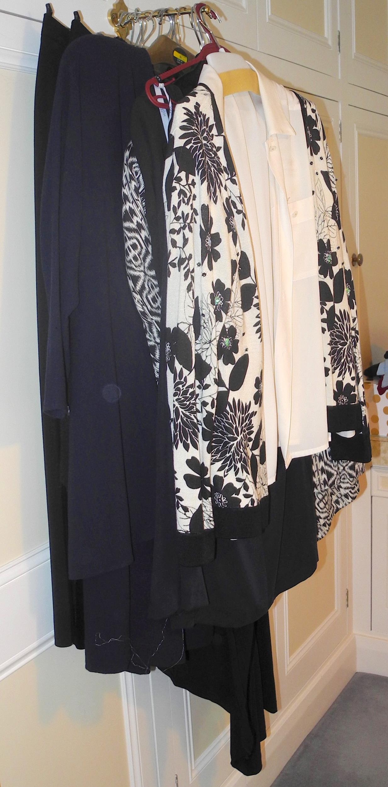 Cache Dore skirt, size 16; various smart black and navy trousers, skirtds and tops, Anise, Gina Bacconi,. Lima, Ischiko