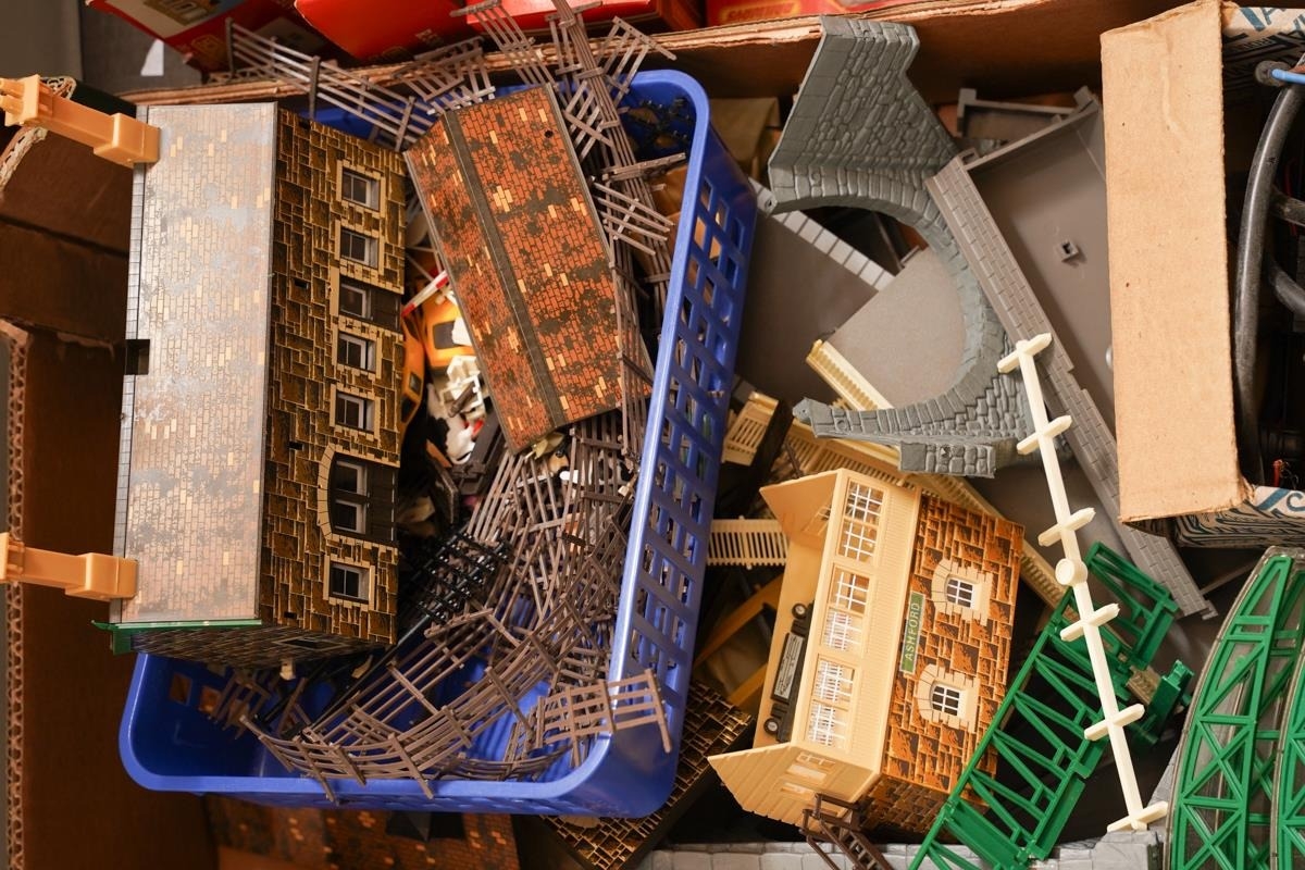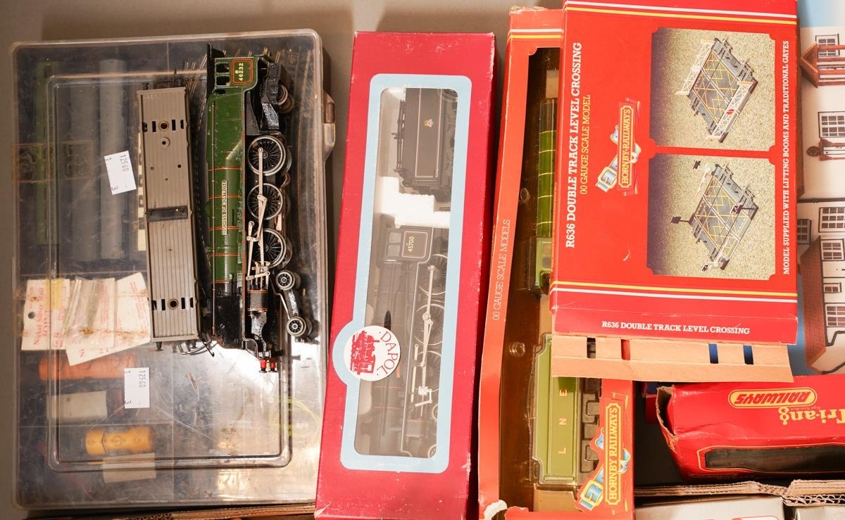 Three boxes of OO gauge railwayana, mostly Triang, including a boxed R.859 LNER 4-4-0 "The Fitzwilliam", a Mainline a Jubilee Class 6P 4-6-0 45700 'Amethyst' in BR Lined Black, model no. 936153 in incorrect box, a Hornby Dublo 'Duchess of Montrose' No.46232, both in B.R. lined green livery, poor condition, together with a quantity of rolling stock, accessories an track, both boxed and loose, together with a palstic case of N gauge railwayan incluing Atlas (3 boxes)