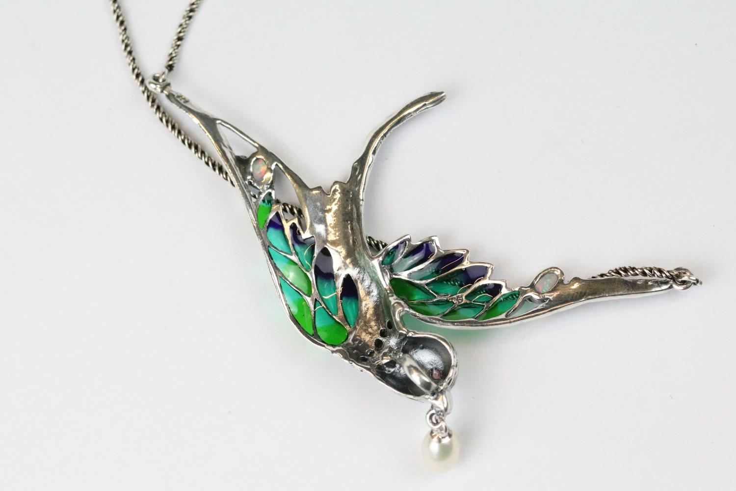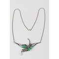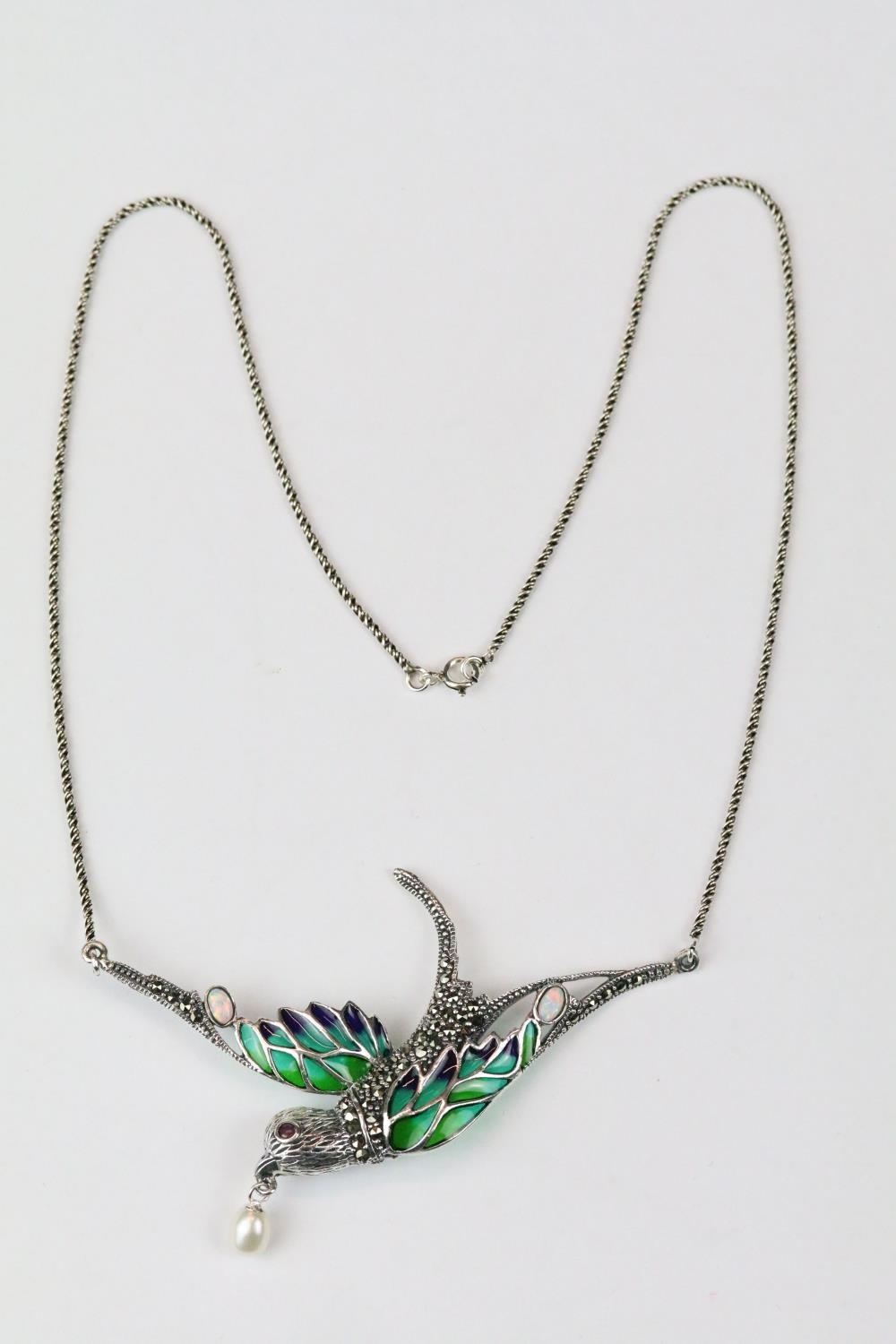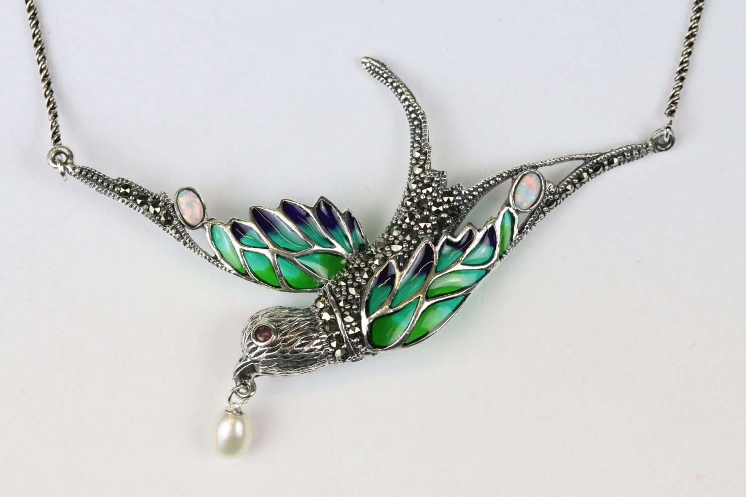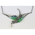 Silver marcastie and plique a jour necklace with opal babachons