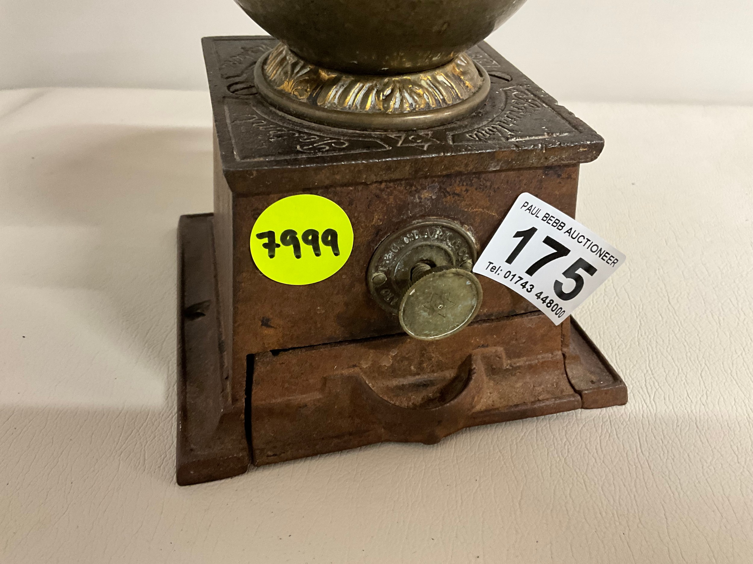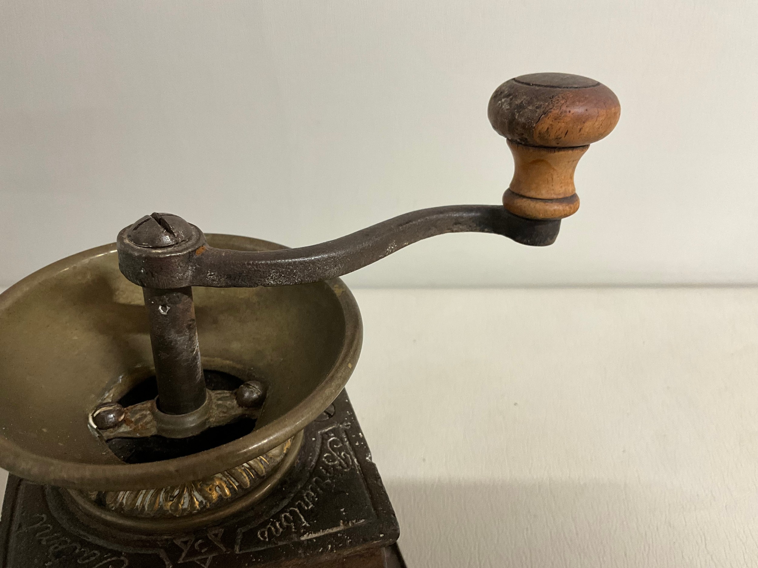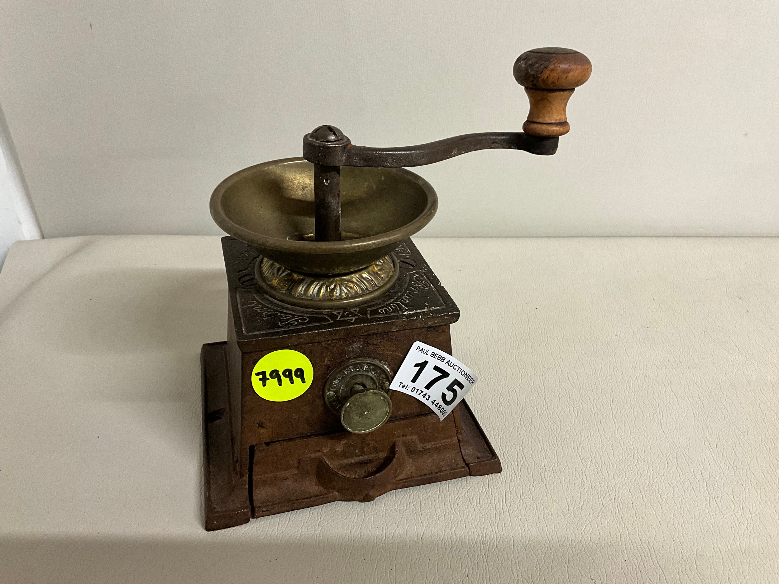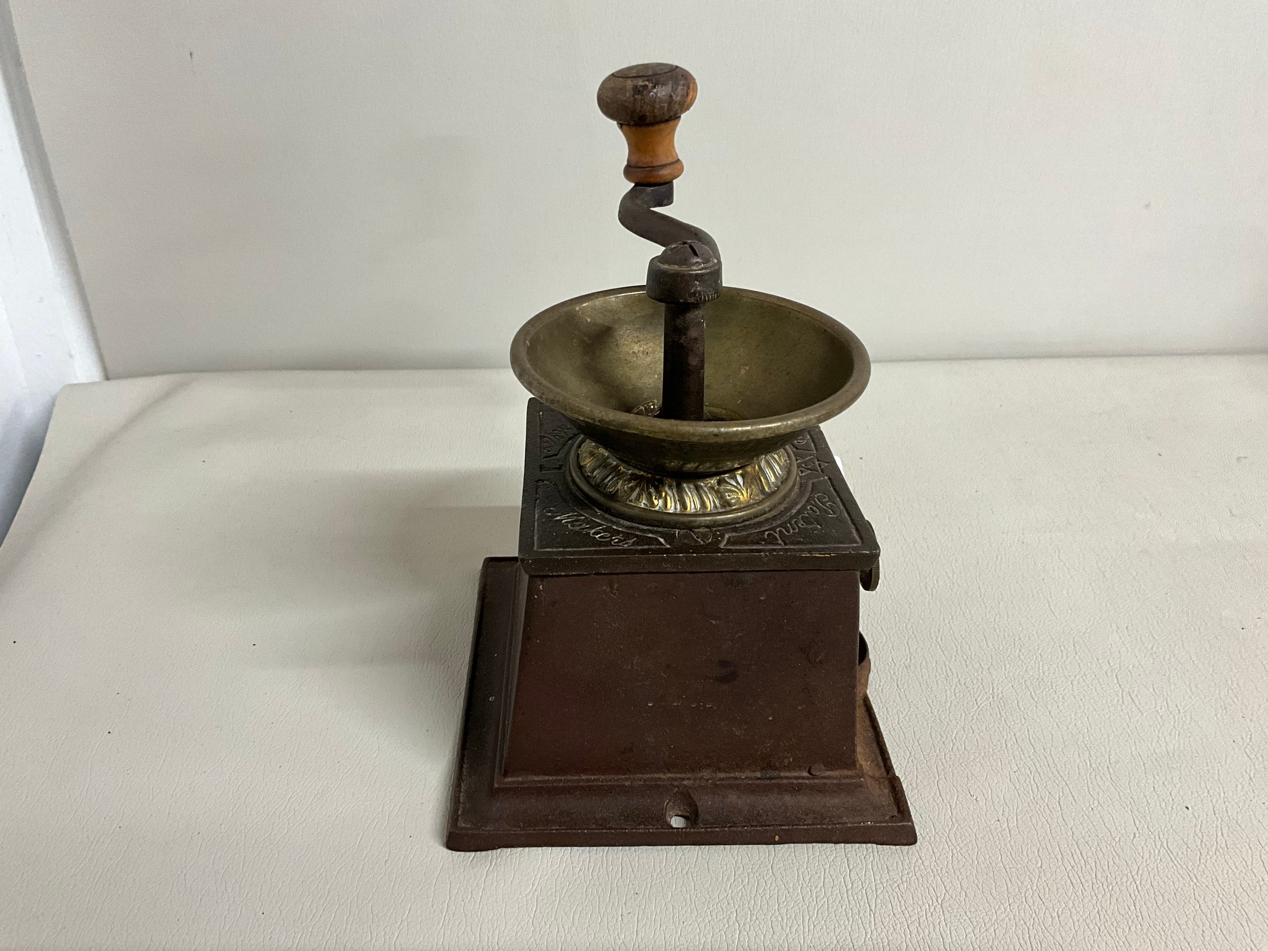 VICTORIAN CAST IRON COFFEE GRINDER COMPLETE WITH DRAWER