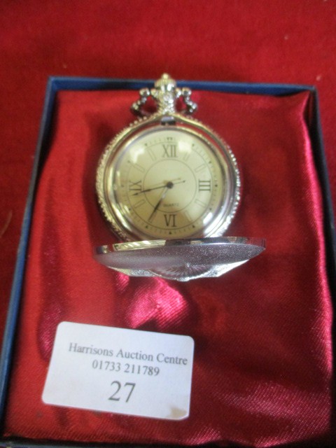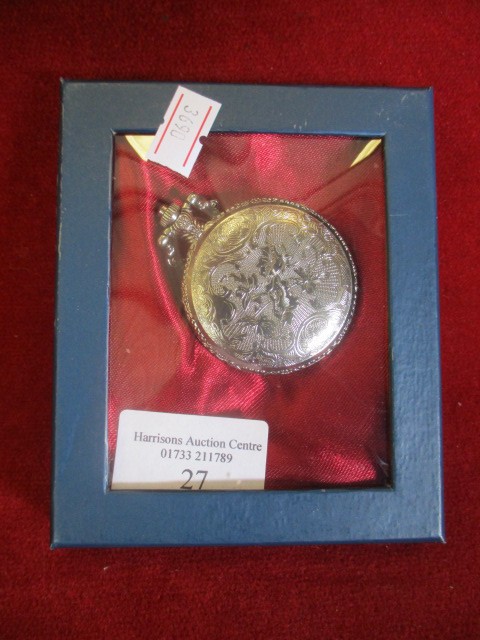 QUARTZ SILVER METAL ORNANTE STYLE POCKET WATCH IN GIFT BOX