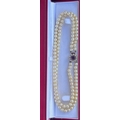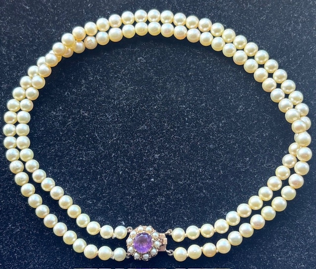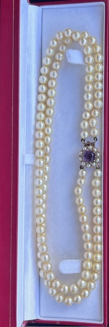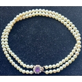 9ct Gold,Genuine Pearl and Amethyst necklace, Victorian style, Length 15in