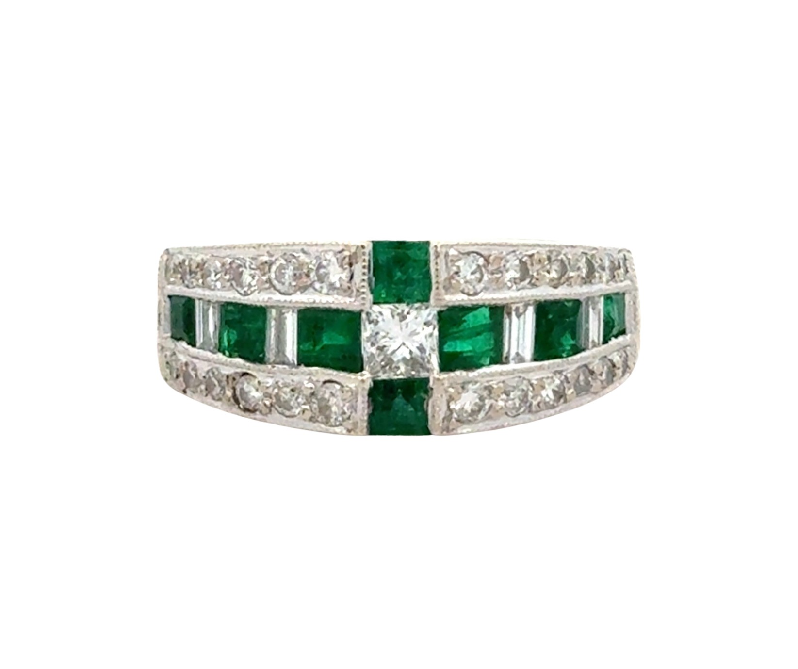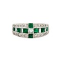 Emerald & Diamond Ring. 18ct white gold emerald and diamond ring. Weighing 6.10g. Size N. Measuring 7.40mm wide.