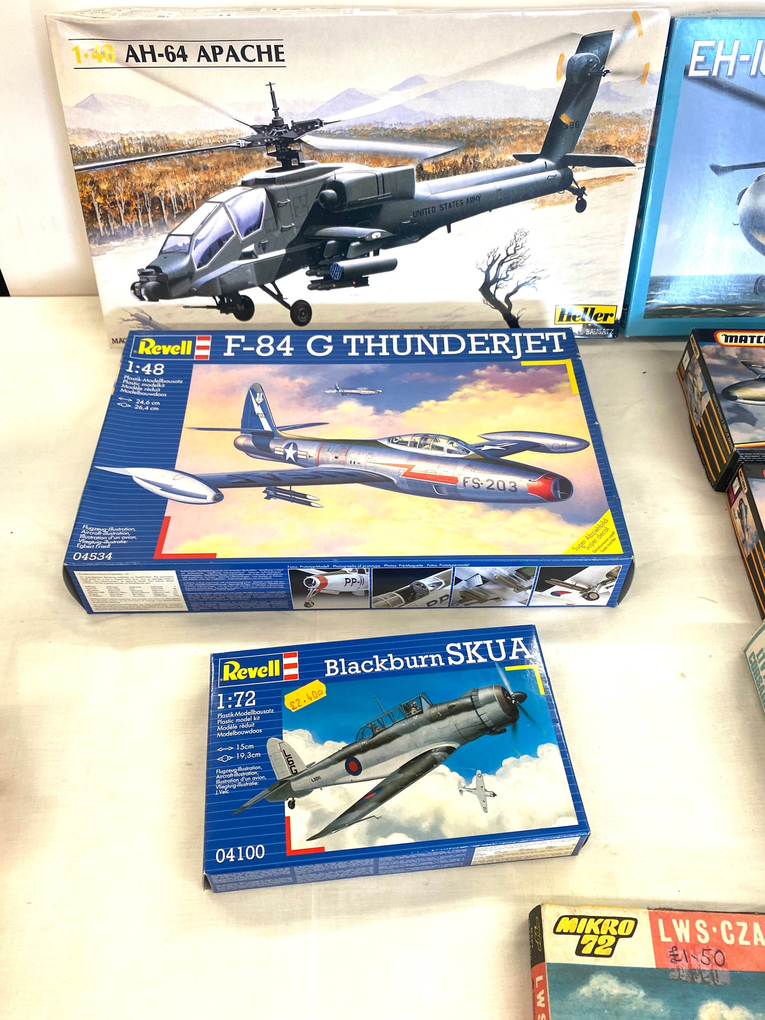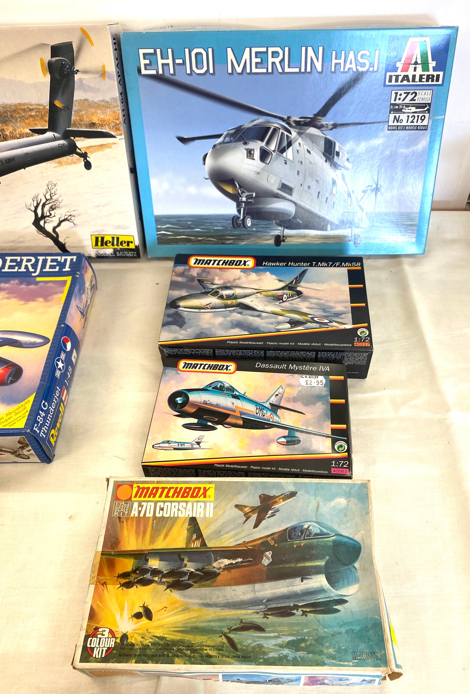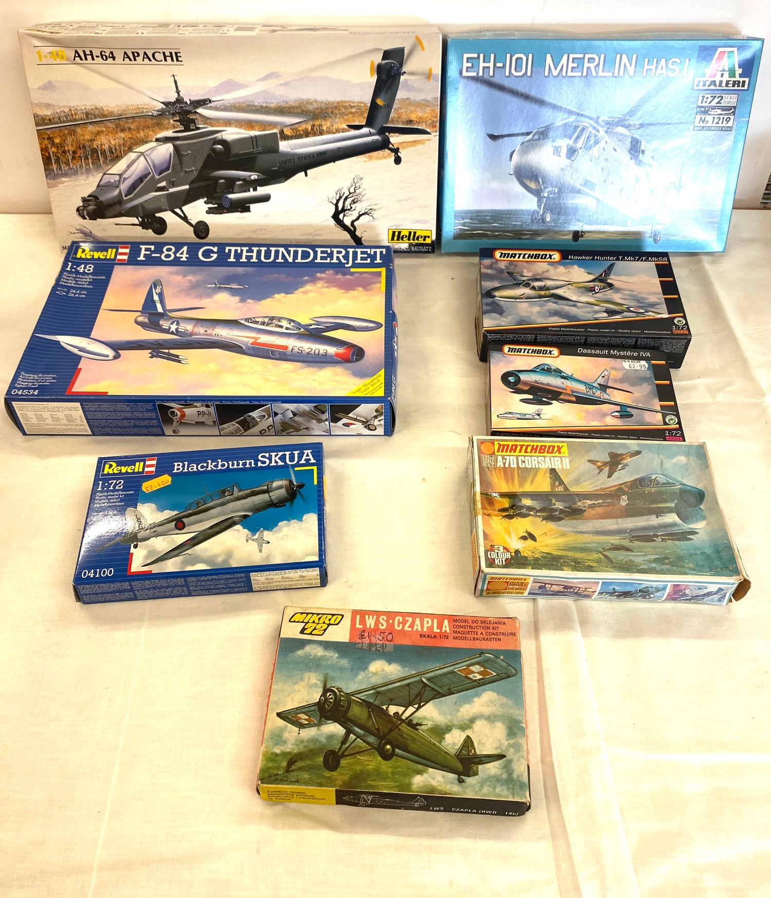 Selection of 8 boxed craft models to include, Revell F-8 G Thunder Jet, EH-101 Merlin Has.I no 1219, Mikro 72, Match box A-7D Corsair II, Heller AH-64