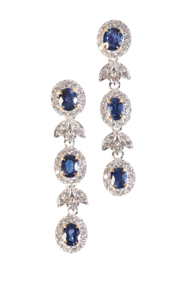 A PAIR OF SAPPHIRE AND DIAMOND DROP EARRINGS