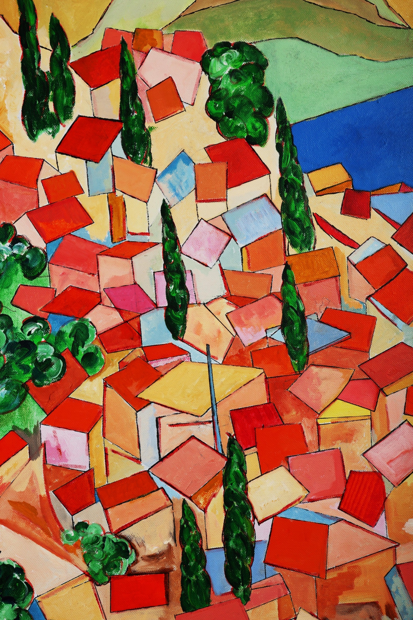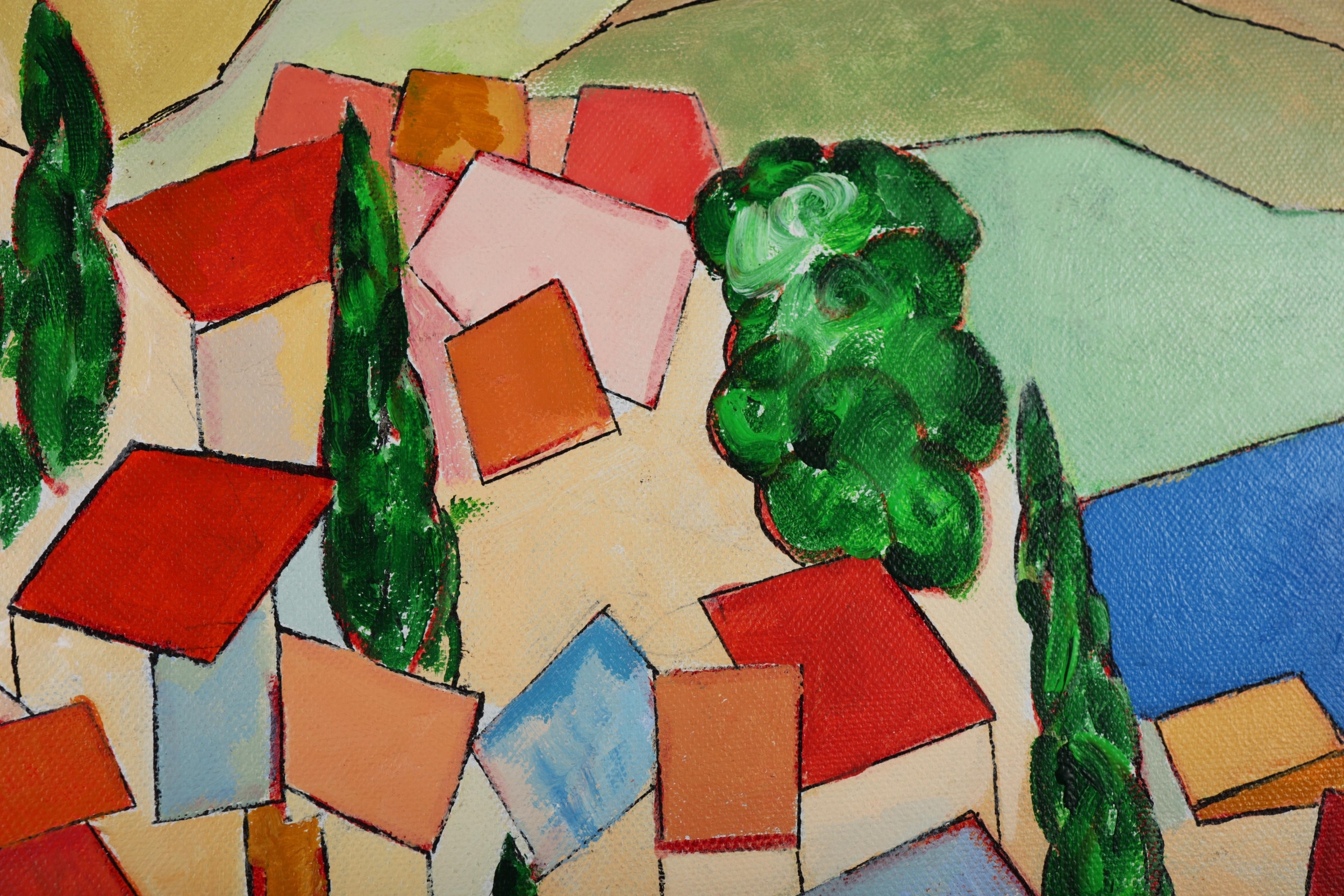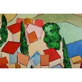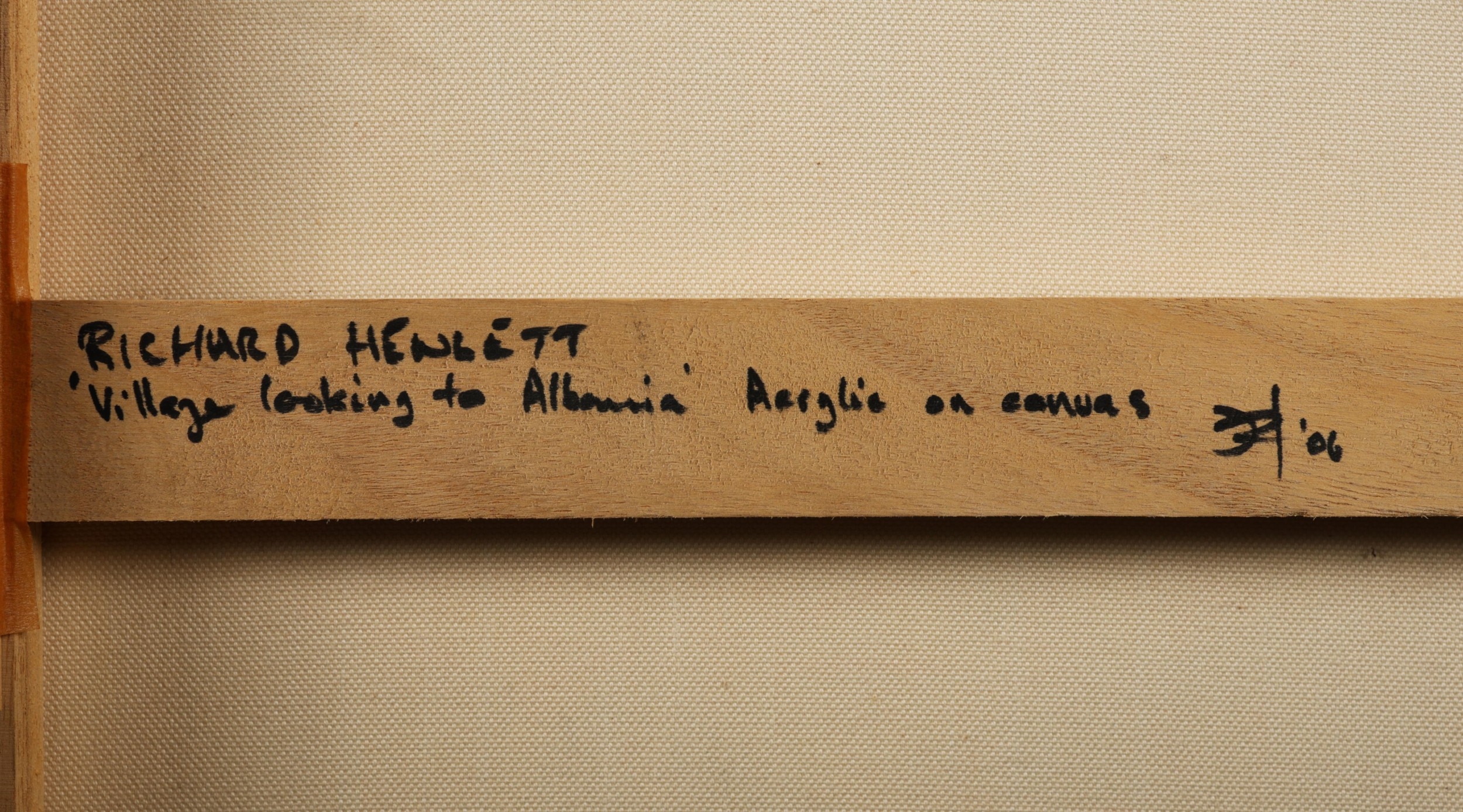 RICHARD HEWLETT. VILLAGE LOOKING TO ALBANIA. oil on canvas, 63cm x 53cm, framed.
