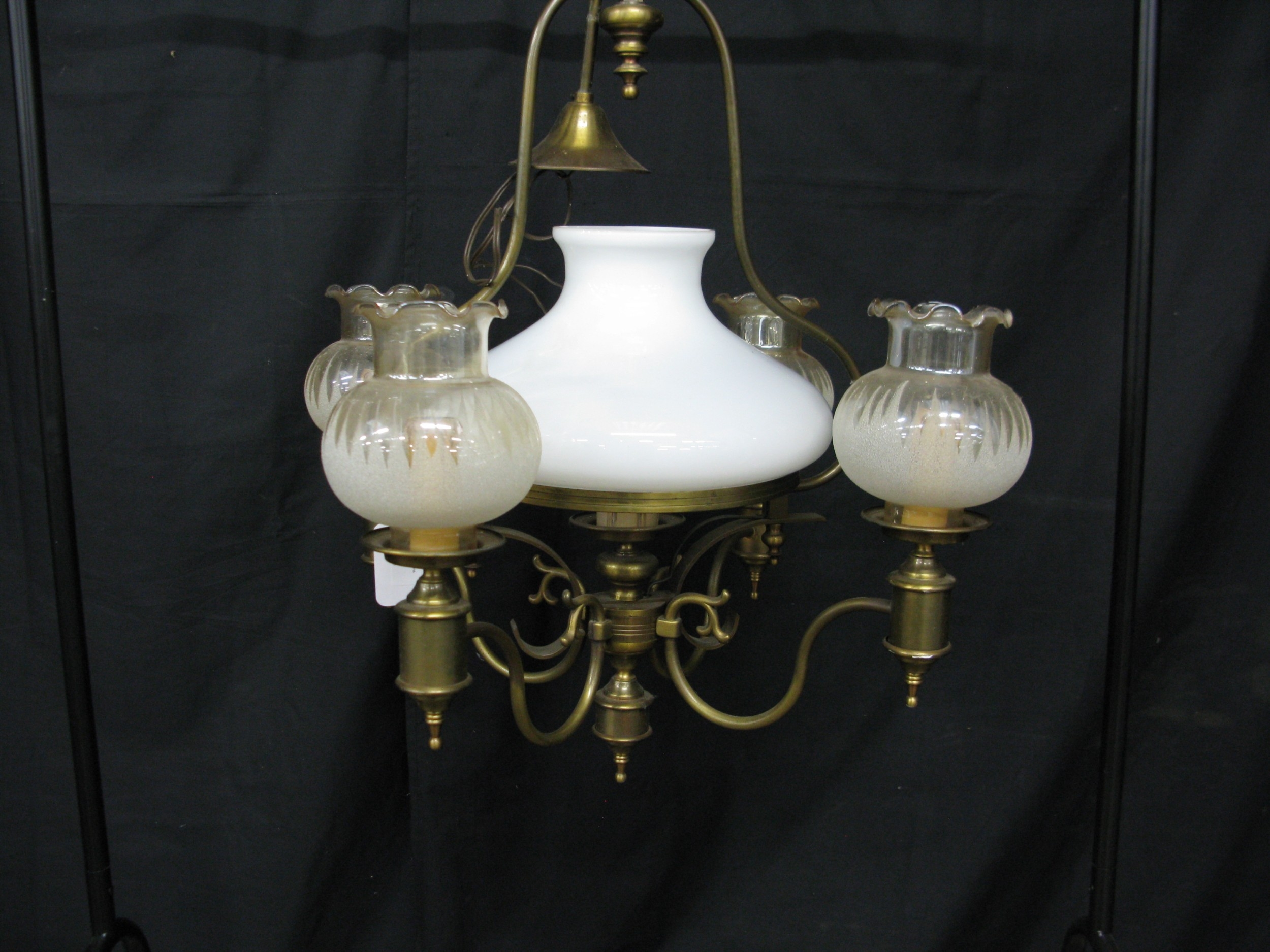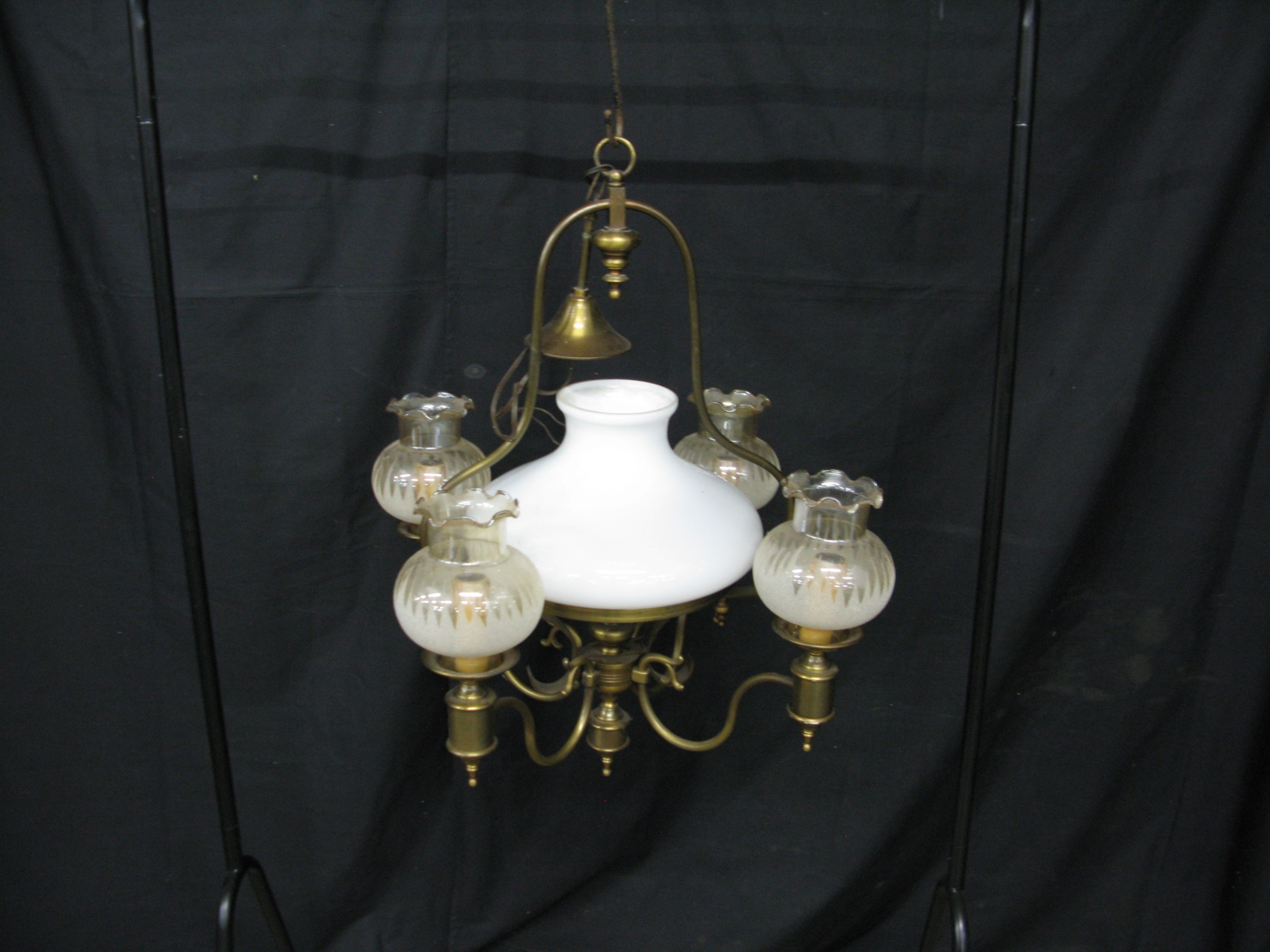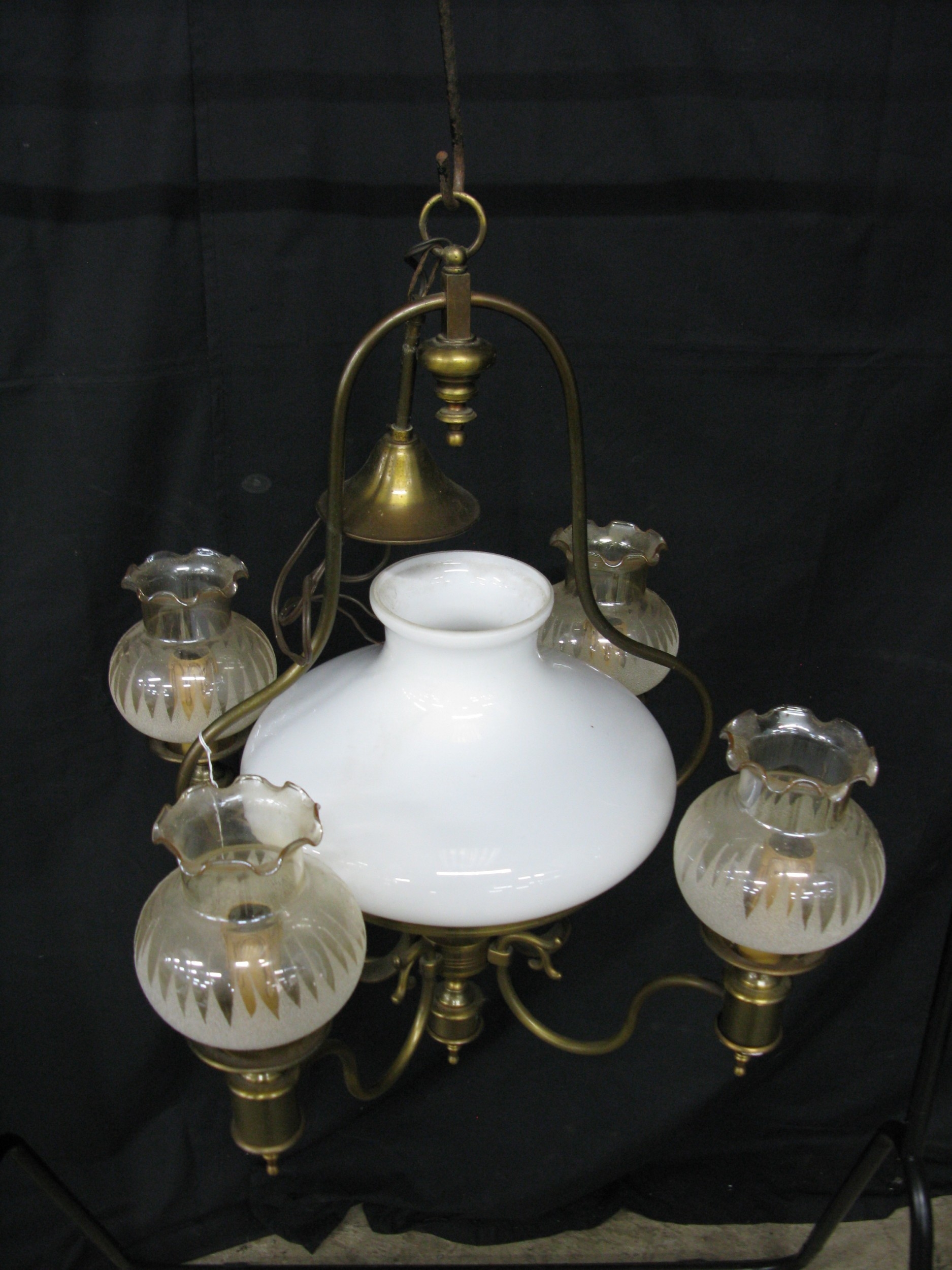 Four branch brass hanging light - 82cm tall