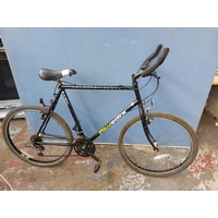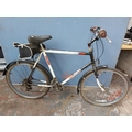 A black and white Raleigh Mustang gents touring bike with rear carrier and 15 speed gear system