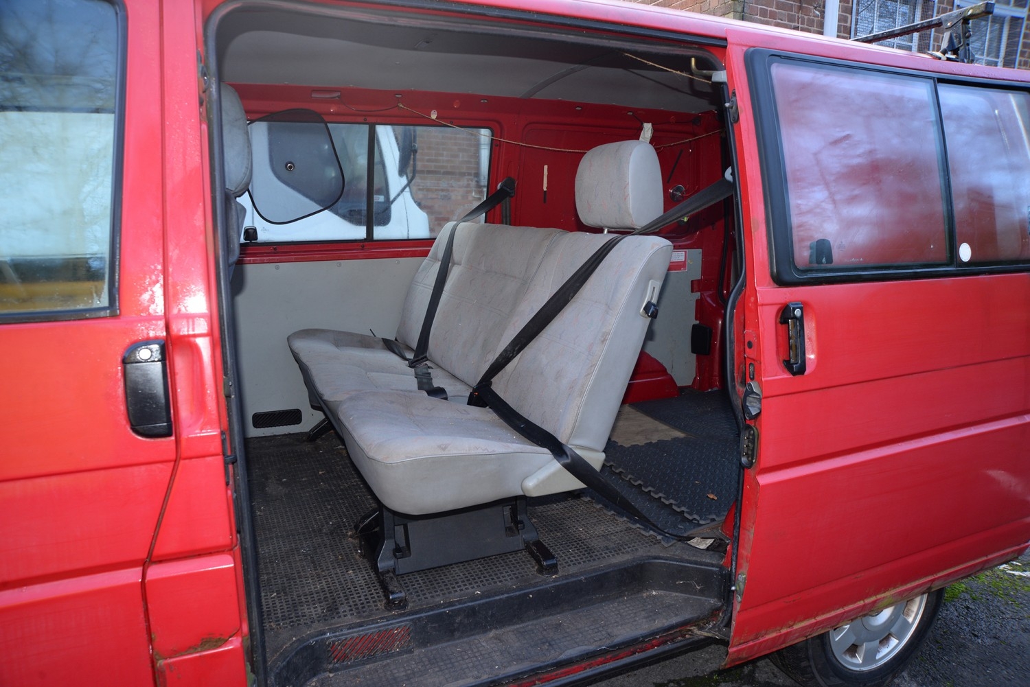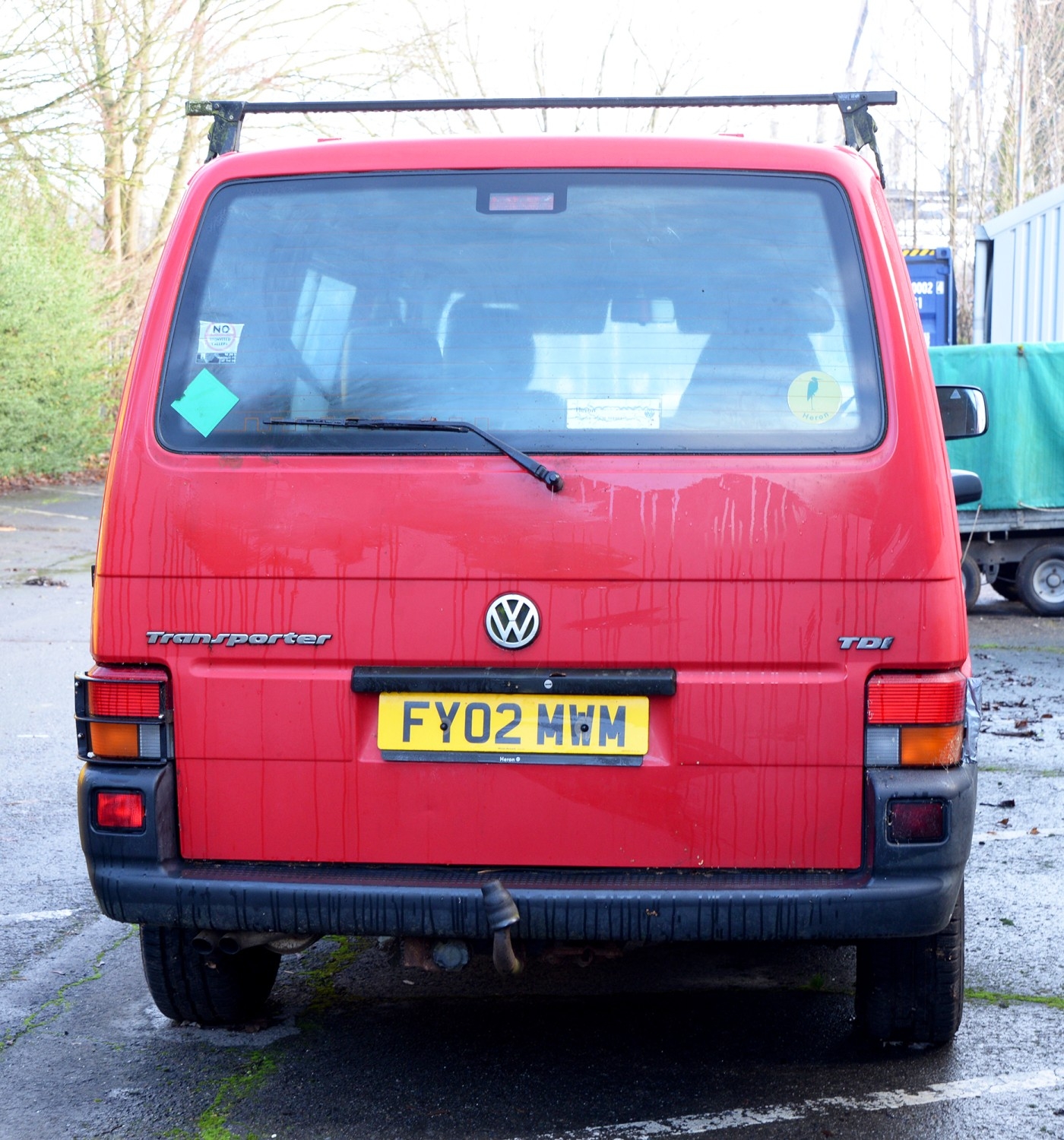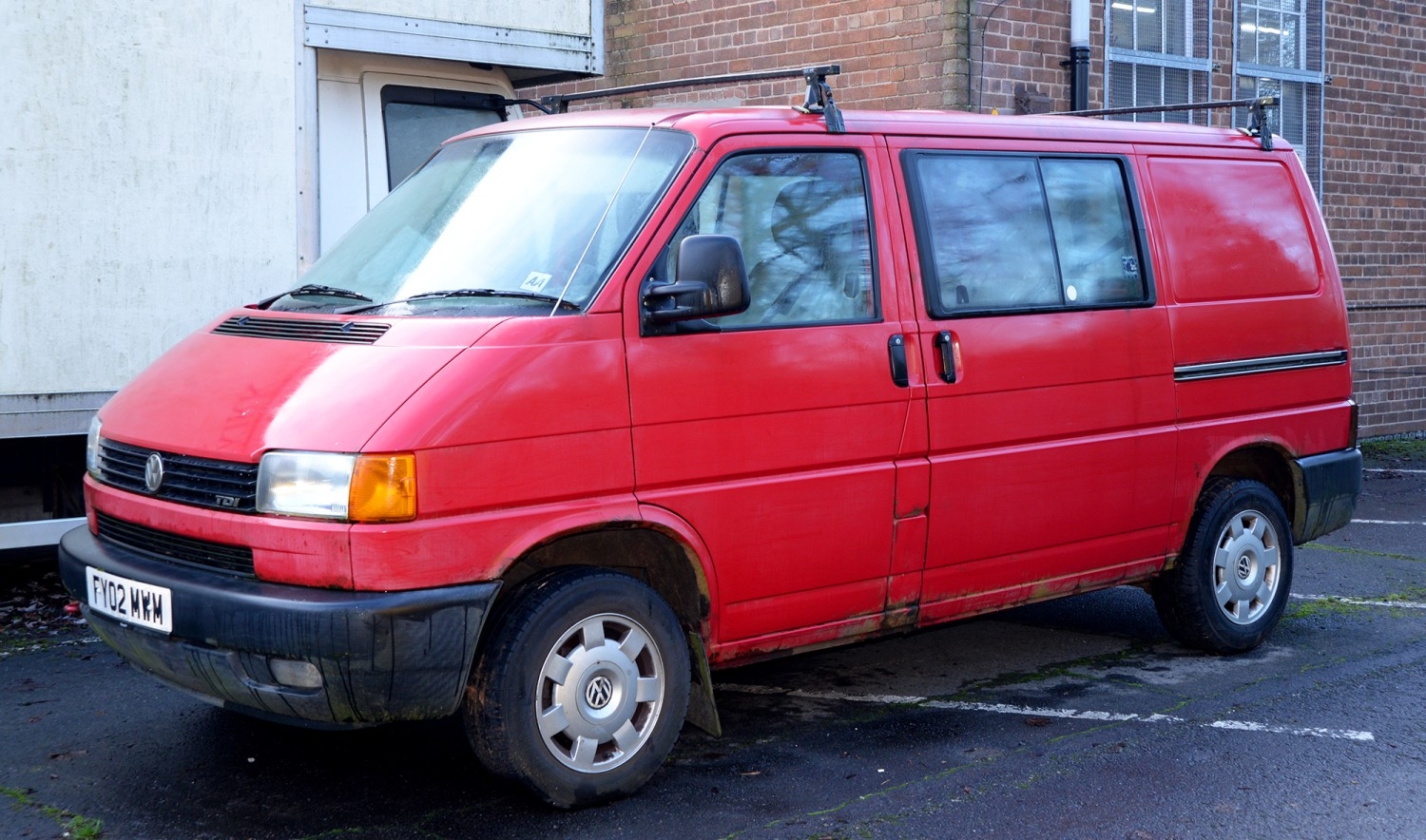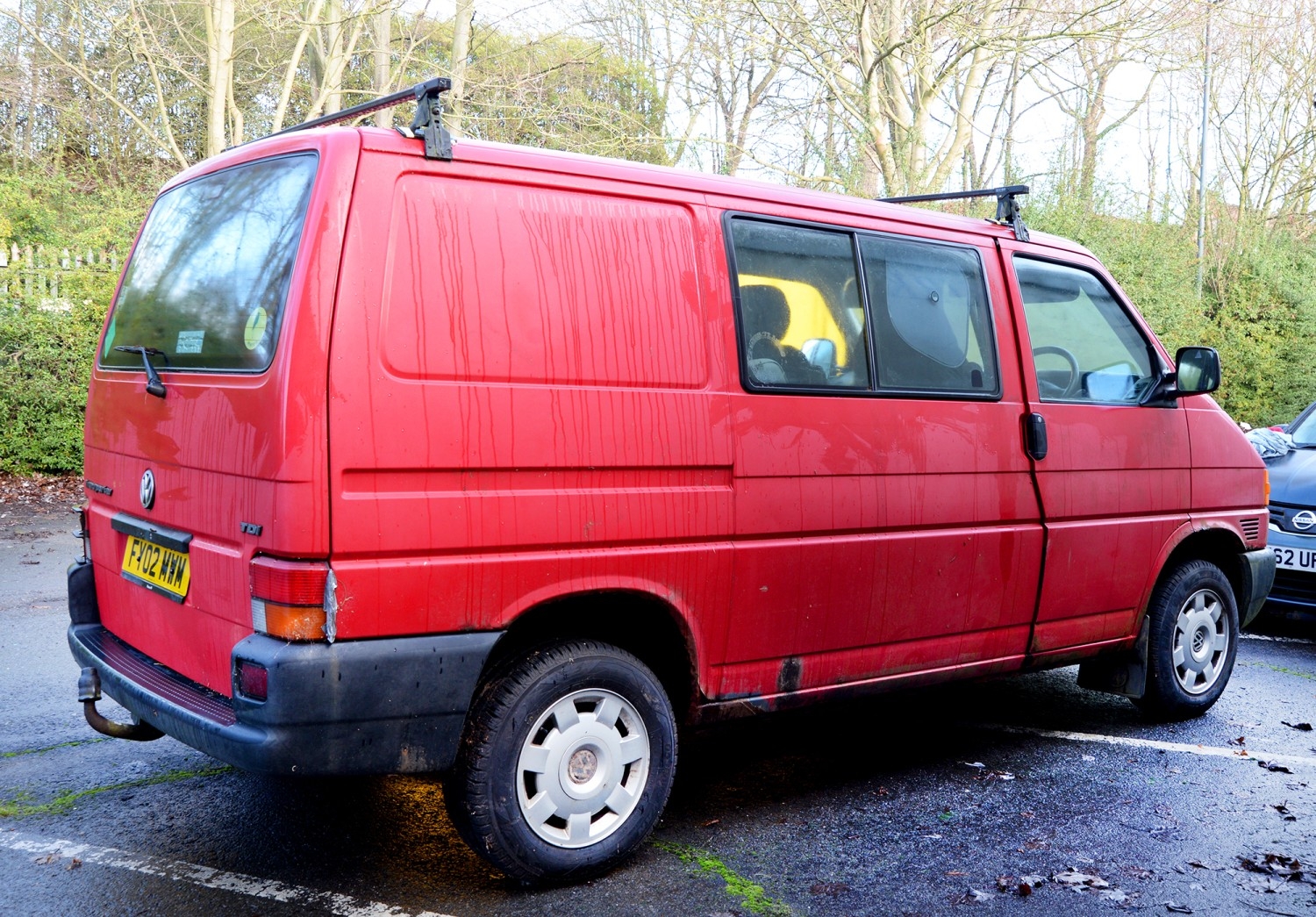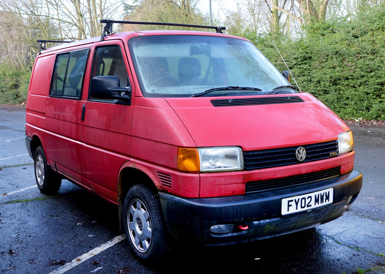 Motor Car. Volkswagen Transporter TDI SWB van/side windows LGV, 2461 cc diesel engine, manual transmission, in red with one key, registration number FY02 MWM, 235,330 miles, V5 certificate, first registered in March 2002, MOT expires on 9 May 2026