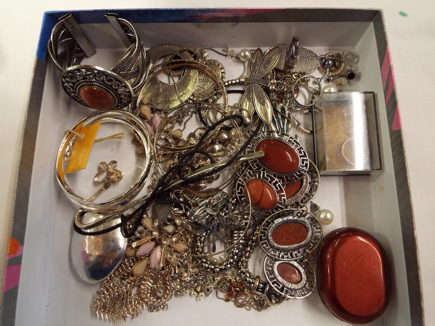 A mixed selection of white metal costume jewellery to include cuff bangles, necklaces, earrings etc