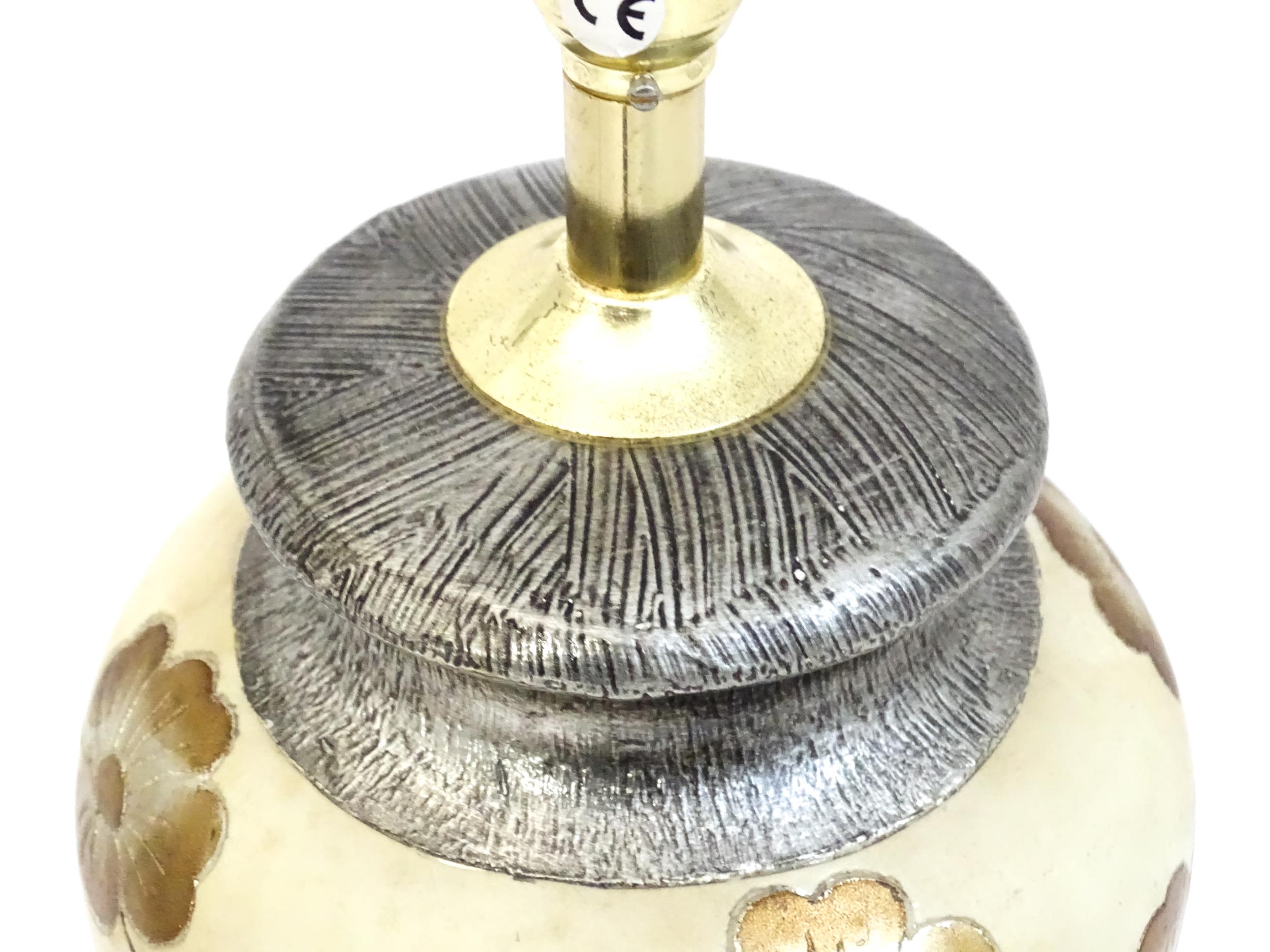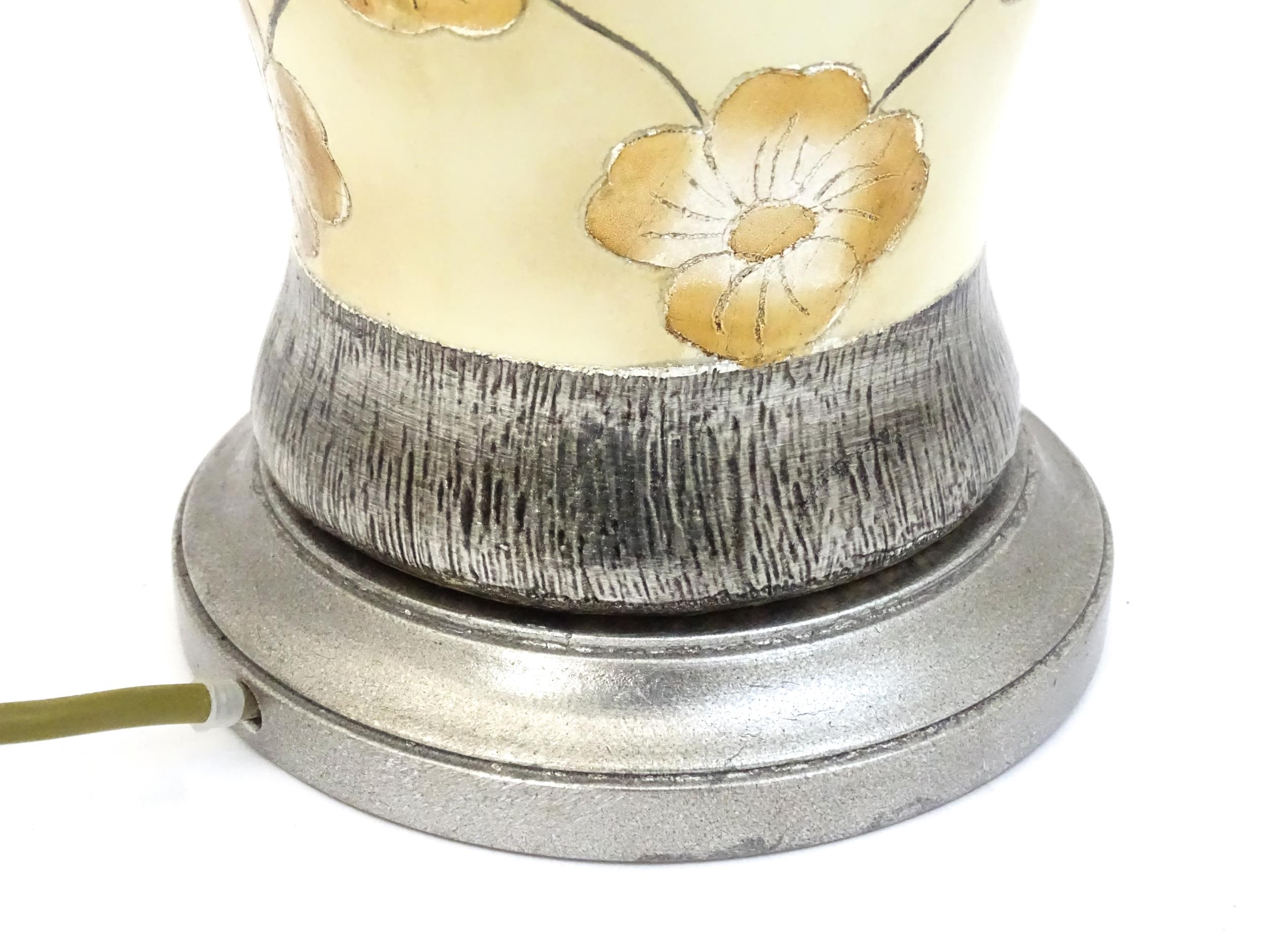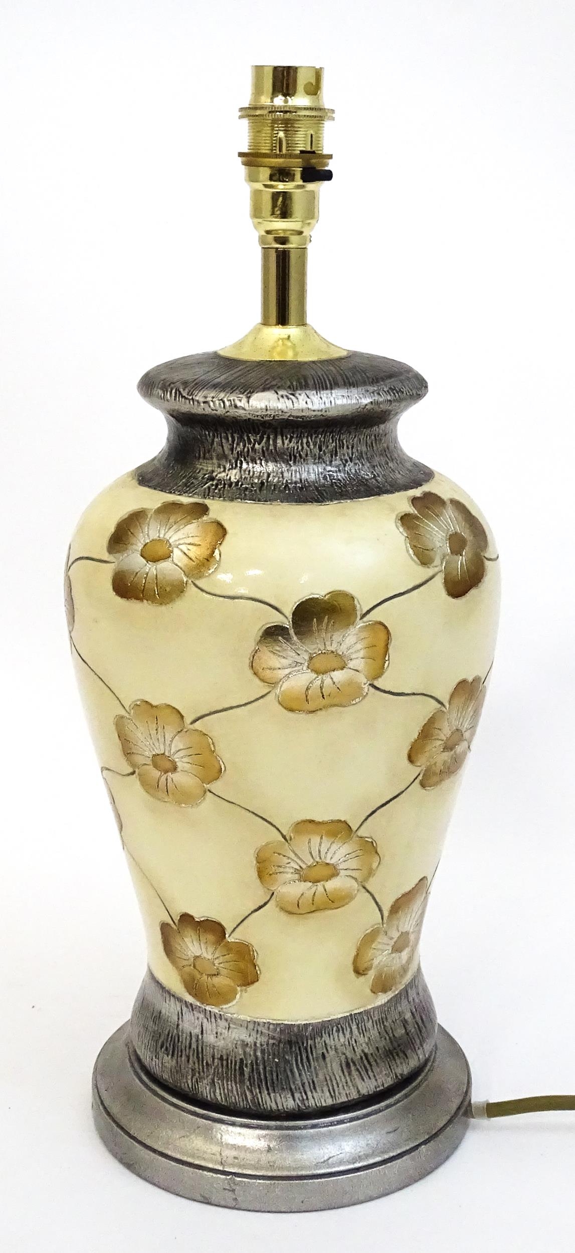 A late 20thC table lamp with floral decoration. Approx. 15 1/2" high