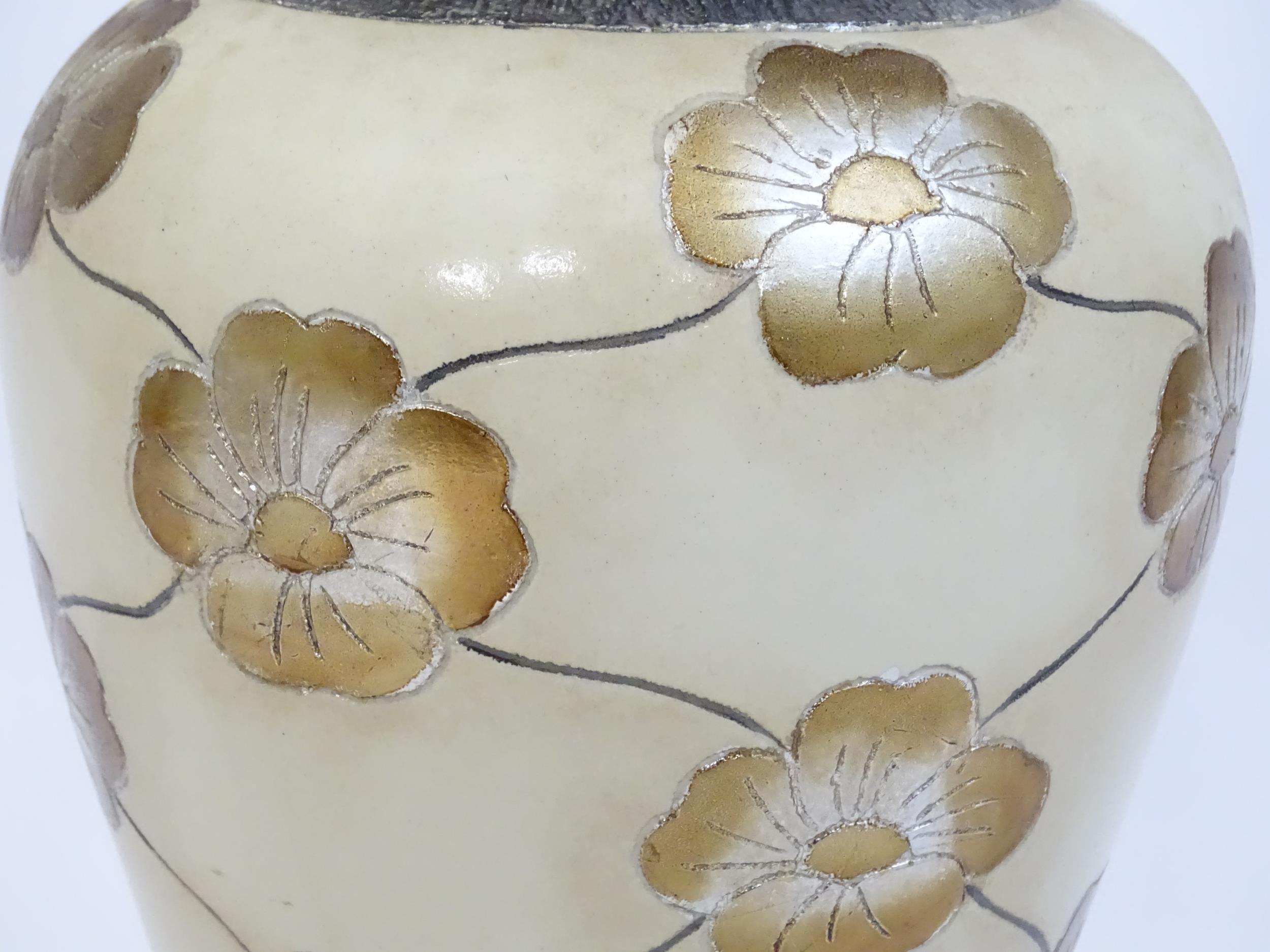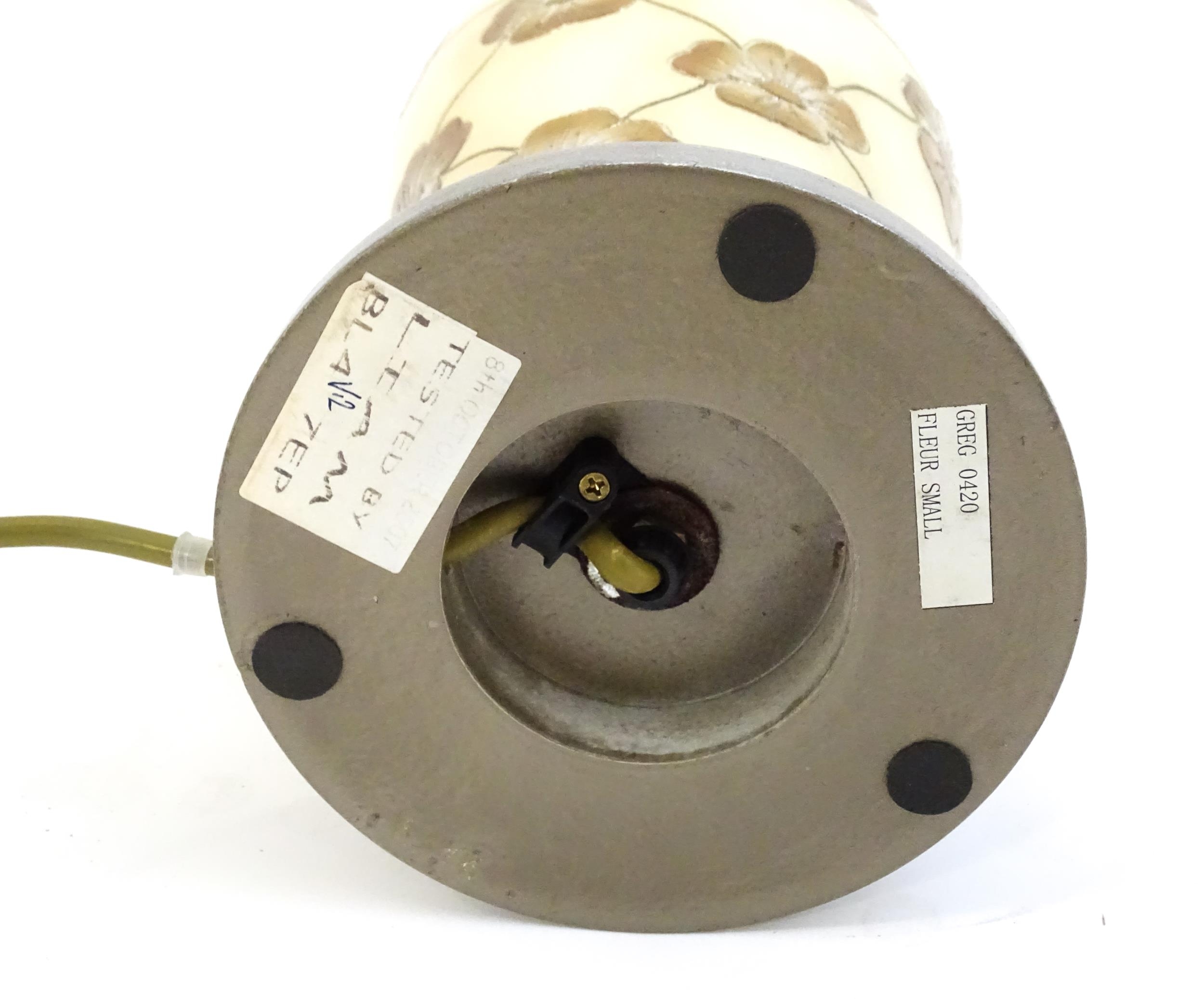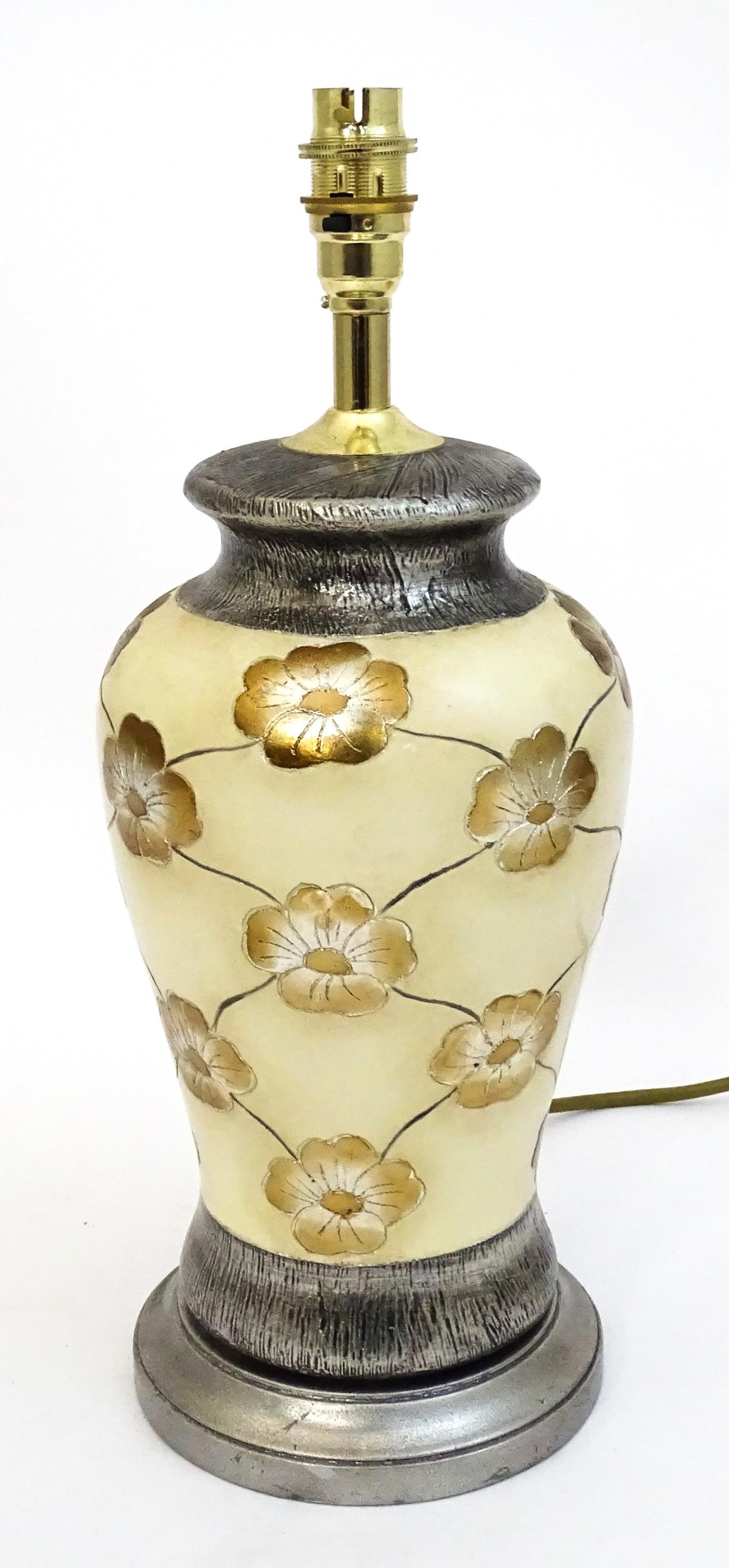 A late 20thC table lamp with floral decoration. Approx. 15 1/2" high