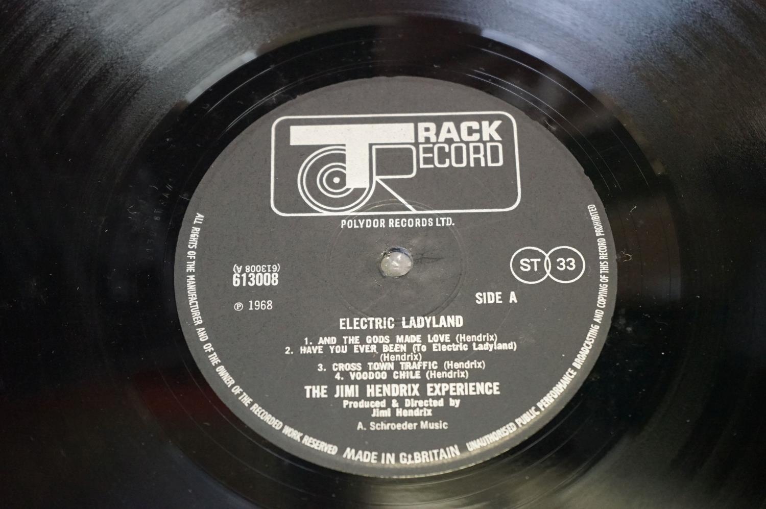 Vinyl - The Jimi Hendrix Experience Electric Ladyland - 2 different UK pressings to include original UK Stereo A1 / B1 / C1 / D 1 matrices on Track Records 613008 with white lettering, gatefold sleeve VG, Vinyl VG+ and EX-, and UK Polydor Records pressing 2310269, gatefold sleeve EX-, Vinyl EX and EX