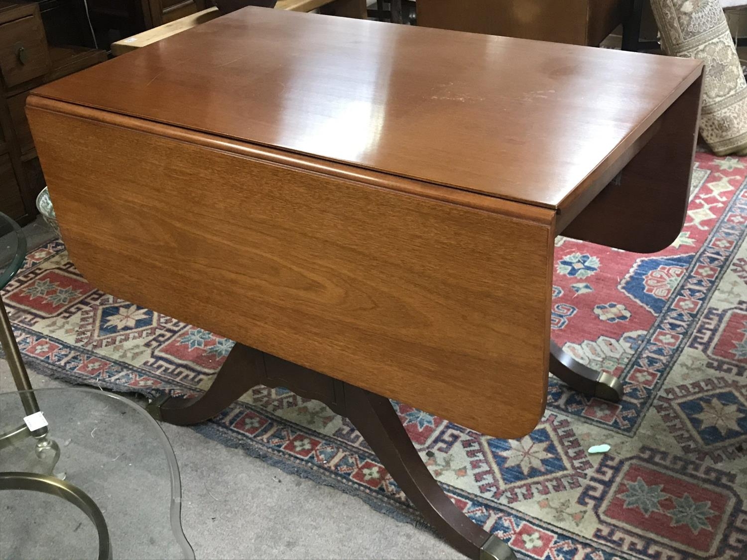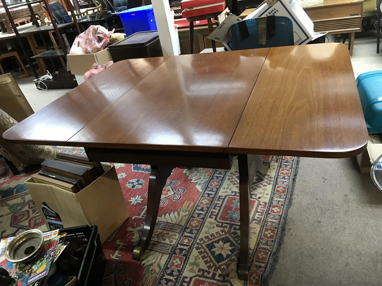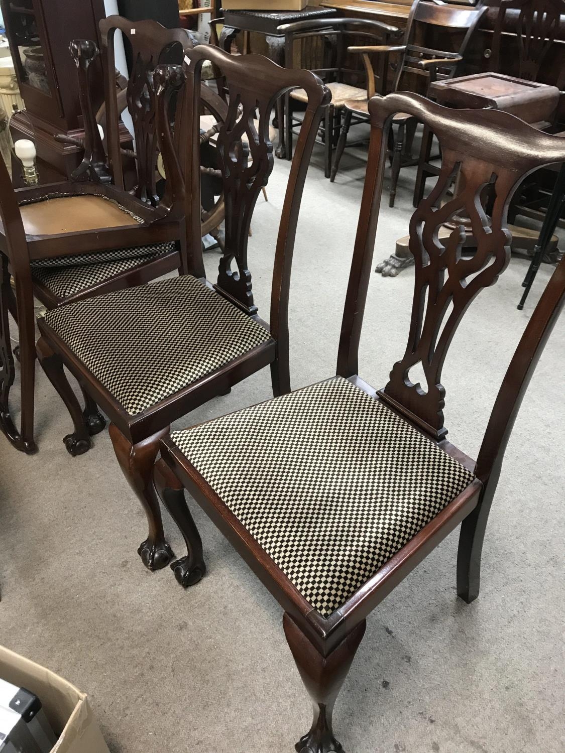 A George III style dining table with four chairs upholstered in black and white check. The approximate measurements when extended are 135cm x 101cm x 73cm - NO RESERVE