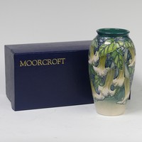 A Moorcroft Pottery ‘Blue Rhapsody’ pattern Vase, by Philip Gibson, dated 2001, for the ‘Moorcroft Collectors Club’, no. 570, impressed marks to base, signed ‘Philip Gibson’, boxed, 25.5cm high.