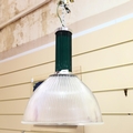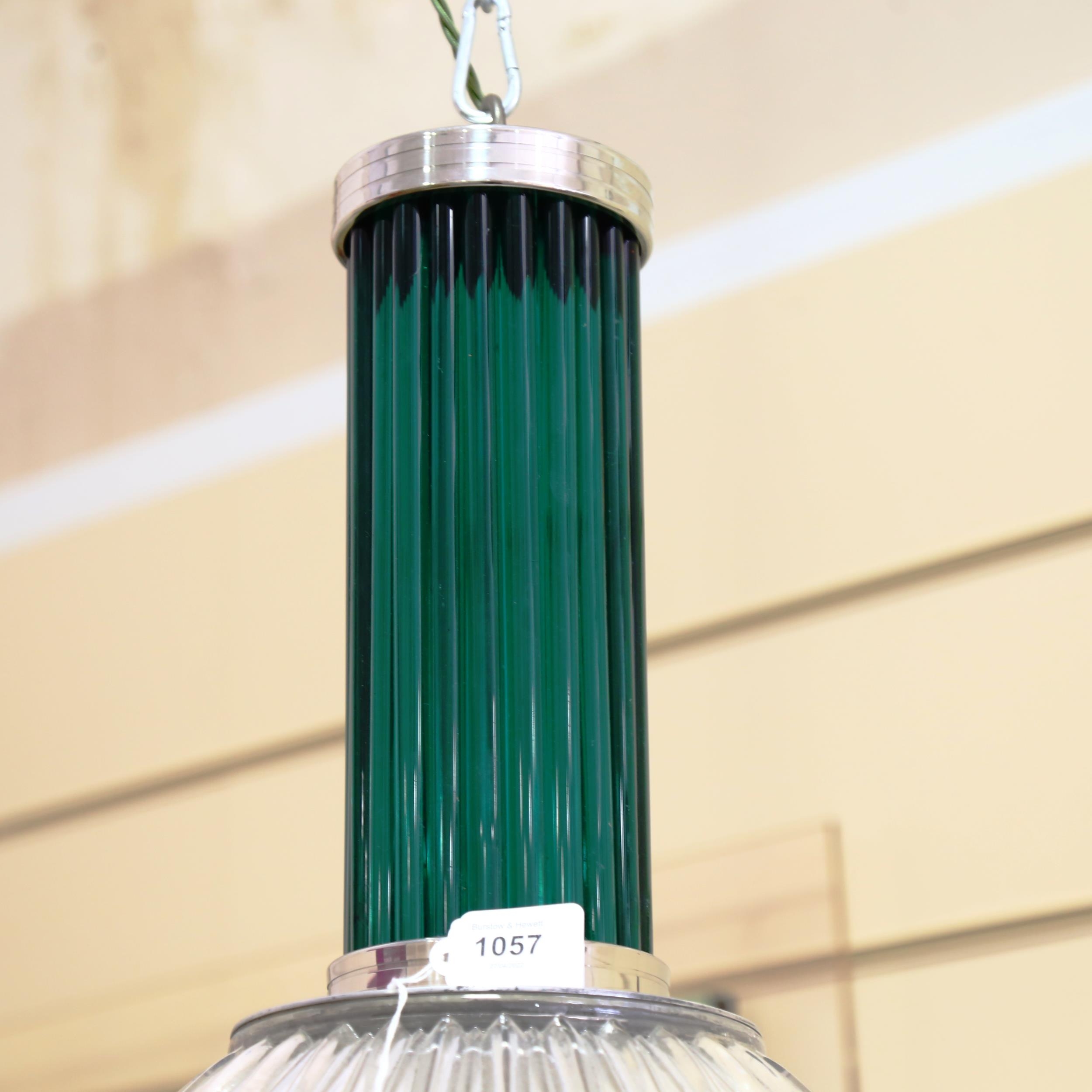 A Holophane pendant light fitting, with green glass upper part, height approx 60cm, diameter 46cm