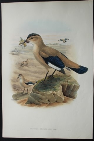 John Gould - Original lithograph of Mongolian Ground Jay 1849-83. This original lithograph of Henderson's Podoces aka Mongolian Ground Jay (Podoces hendersoni) is from John Gould's, Birds of Asia issued in 35 parts between 1849 and 1883, the last three being issued after Gould's death in 1881 by Bowdler-Sharpe.The print was drawn and lithographed by John Gould and W Hart.