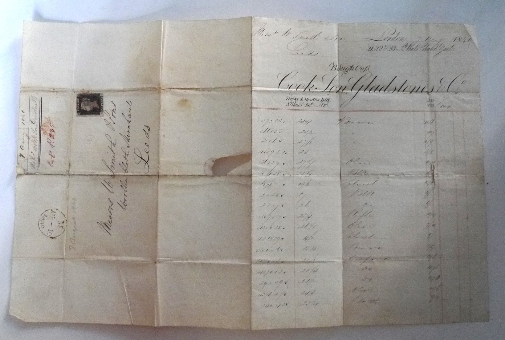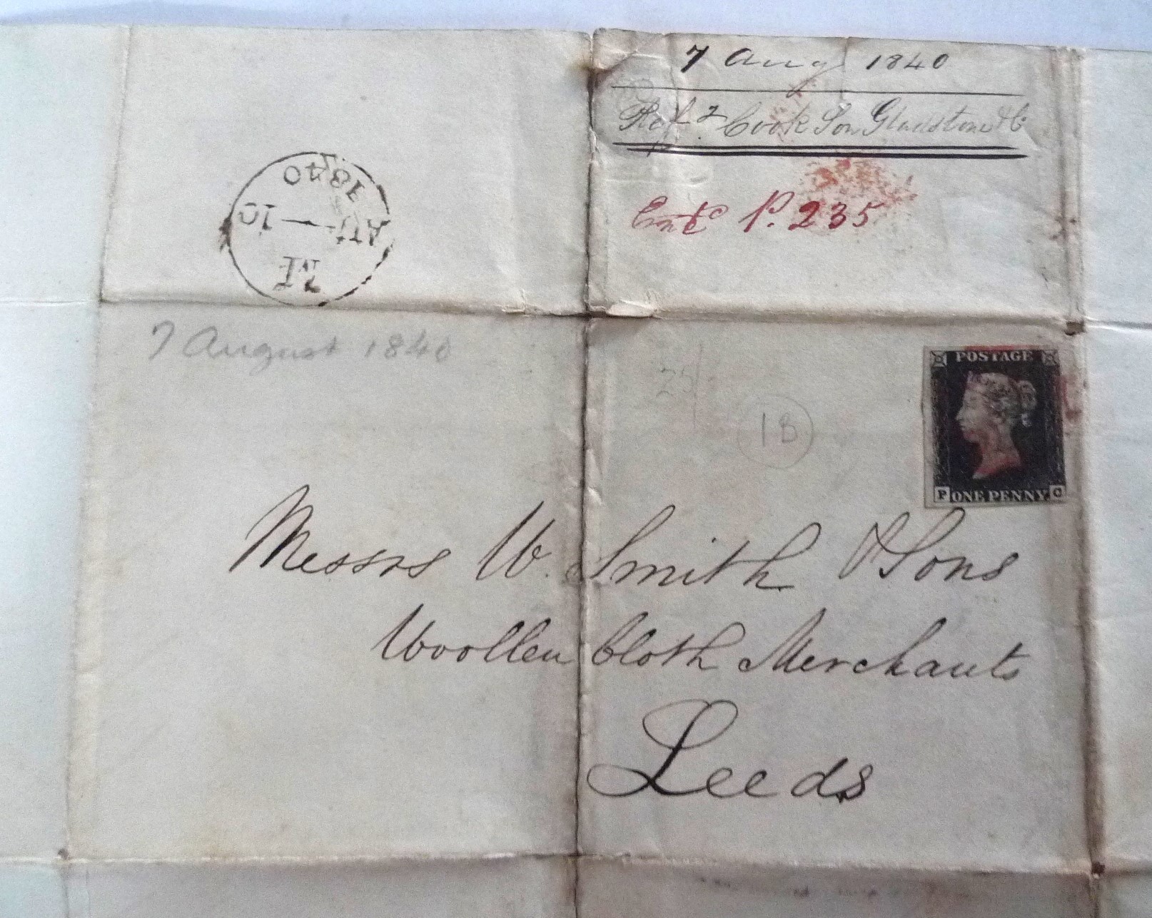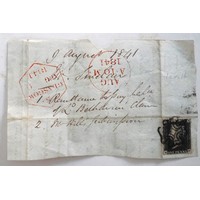 Penny Black cover. Dated August 10th 1840. Very light red Maltese cross cancellation.