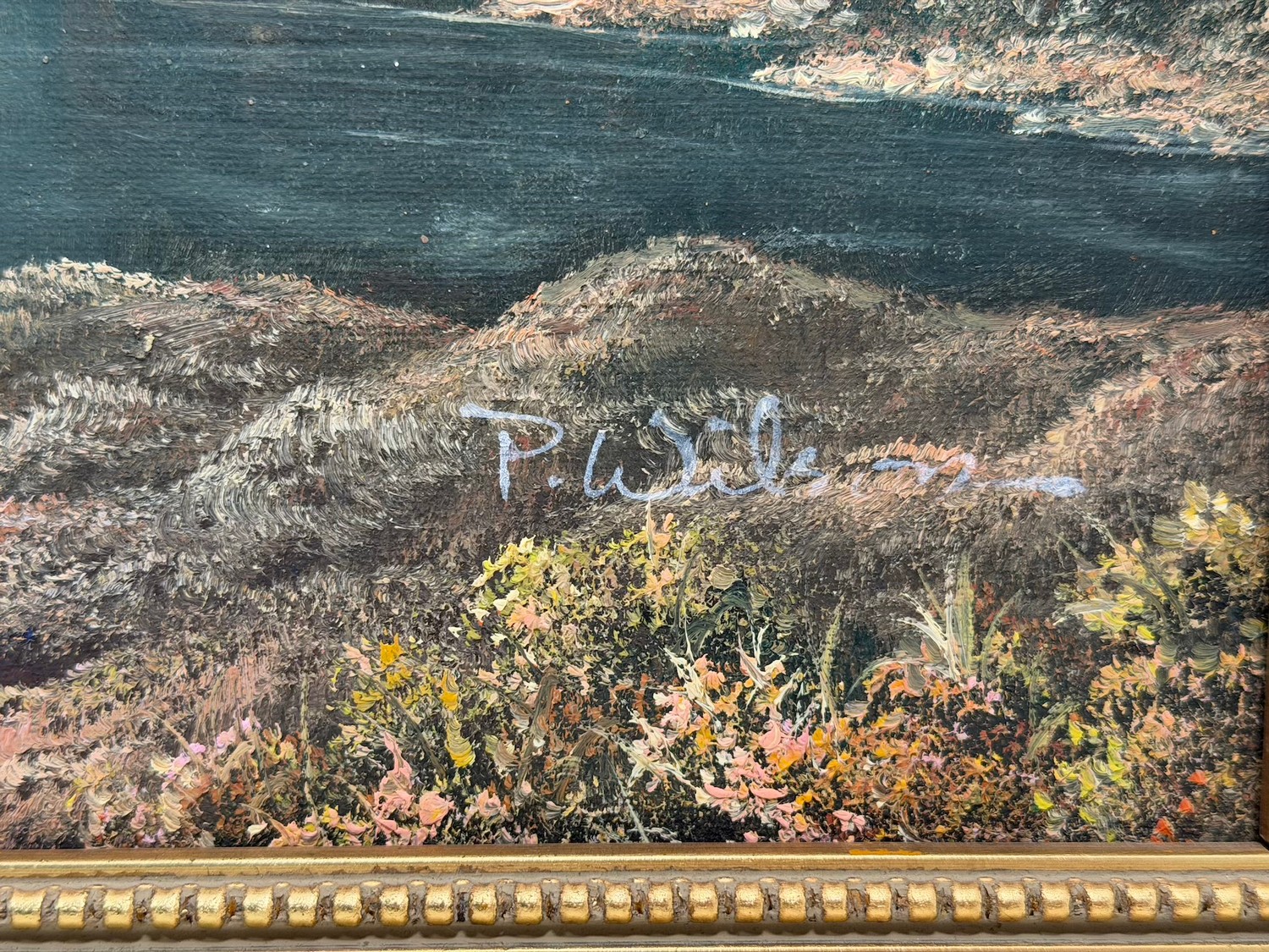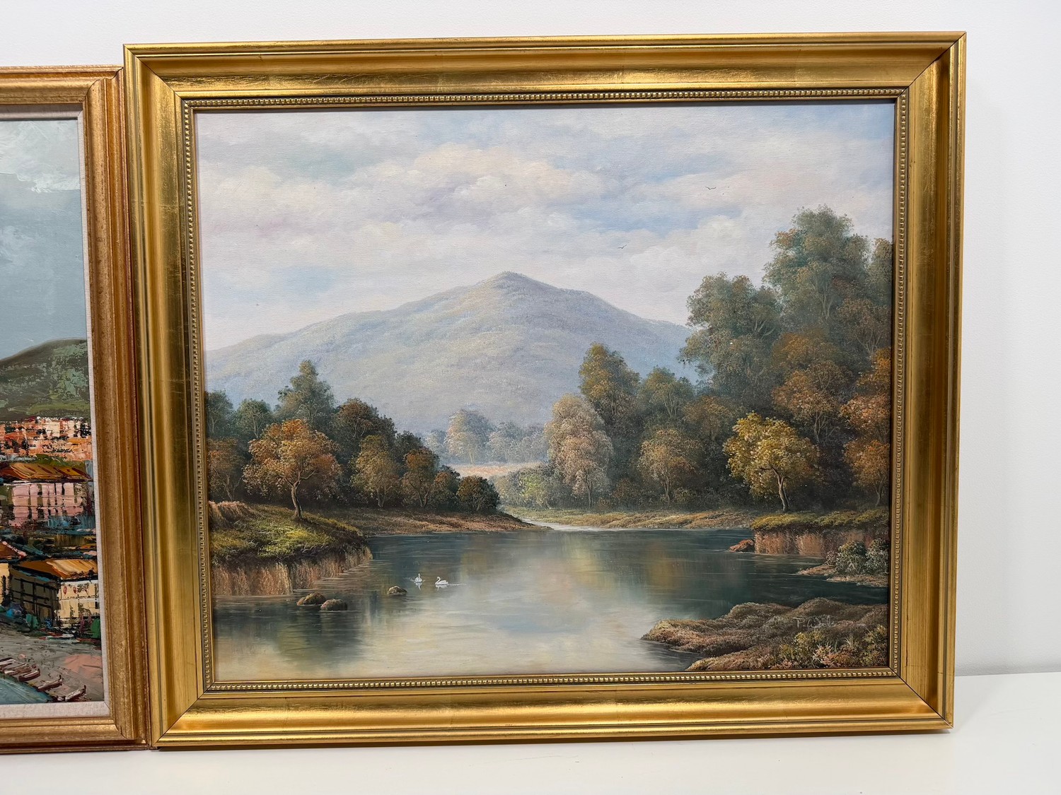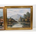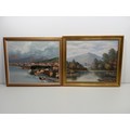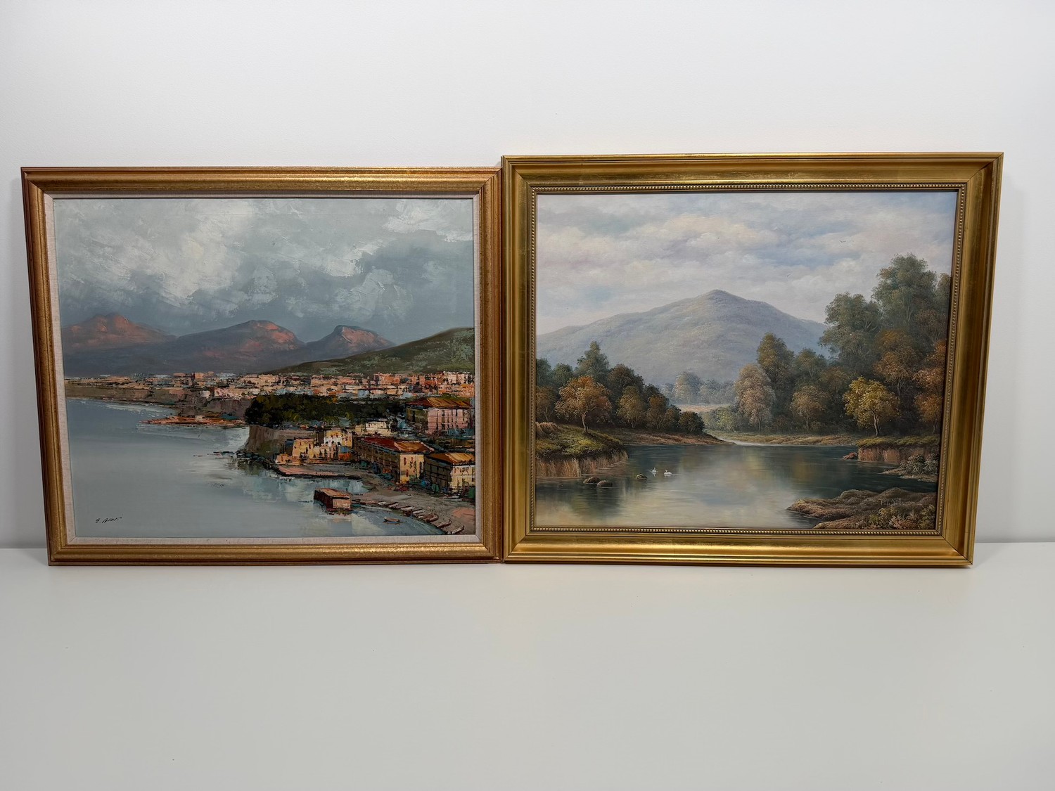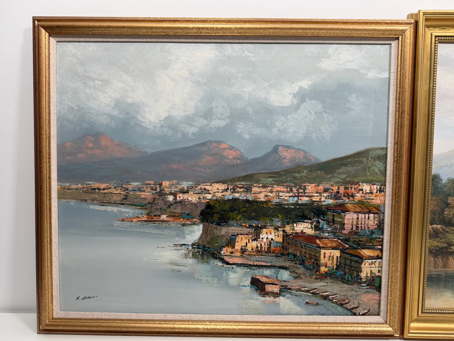 Original P.Wilson Rural Lake Oil on Canvas (Framed 23.5" x 27.5") signed bottom right by artist + original oil on canvas by E Allevi of Pozzuoli Bay (Framed 27.5" x 23") signed bottom left by artist and label on verso