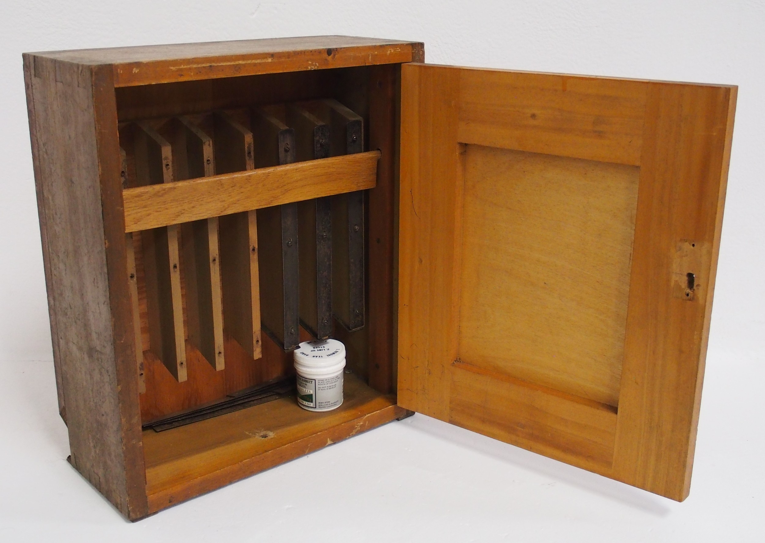 Small hardwood ticket cabinet, 13½"x 15½"x 5½", interior incomplete. (D1) (Dispatch by Mailboxes/Collect from Banbury Depot)