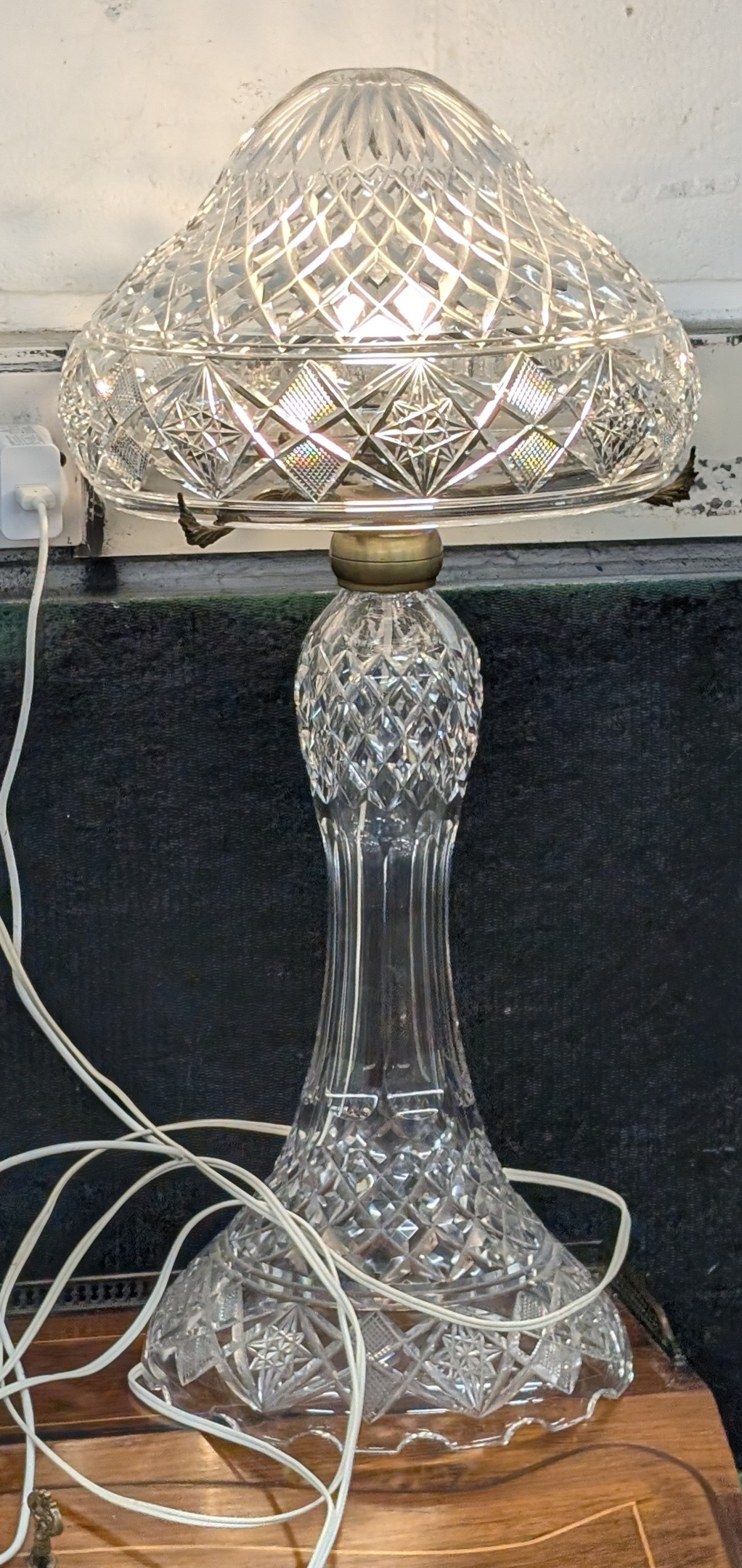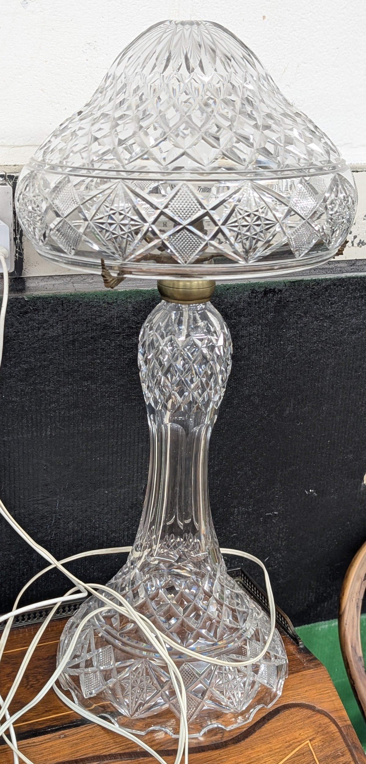 Approx. 24" Large Crystal Two-Piece Electric Hurricane Table Lamp, Similar To Waterford