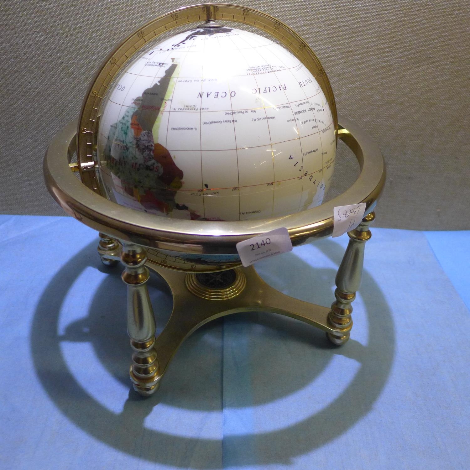 Small gemstone globe on brass 4 leg stand