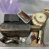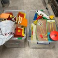 A collection of toys, including Fisher-Price Family Farm and others.